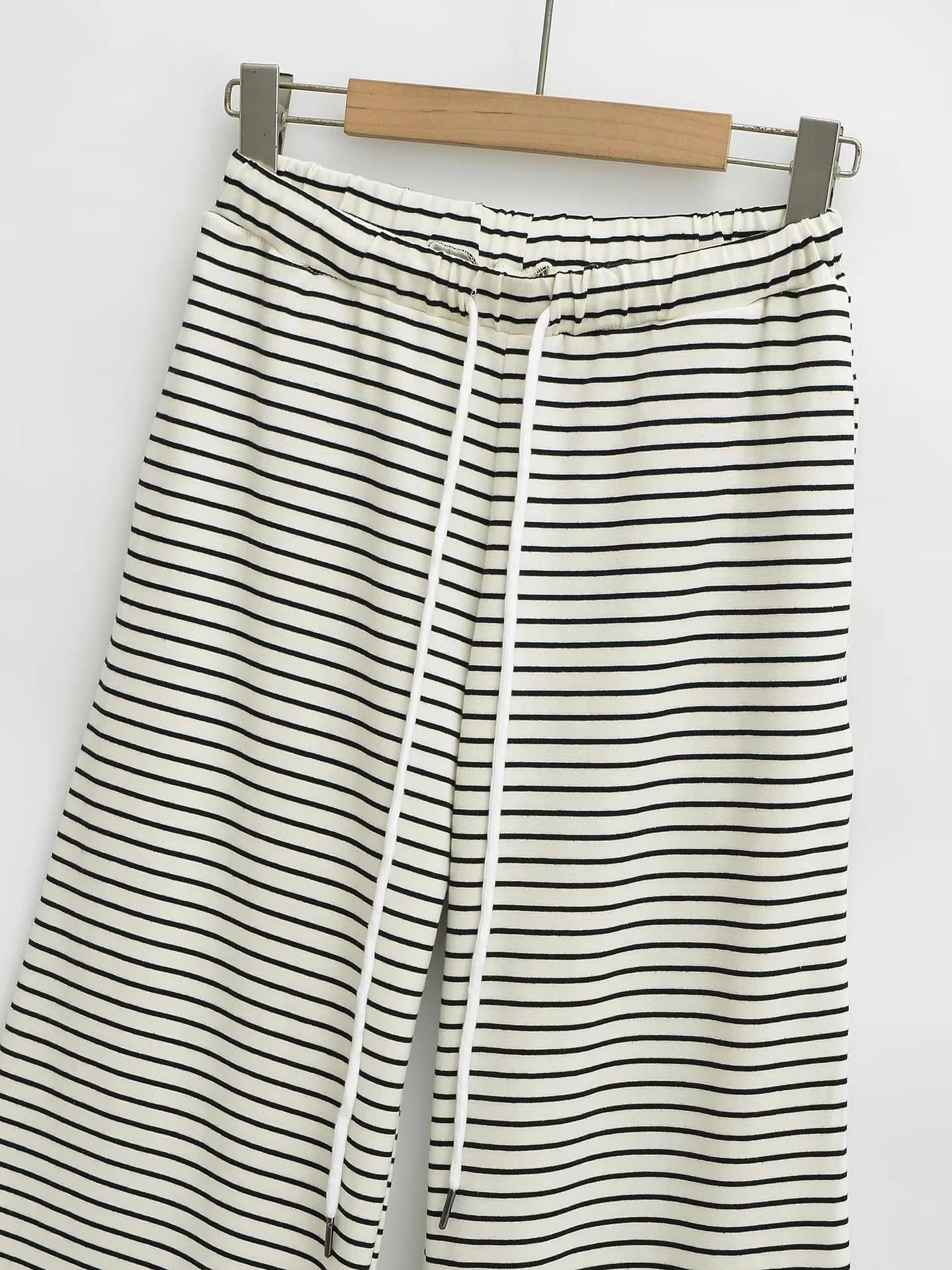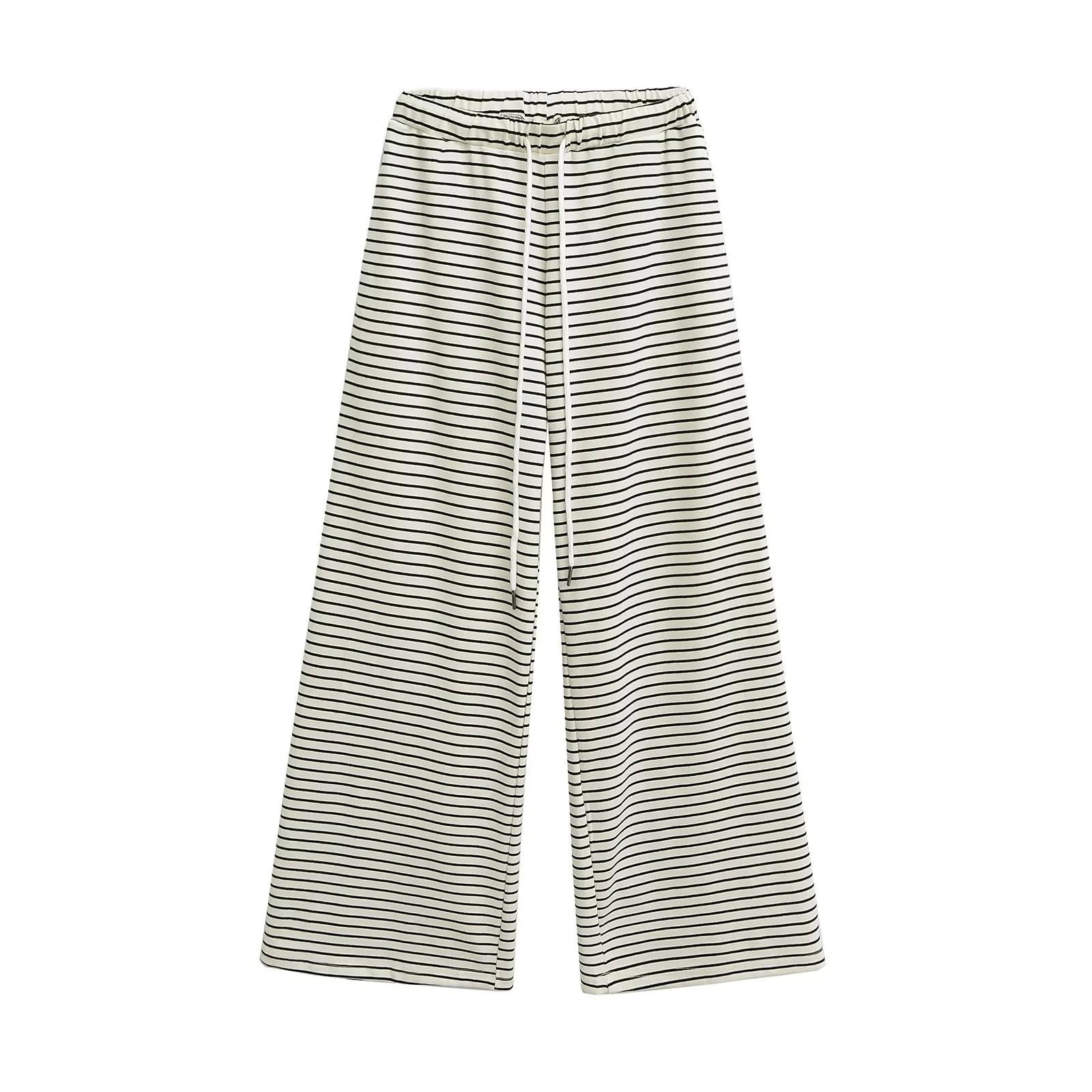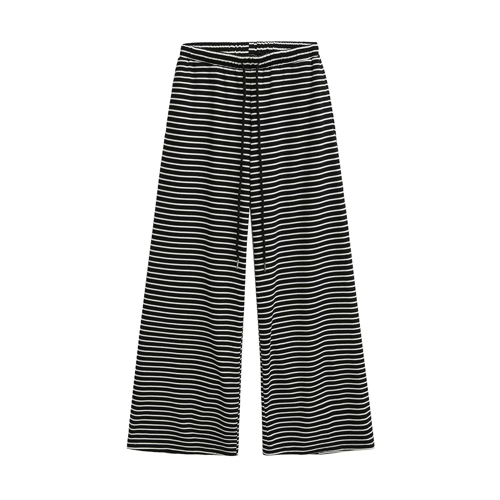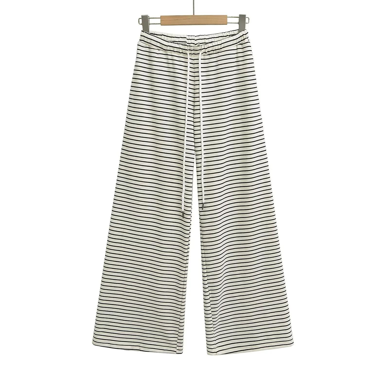Pantalones a Rayas Estilo Americano 2025 Verano Ligeros y de Corte Holgado con Cordones Sueltos Versátiles Casuales de Pierna Ancha Largos