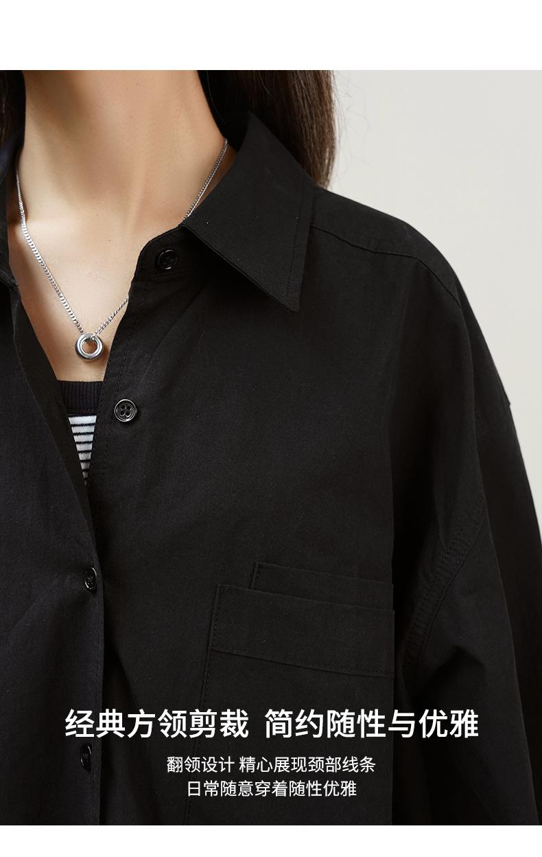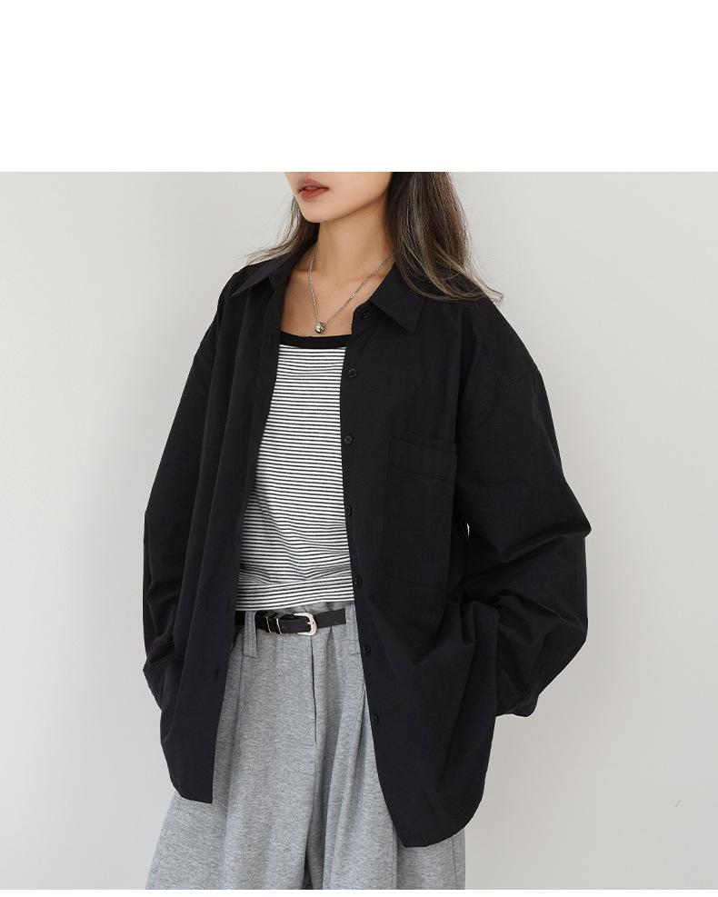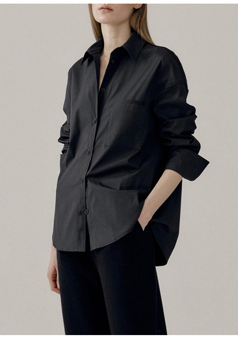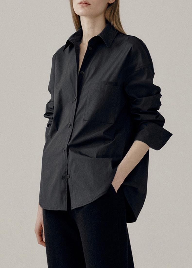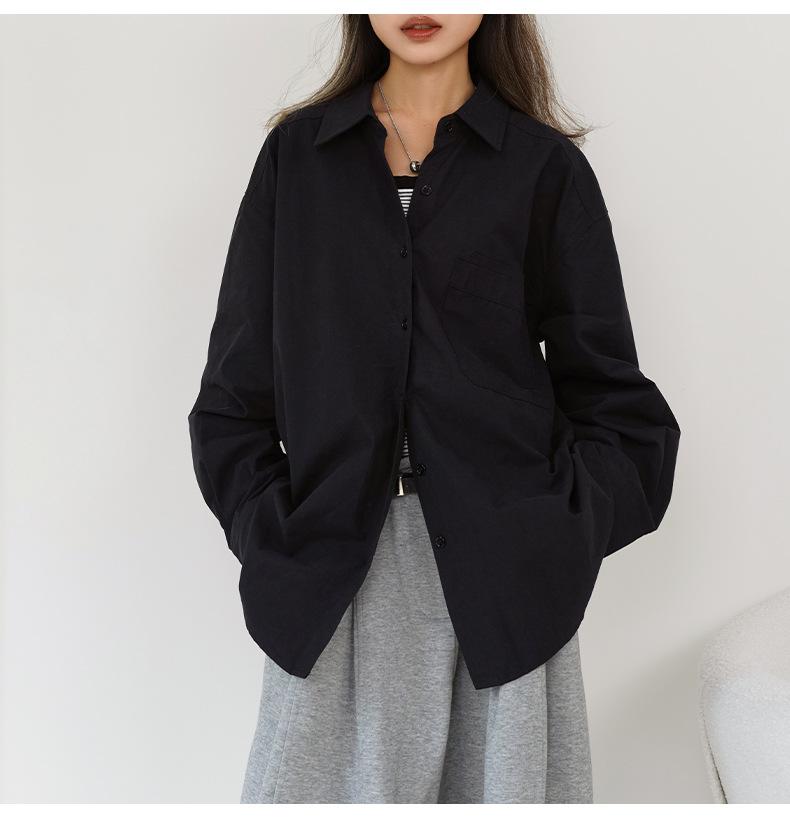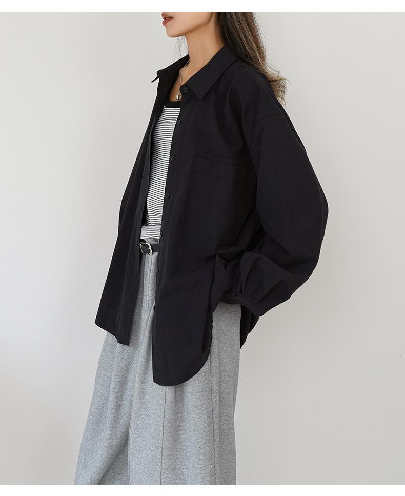 Camisa Básica de Algodón Puro con Doble Bolsillo para Mujer, Nueva Versátil de Color Sólido con Cuello Vuelto para Otoño, Cárdigan de Manga Larga con Botonadura Sencilla