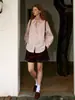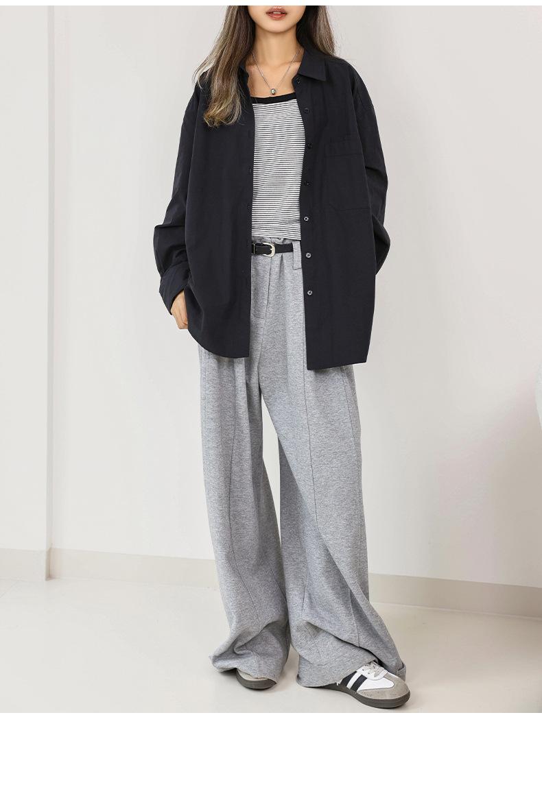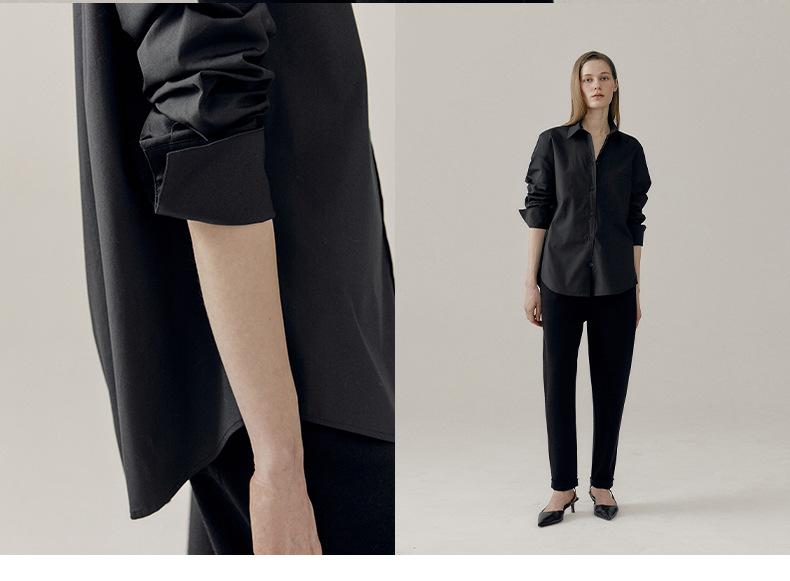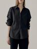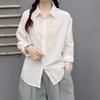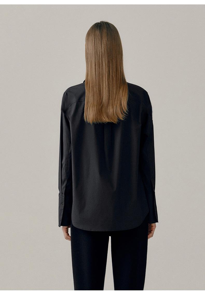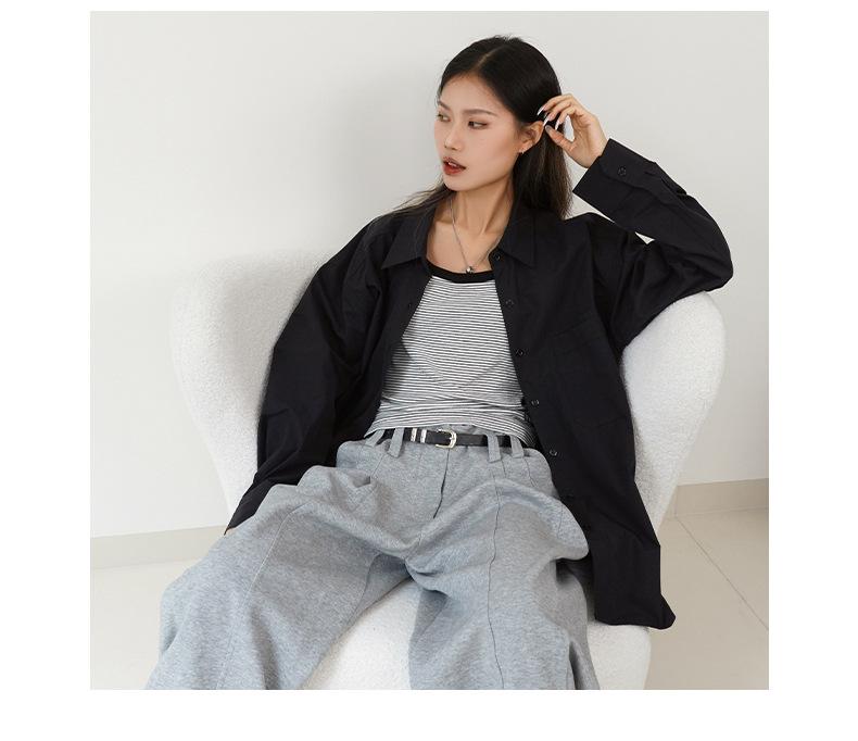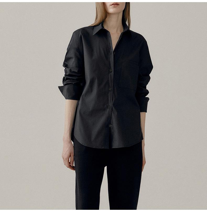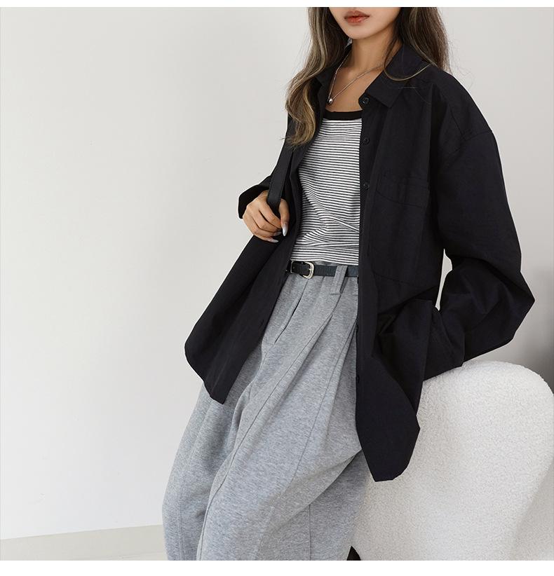 Camisa Básica de Algodón Puro con Doble Bolsillo para Mujer, Nueva Versátil de Color Sólido con Cuello Vuelto para Otoño, Cárdigan de Manga Larga con Botonadura Sencilla