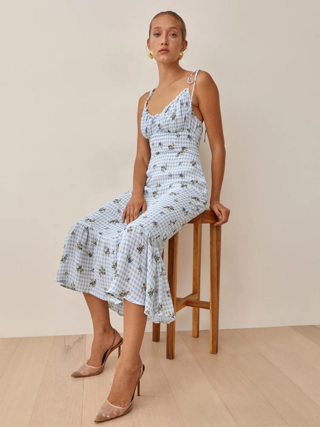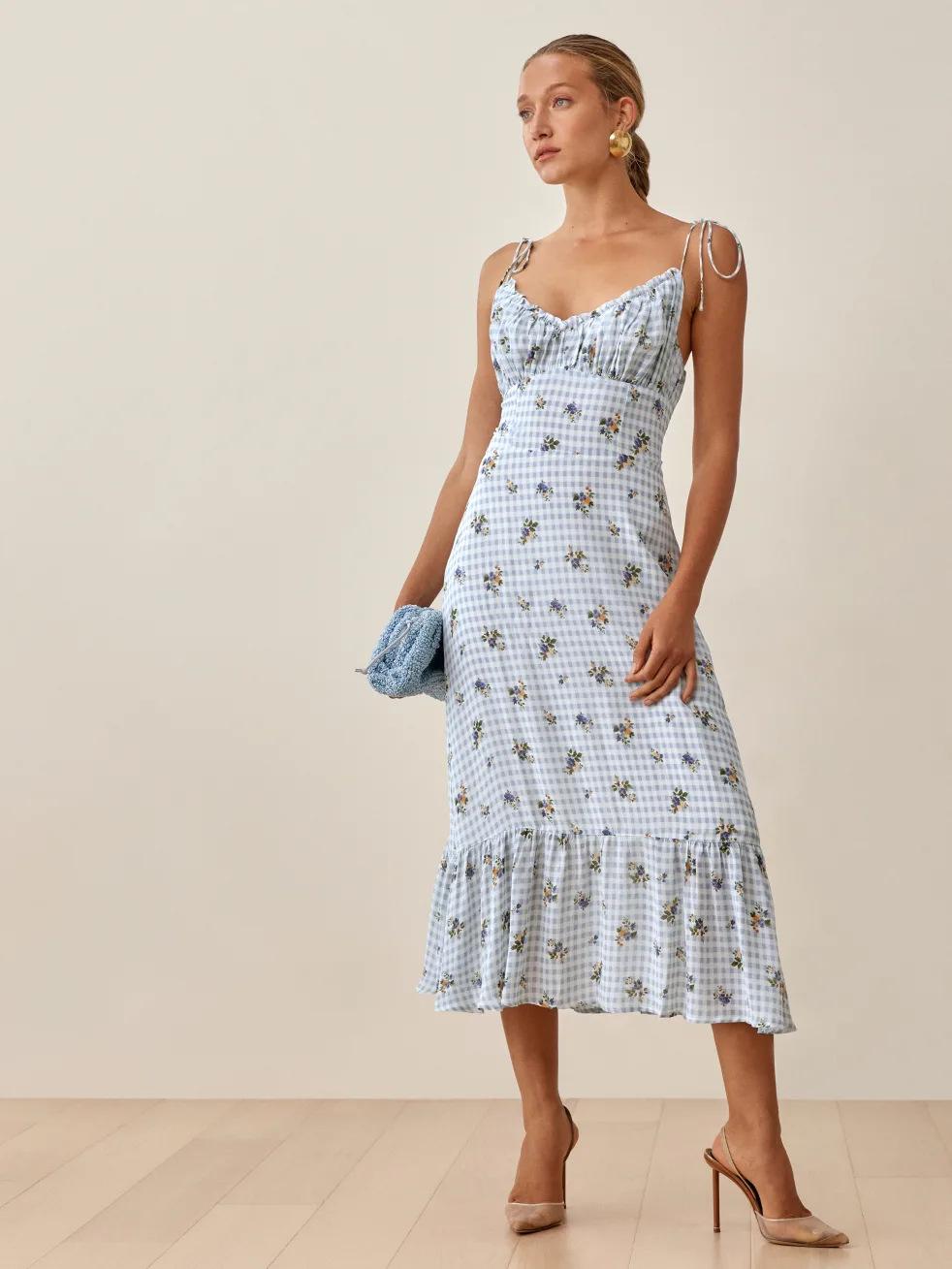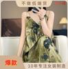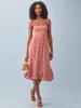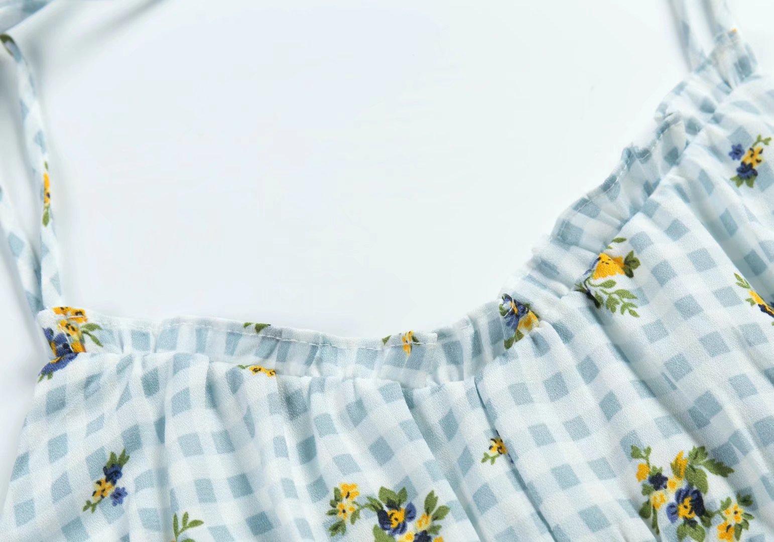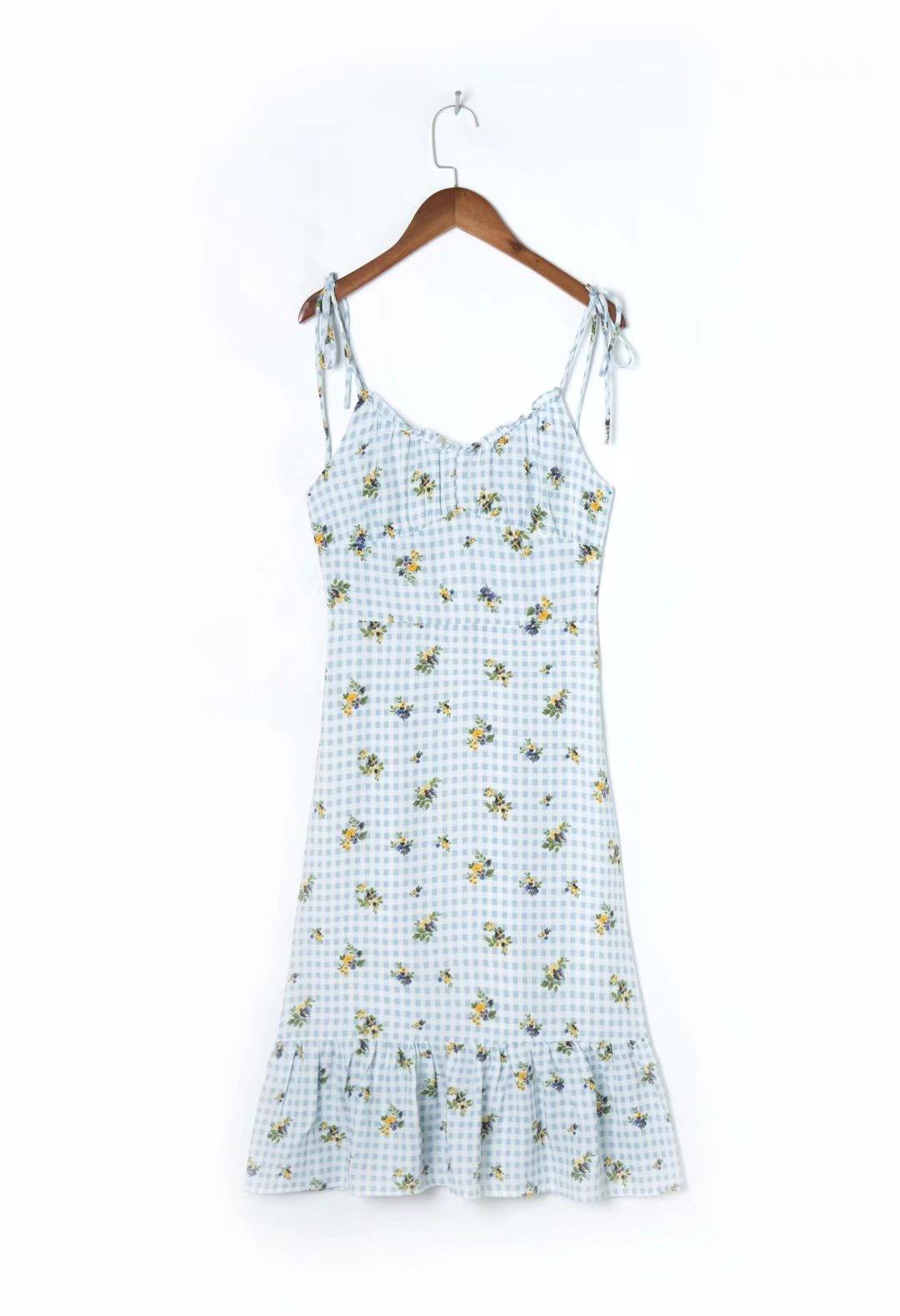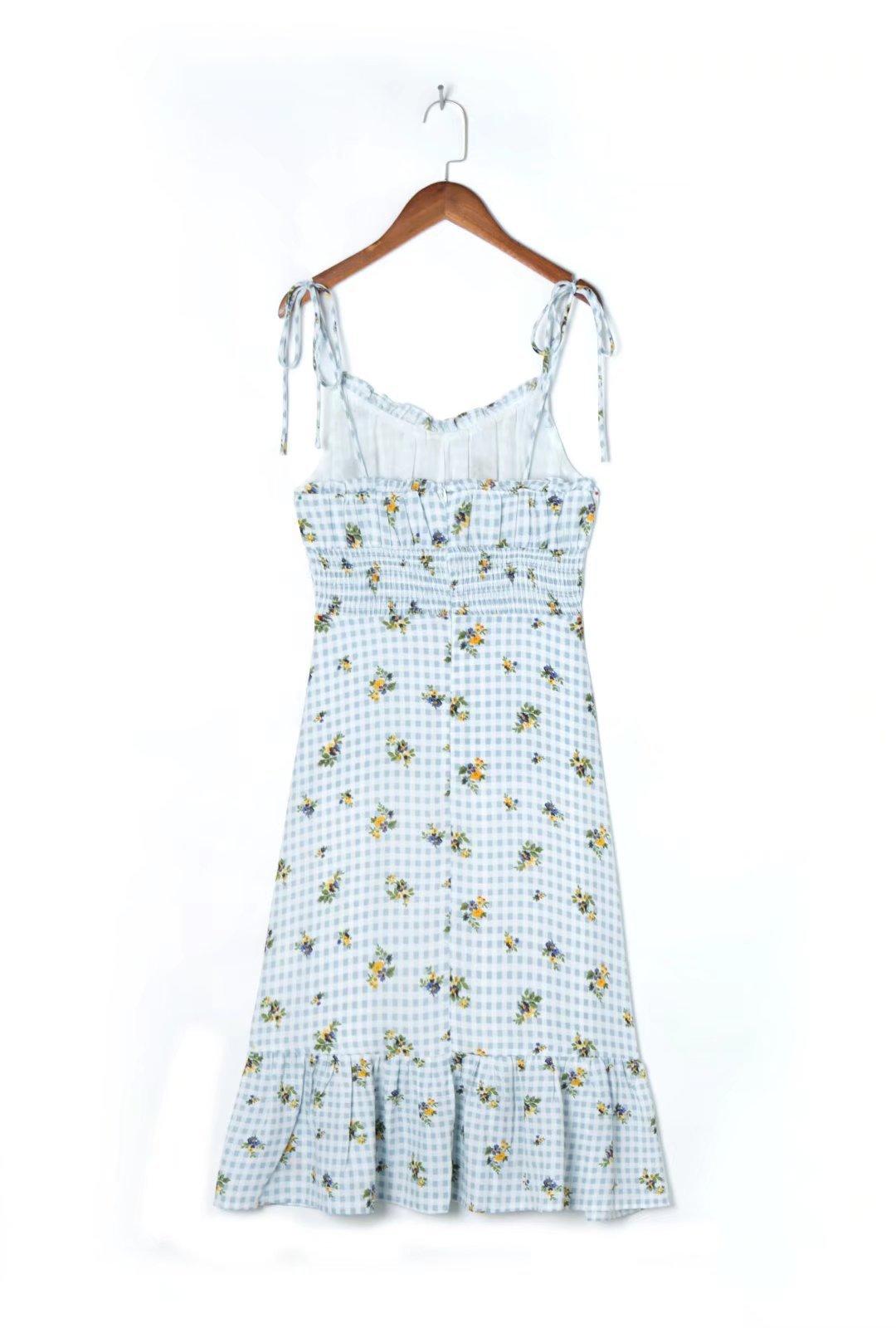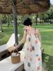 Vestido Elegante de Viaje Estampado de Flores Europeo y Americano Tirantes Cintura Alta Estampado Dobladillo con Volantes Tirantes Largo Medio