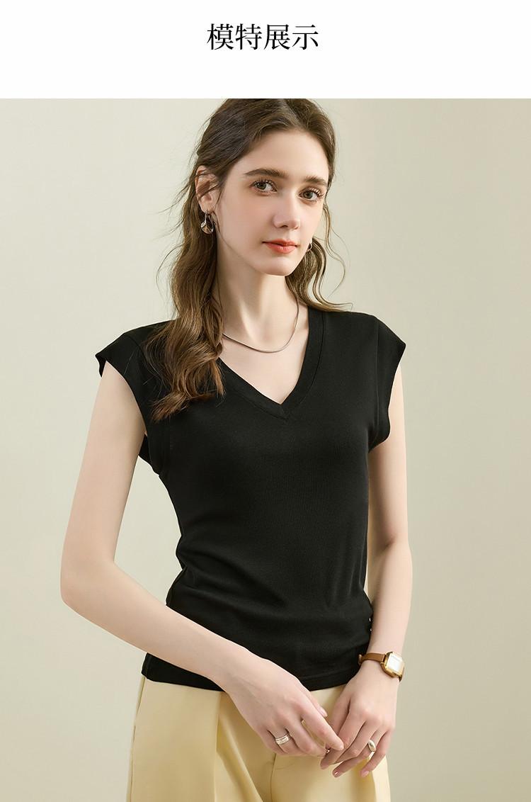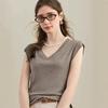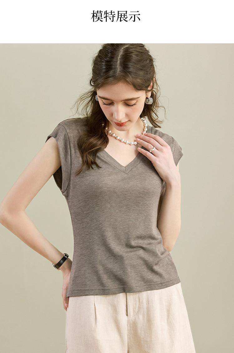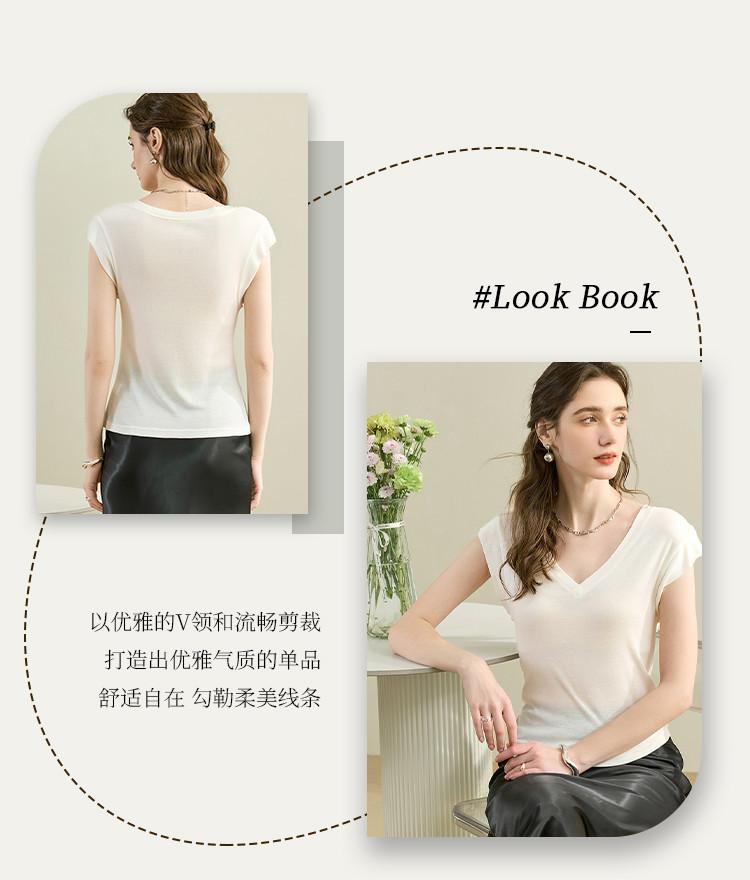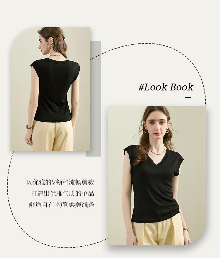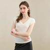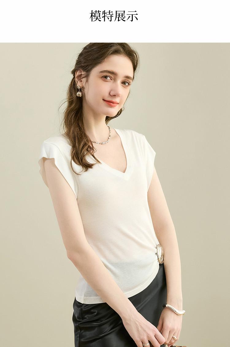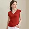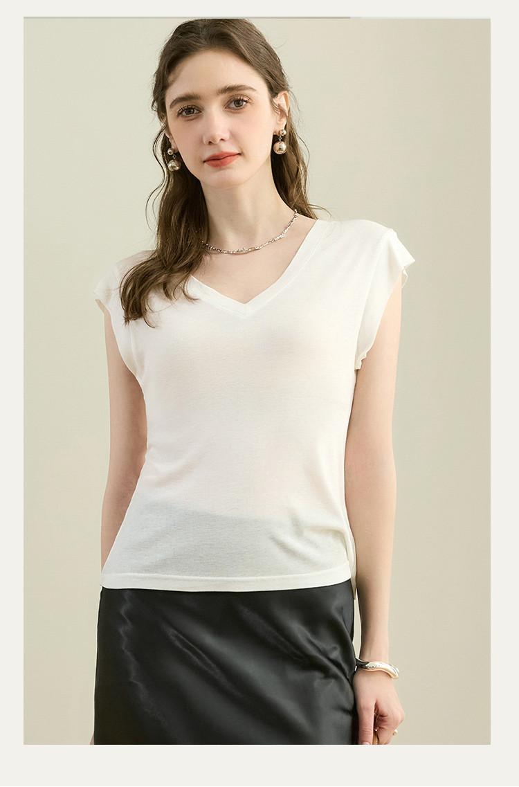 [Incluyendo seda de morera] seda primavera y verano nuevo ocio viajero cuello en V hombro transpirable manga corta mariposa suéter de mujer