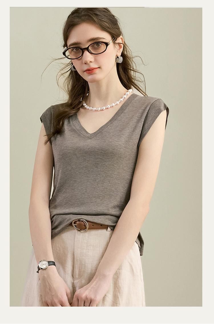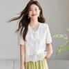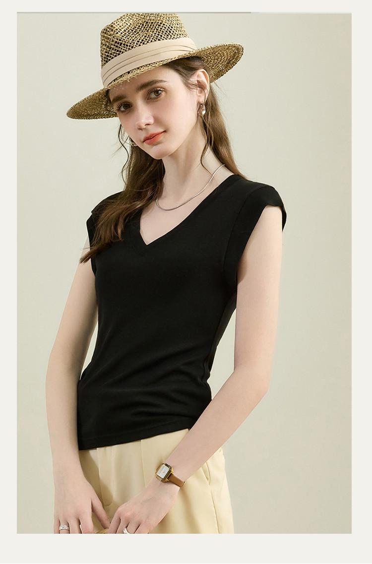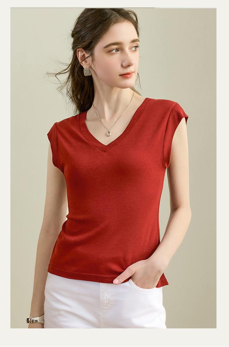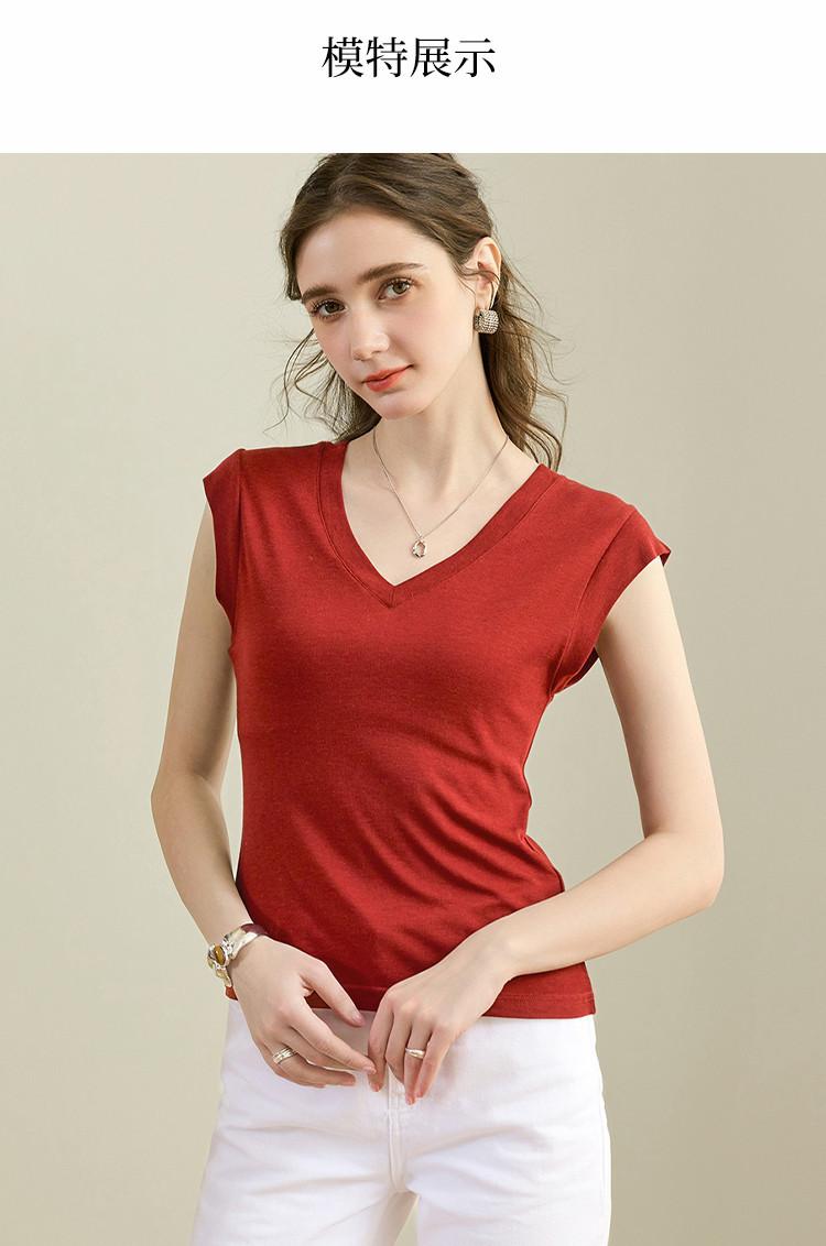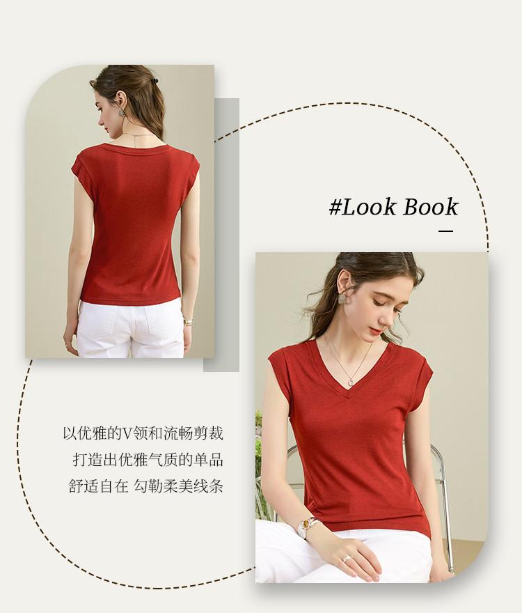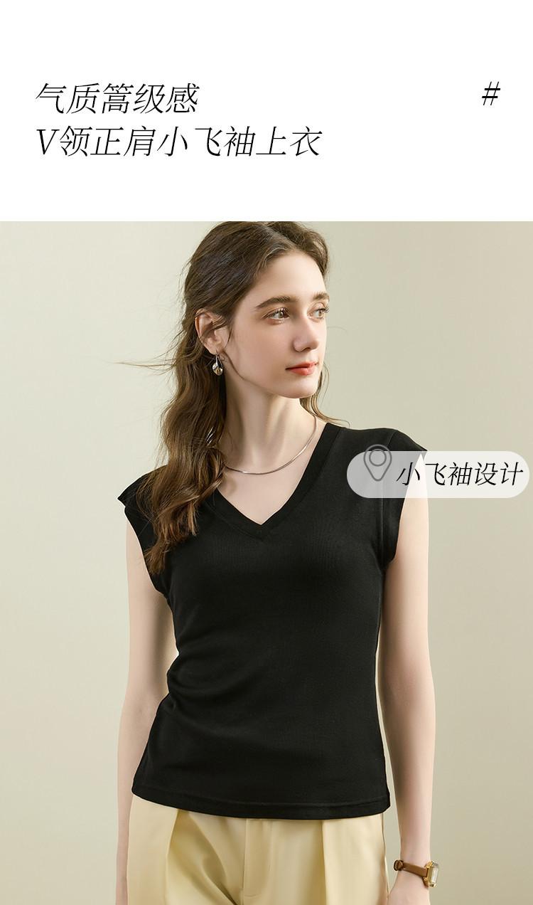 [Incluyendo seda de morera] seda primavera y verano nuevo ocio viajero cuello en V hombro transpirable manga corta mariposa suéter de mujer