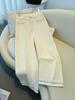 Jeans blancos de machete de pierna ancha para mujer 2025 nuevos talla grande chica gordita cintura alta adelgazantes sueltos rectos pantalones de hoz