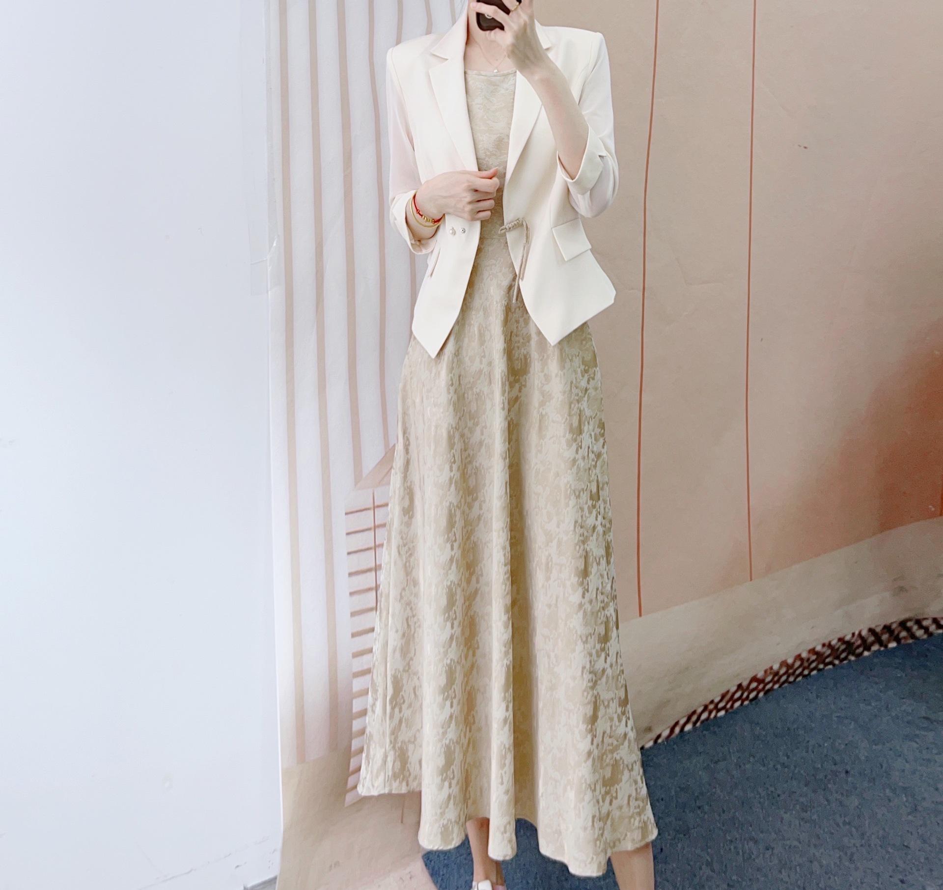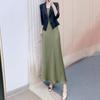 Moda Primavera 2025 Chaqueta de Traje Coreano Vestido Chaleco Jacquard Satén Falda de Dos Piezas 133