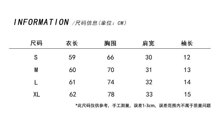 | | Camiseta de manga corta con cuello en U, corte entallado y hombros rectos para mujer, diseño de botones de verano, estilo corto, talla pequeña, de algodón puro con hilo. | | RMB17.80 | | | | | Camiseta de algodón de manga corta de verano 2025 para mujer, estilo coreano, holgada, de media manga y cuello redondo, 23036# | | RMB16.80 | | | | | Camiseta de manga corta estilo retro chic americano de algodón puro para mujer en verano, estilo coreano, holgada, de marca de moda, de media manga, con estampado 3D | | RMB21.80 | |