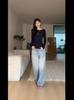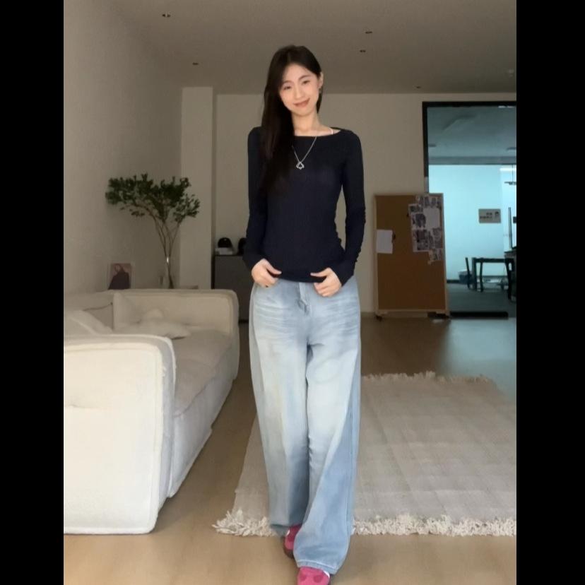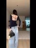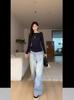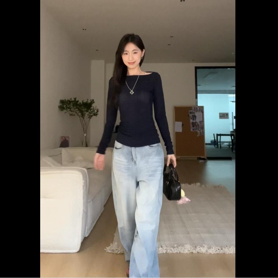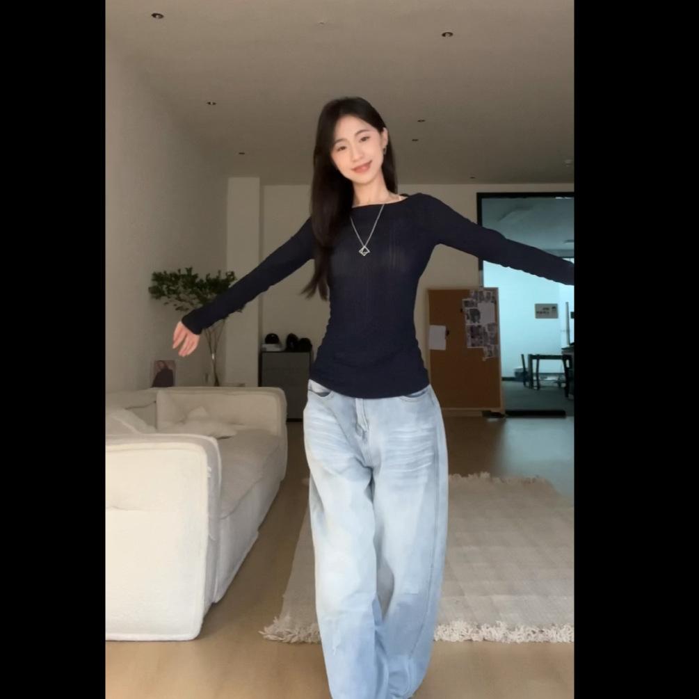 Perezoso Retro Nicho Sexy Espalda Descubierta Color Puro Slim Top Camiseta Manga Larga Verano Ligero Casual Tirantes