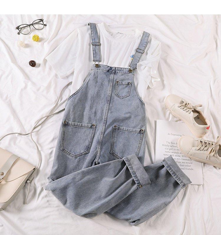 Overoles de mezclilla que reducen la edad para mujer estilo coreano holgados de estudiante primavera pantalones harén pantalones que estilizan overoles 2025 nuevo estilo