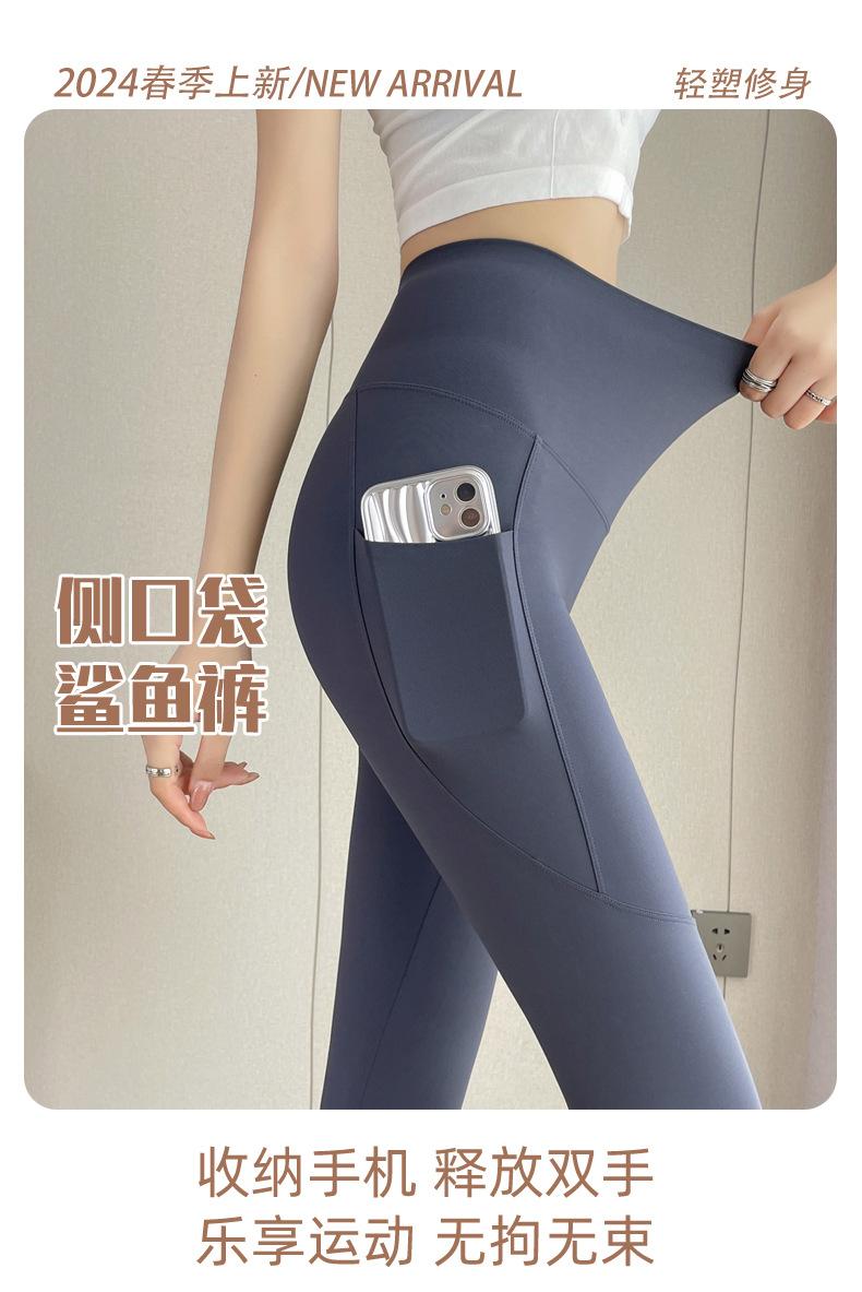 Pantalones Shark para Mujer Ropa Exterior Línea Sin Vergüenza Ciclismo al Aire Libre Bolsillo Lateral Pantalones Delgados Recortados Moldeadores Adelgazantes Pantalones de Yoga