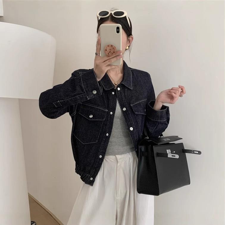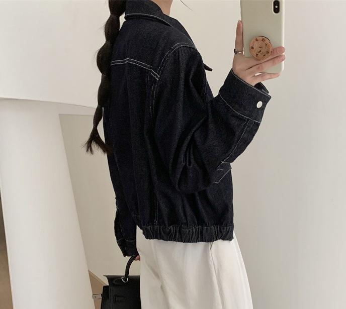 Chaqueta de mezclilla retro europea y americana con cuello polo y botonadura sencilla, primavera nueva moda, versátil, holgada, casual, top
