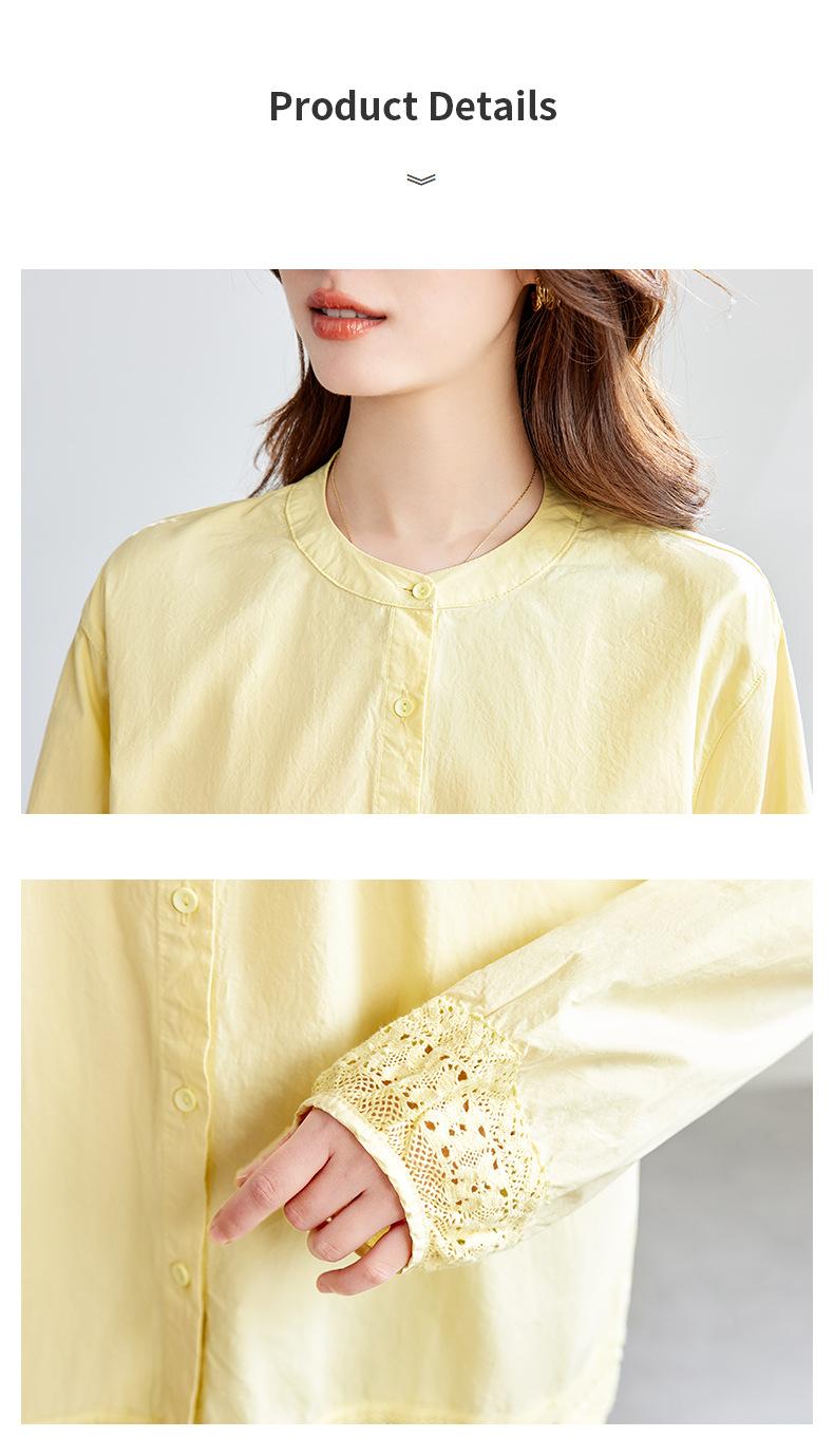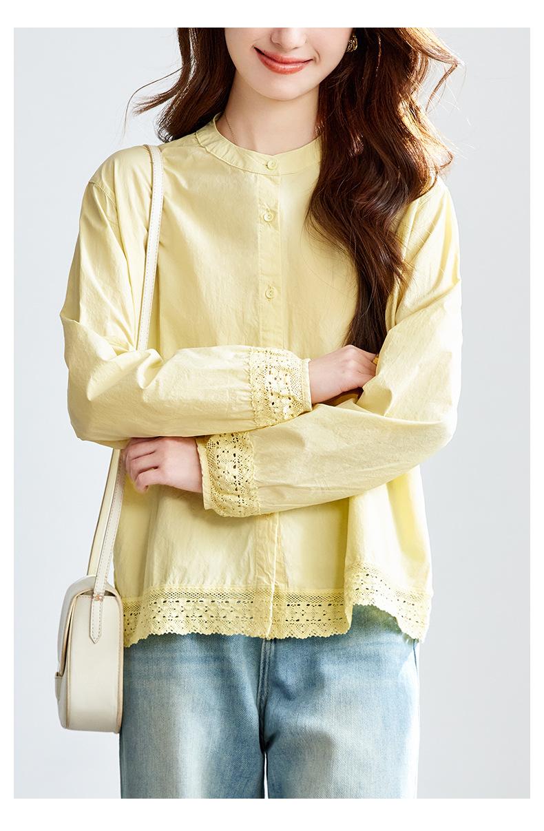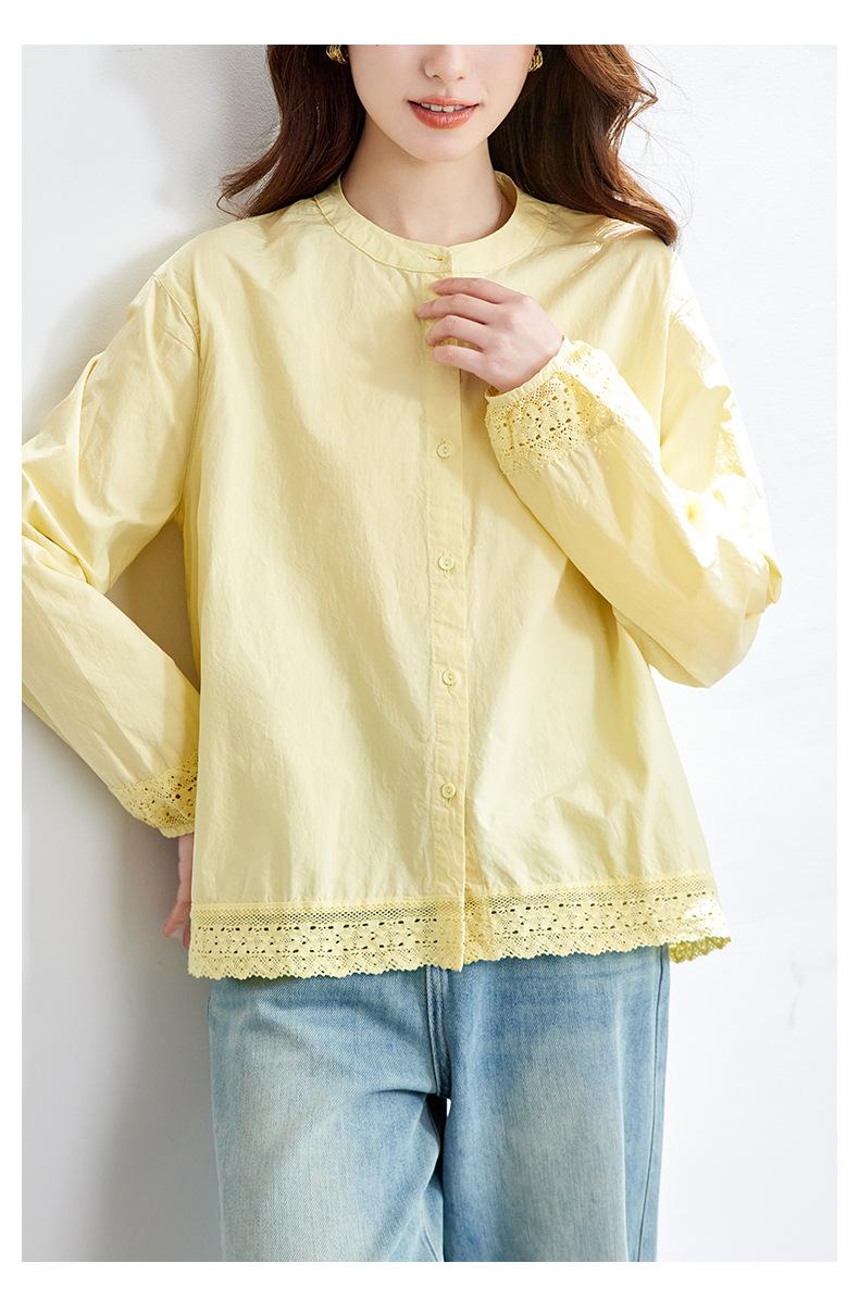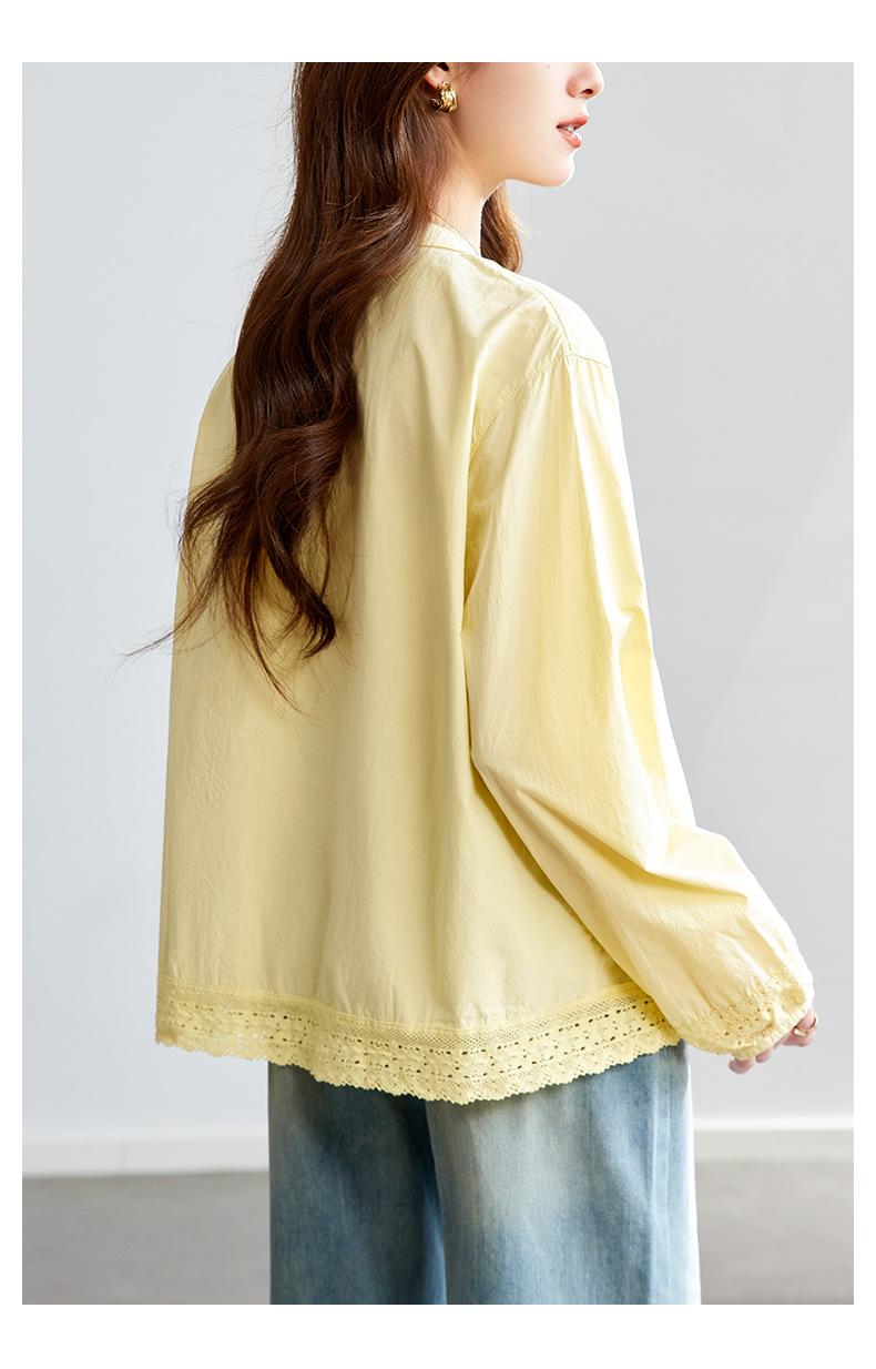 [Personalizada] Camisa Amarilla Ganso Mujer Manga Larga 2025 Verano Nueva Encaje Suelta Slim Camisa Mujer
