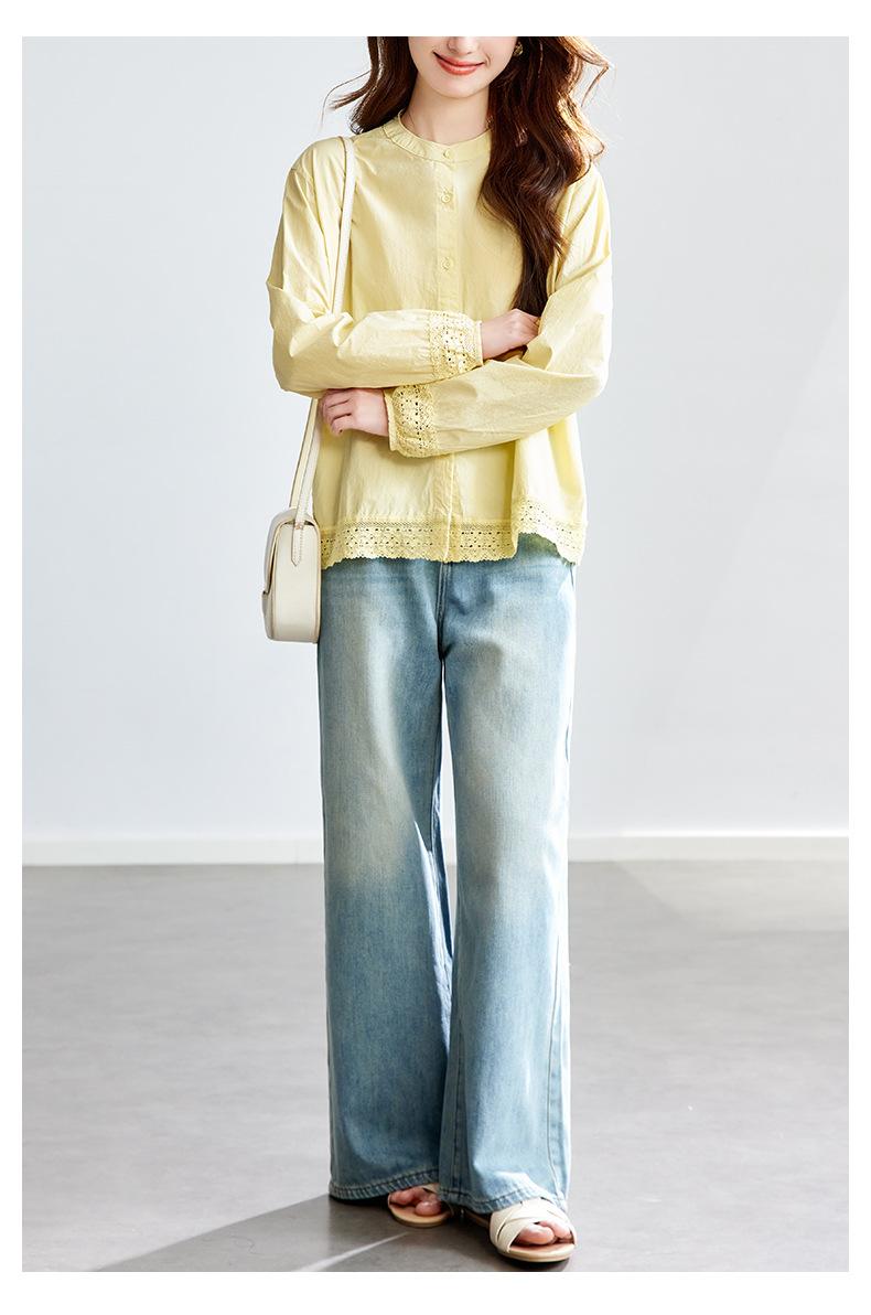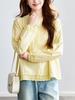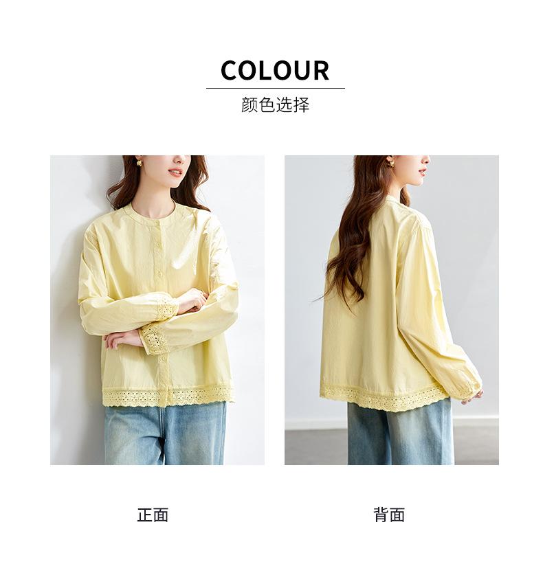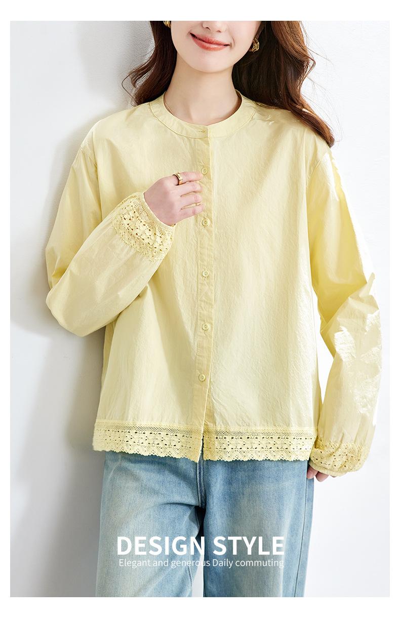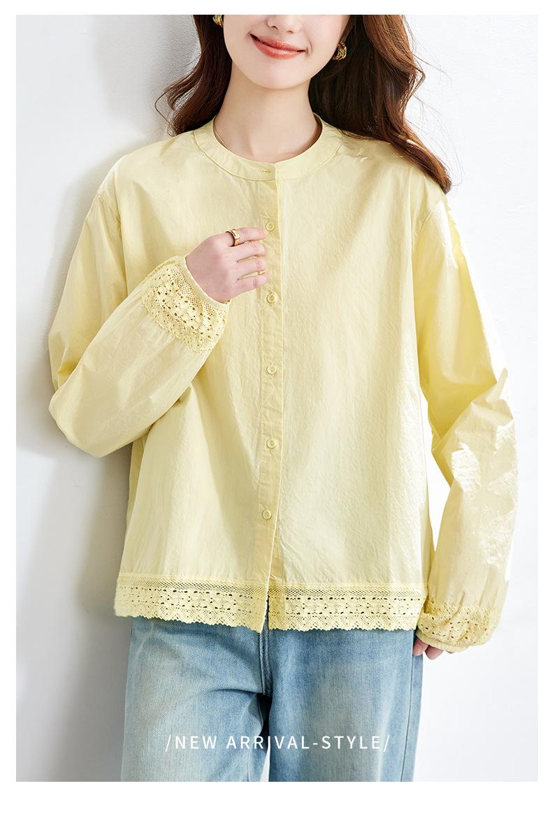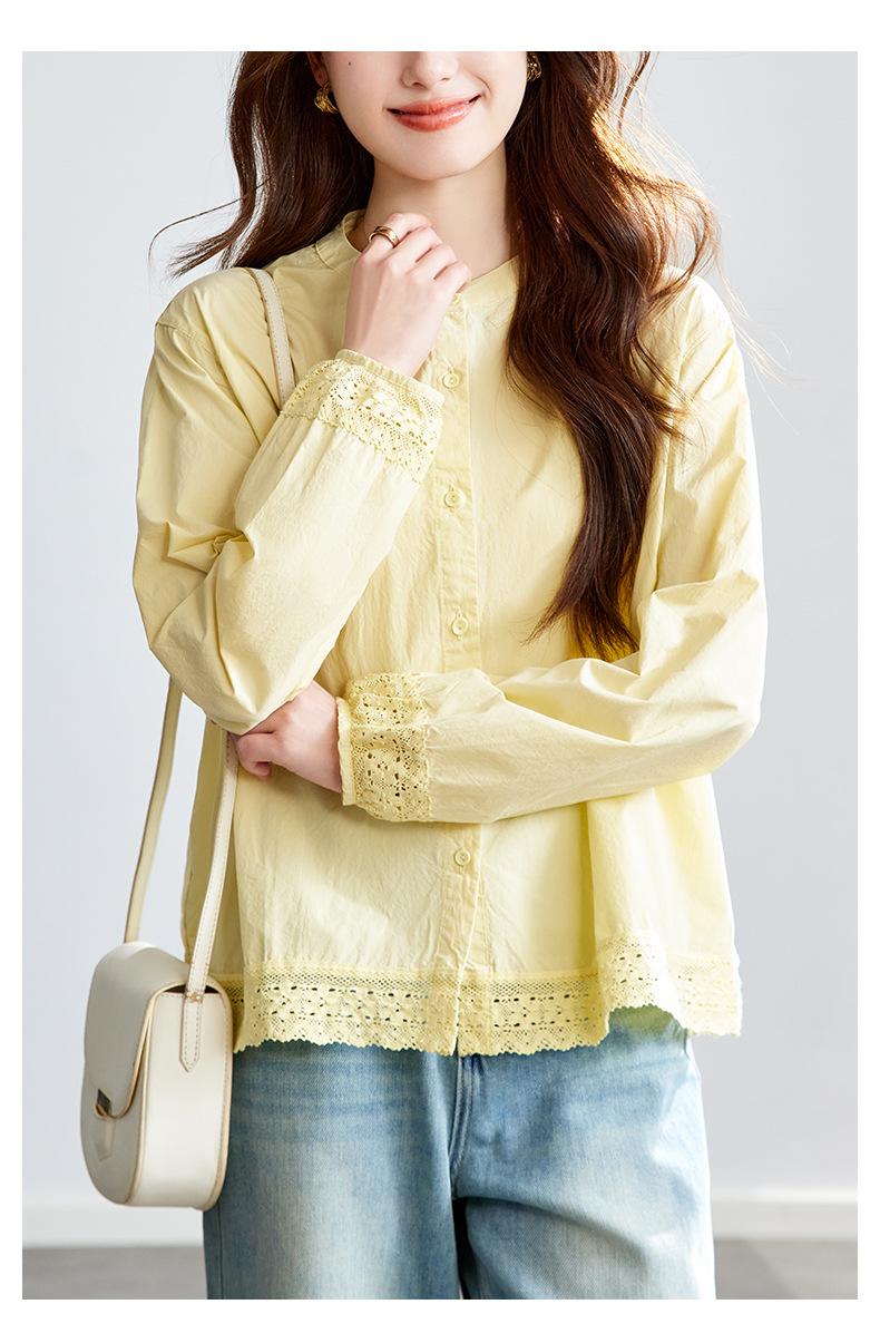 [Personalizada] Camisa Amarilla Ganso Mujer Manga Larga 2025 Verano Nueva Encaje Suelta Slim Camisa Mujer