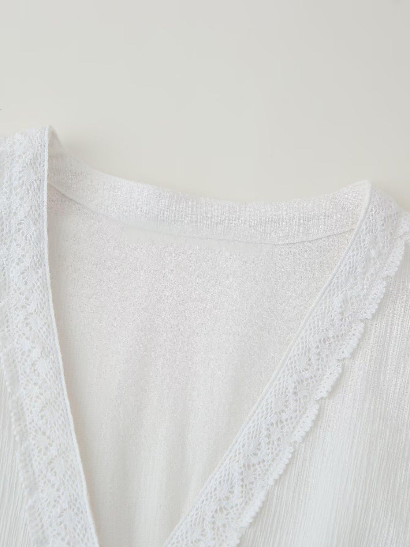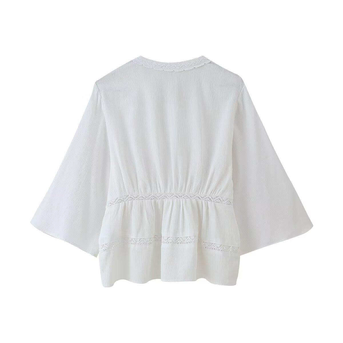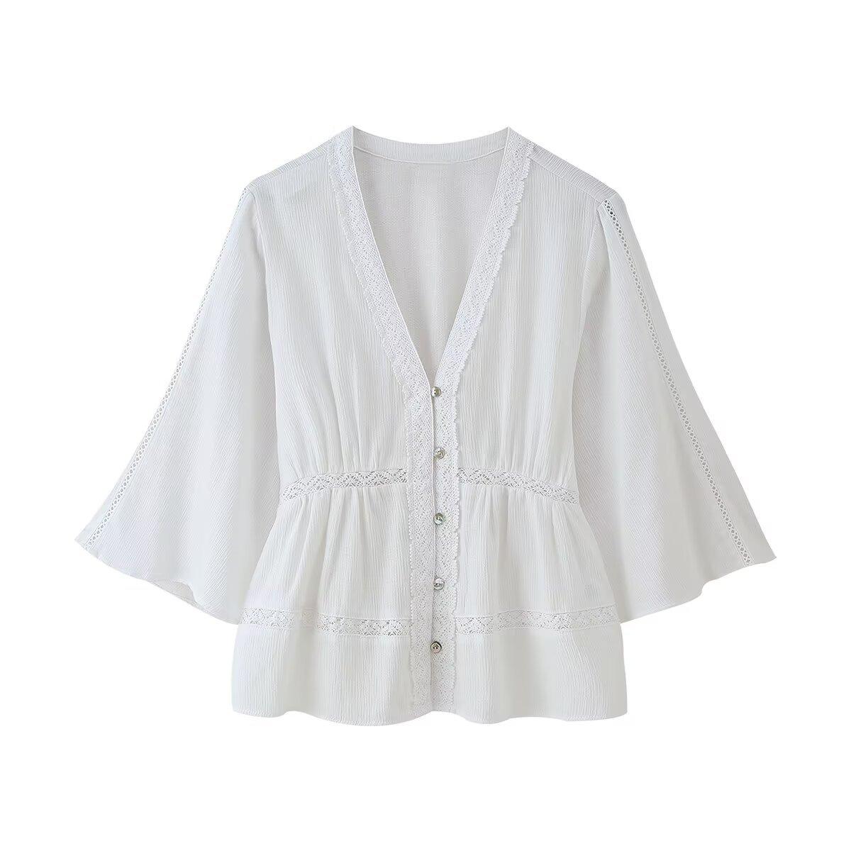 Ropa de Mujer de Exportación Europea y Americana 2025 Primavera Nuevo Estilo Moda Elegante Recorte Costuras Cuello en V Camisa Tops de Mujer
