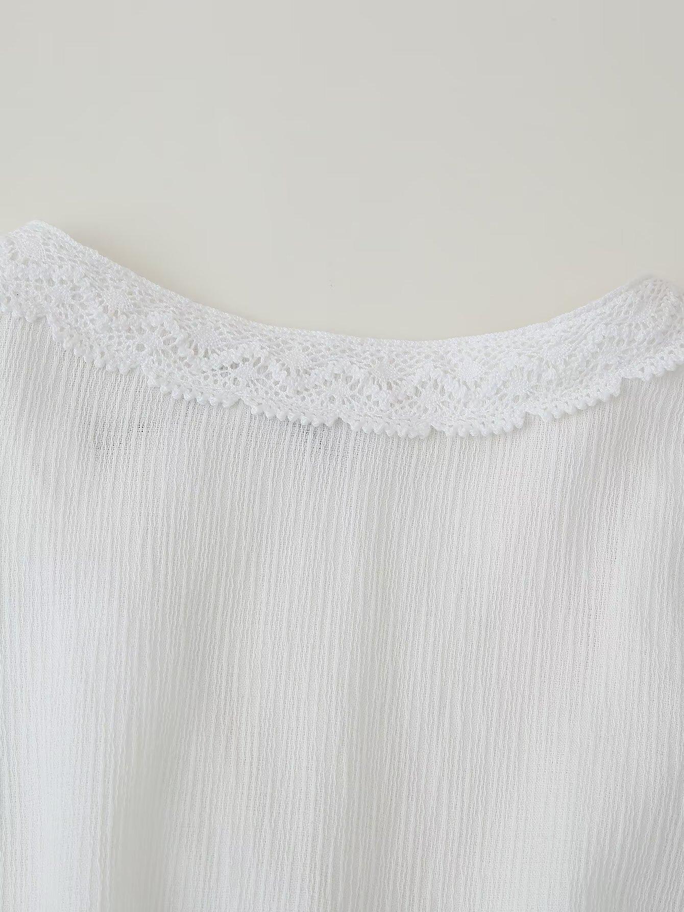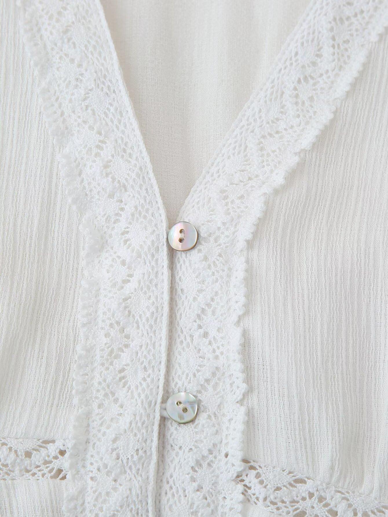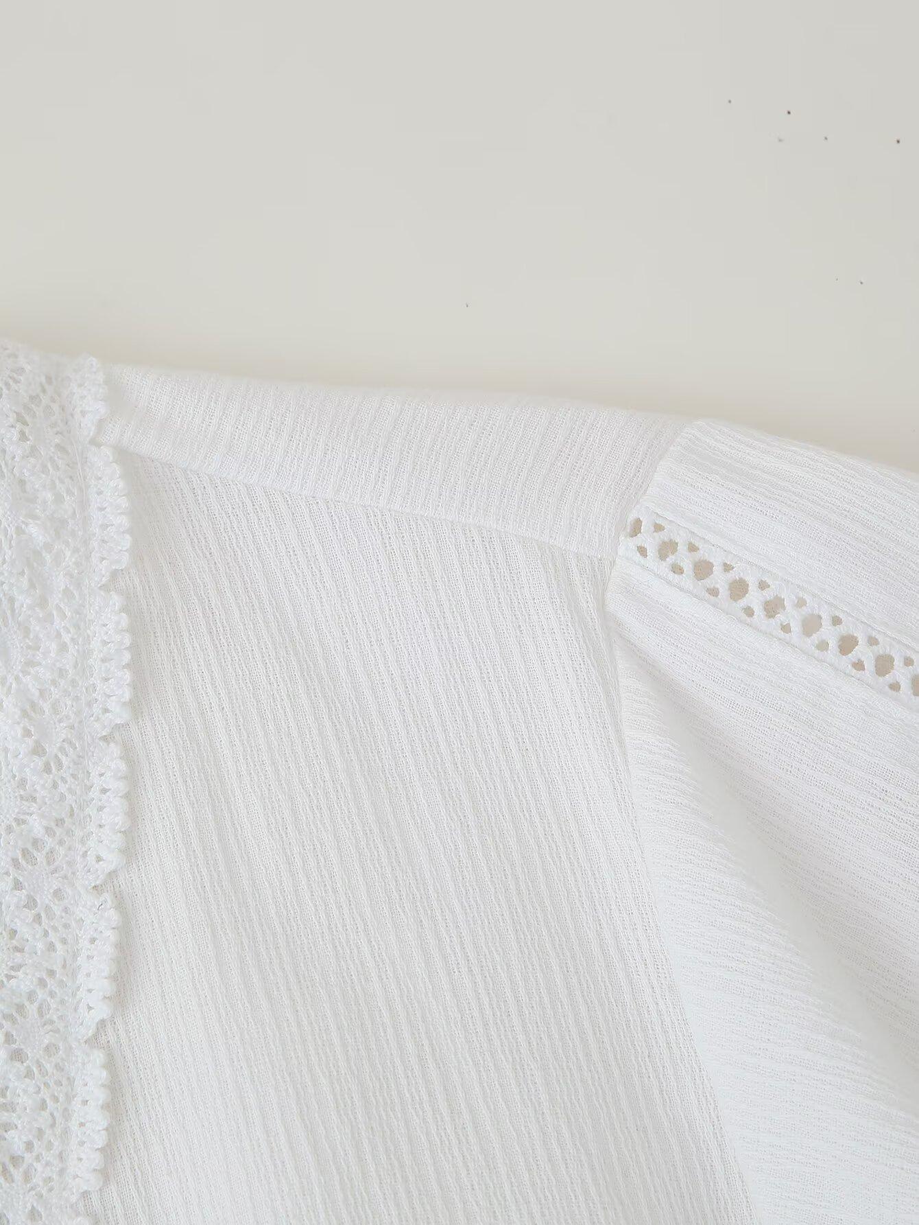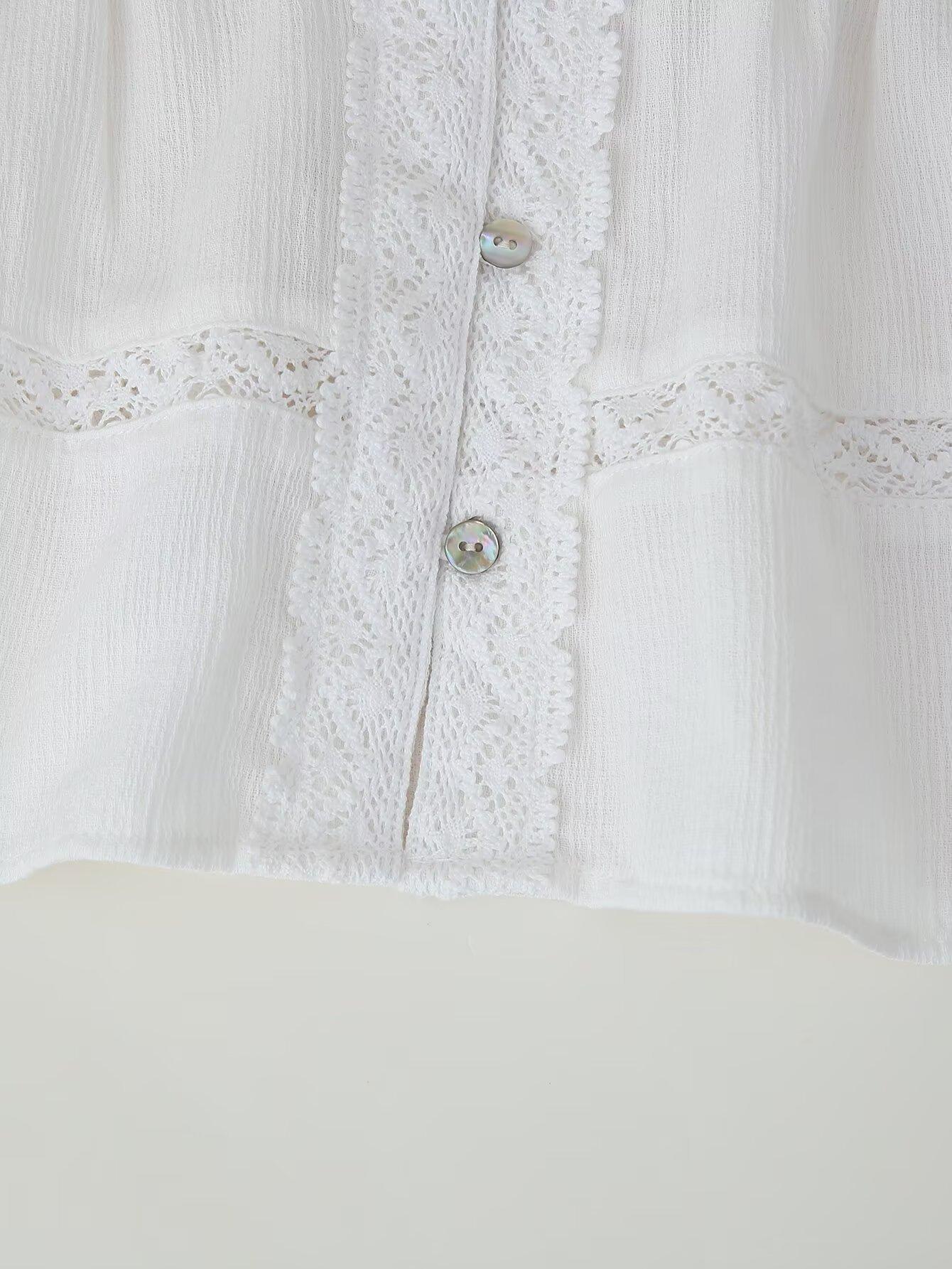 Ropa de Mujer de Exportación Europea y Americana 2025 Primavera Nuevo Estilo Moda Elegante Recorte Costuras Cuello en V Camisa Tops de Mujer