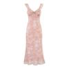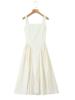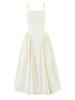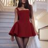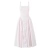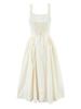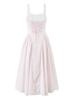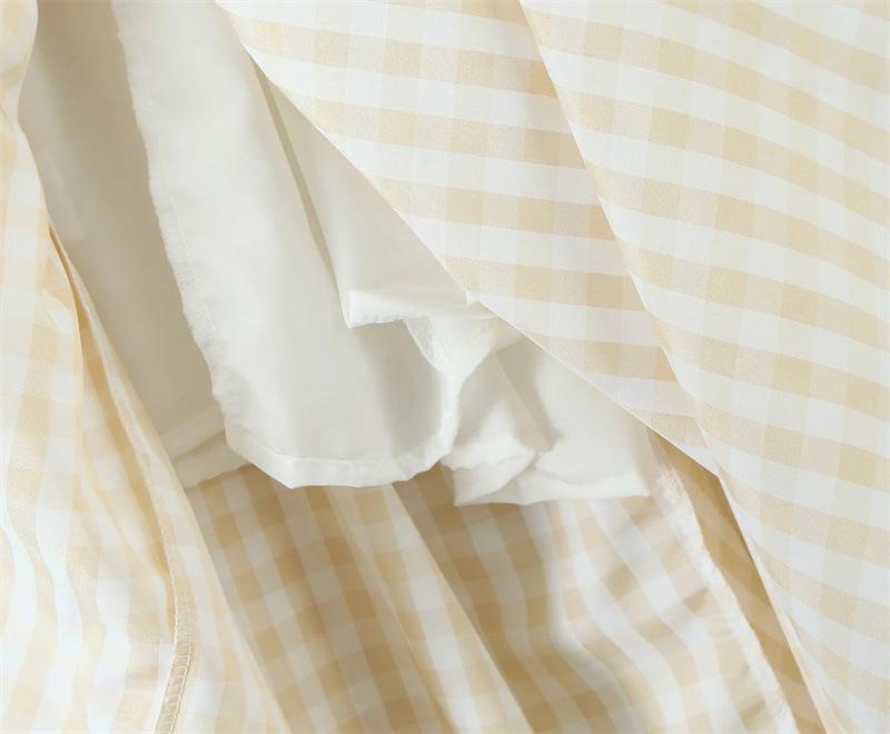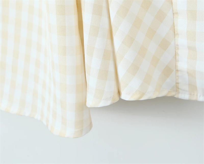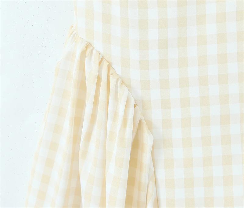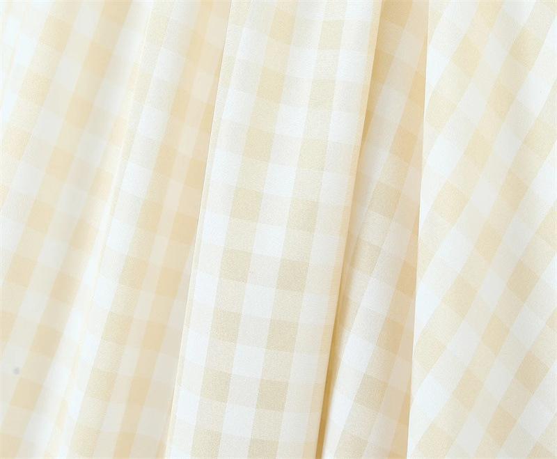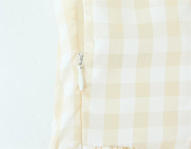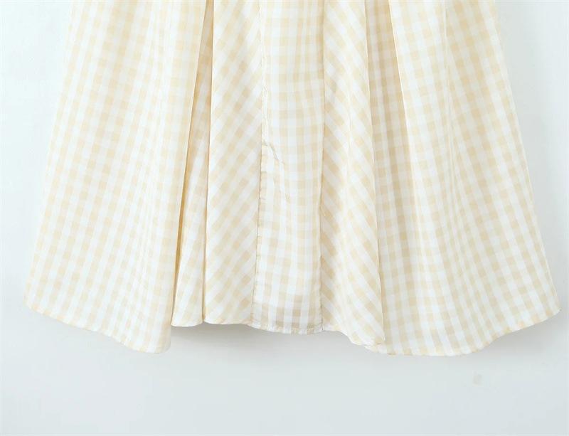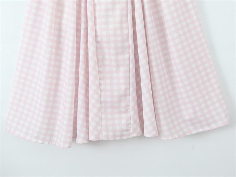 Vestido de Tirantes a Cuadros con Cuello Cuadrado Francés Diseño de Espalda con Tiras Cruzadas Ajustado a la Cintura con Pliegues Vestido Largo