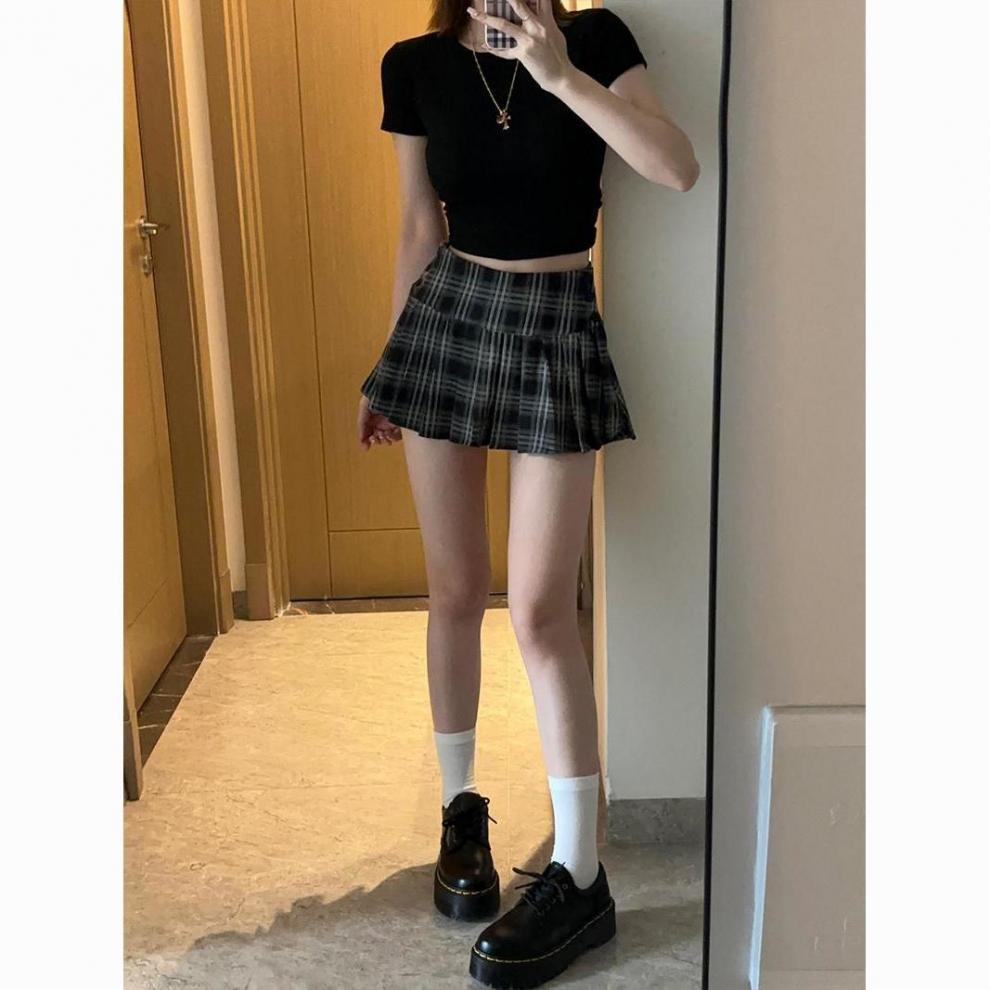Falda Plisada de Cuadros Retro para Mujer Verano Nuevo Colegio Chica Caliente Diseño Americano Falda de Cuadros Falda