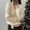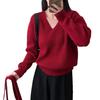 Estilo Suave Elegante Cuello en V Pequeño Cuello Colgante Color Sólido Suéter Pulóver Nuevo de Otoño e Invierno para Mujer Top de Suéter Dulce Holgado