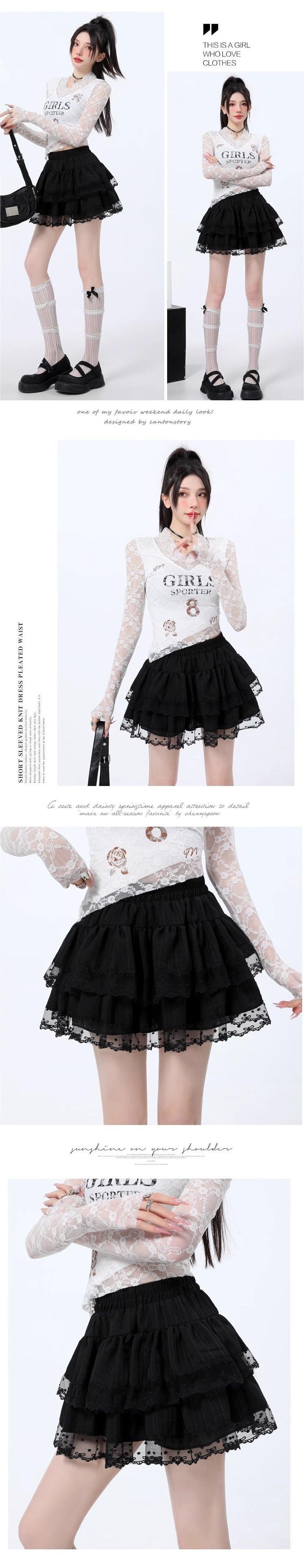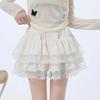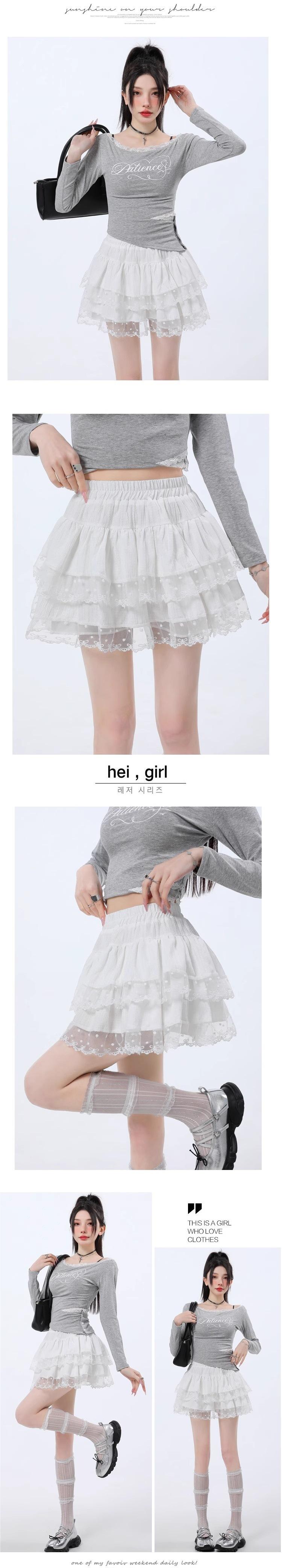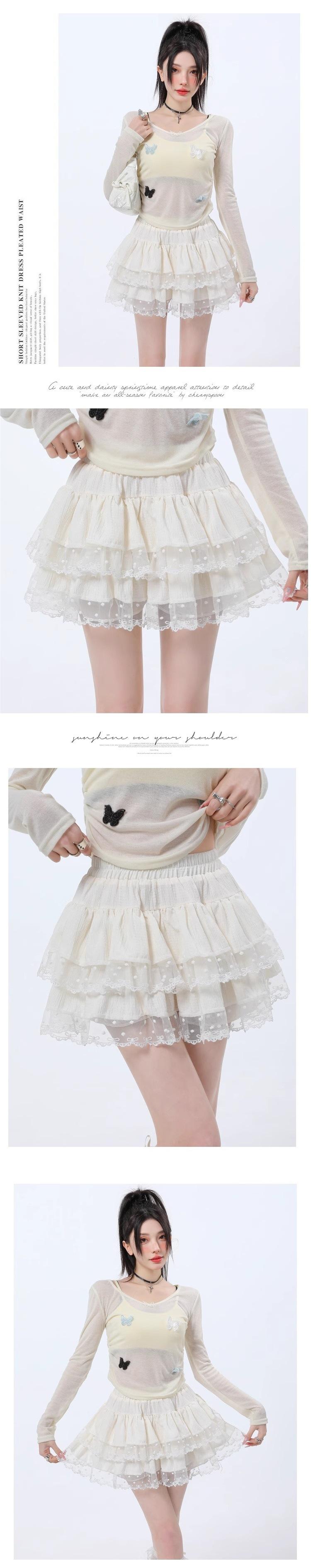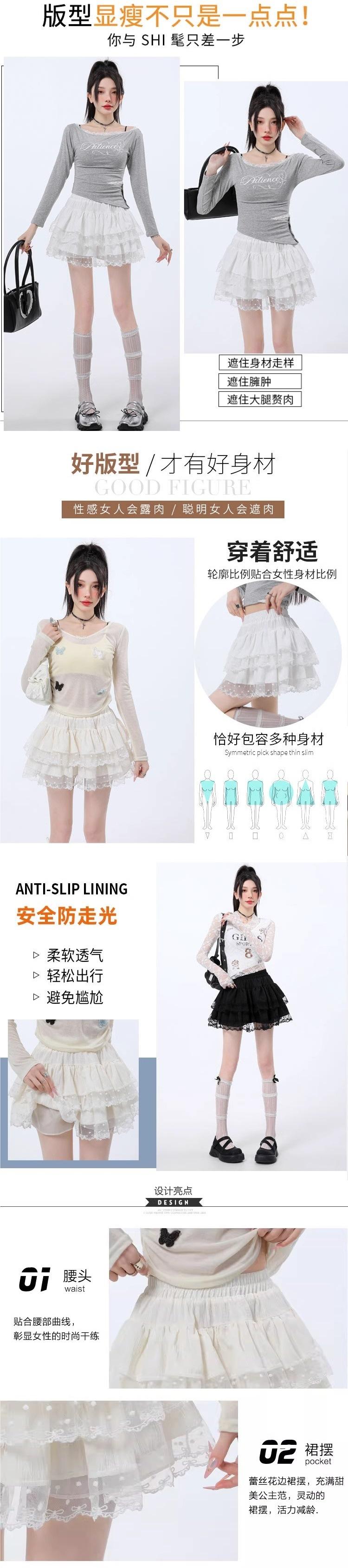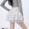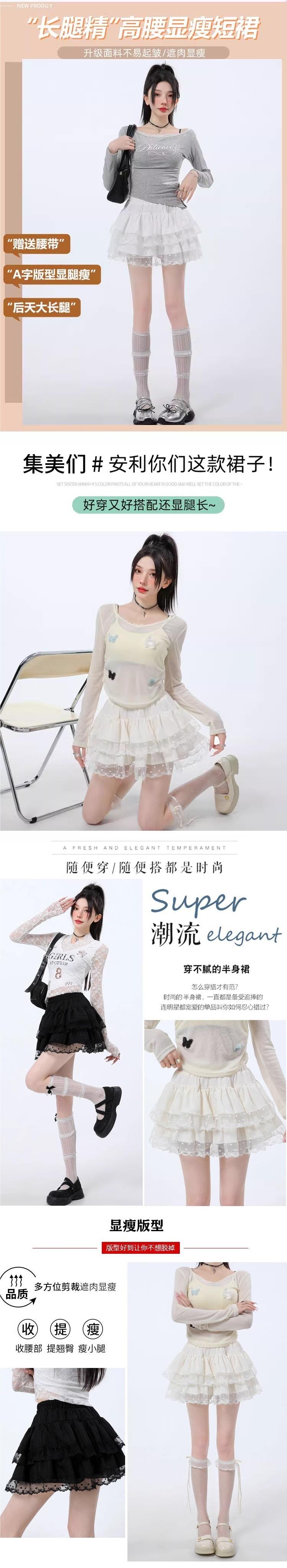 Falda de Encaje Dulce de Hada Blanca Falda Petite de Primavera y Verano para Mujer Look Adelgazante Cintura Alta Falda A-Línea