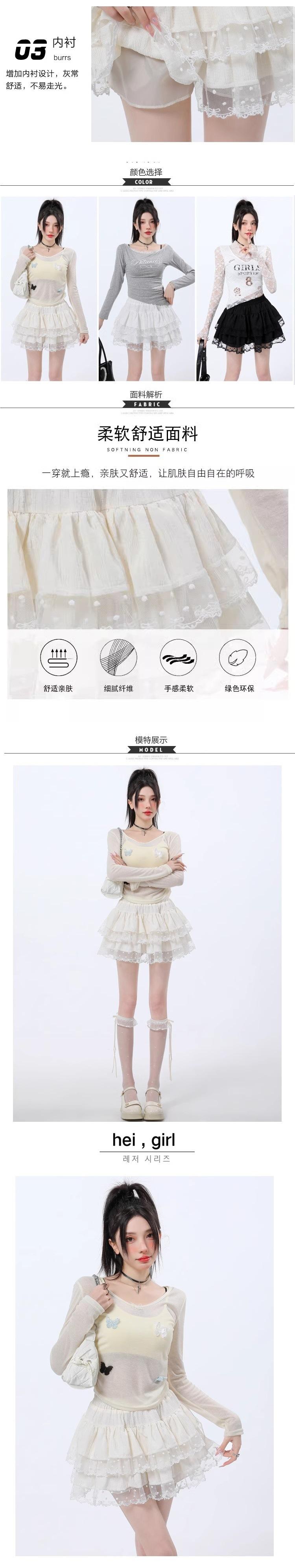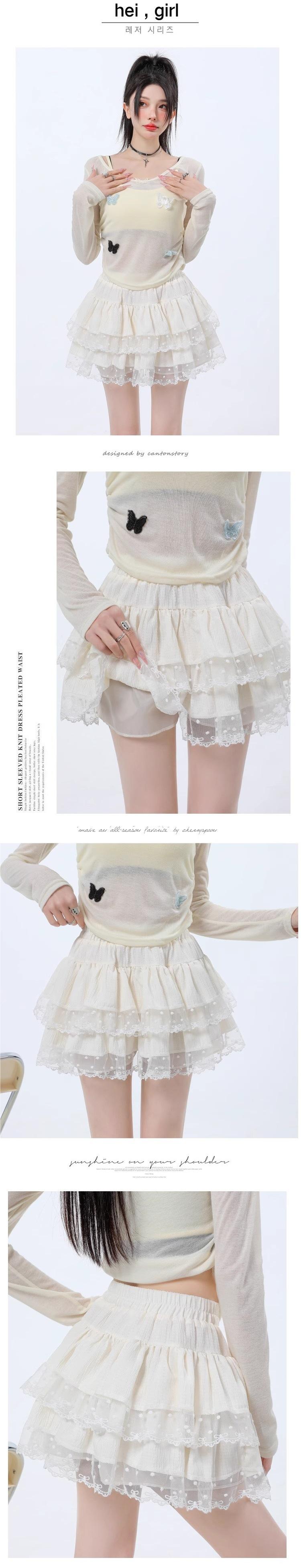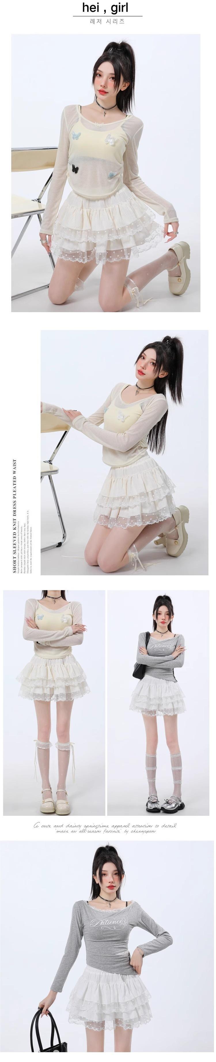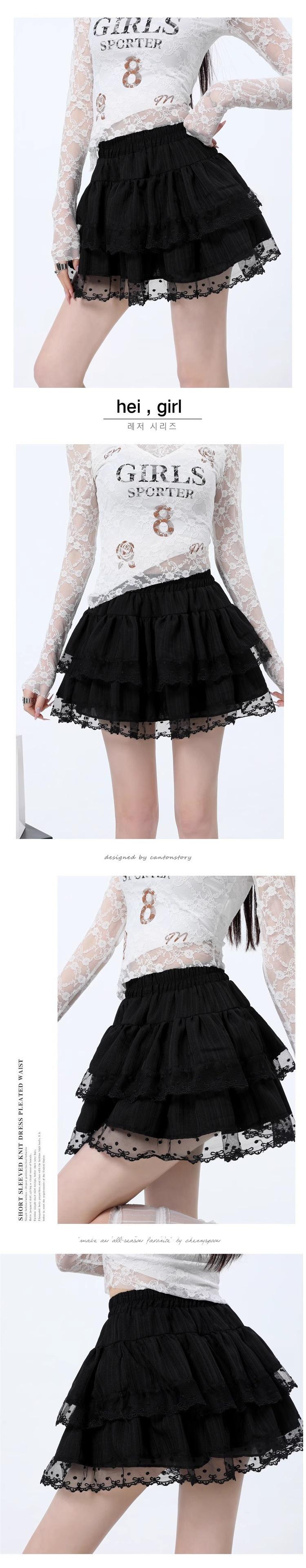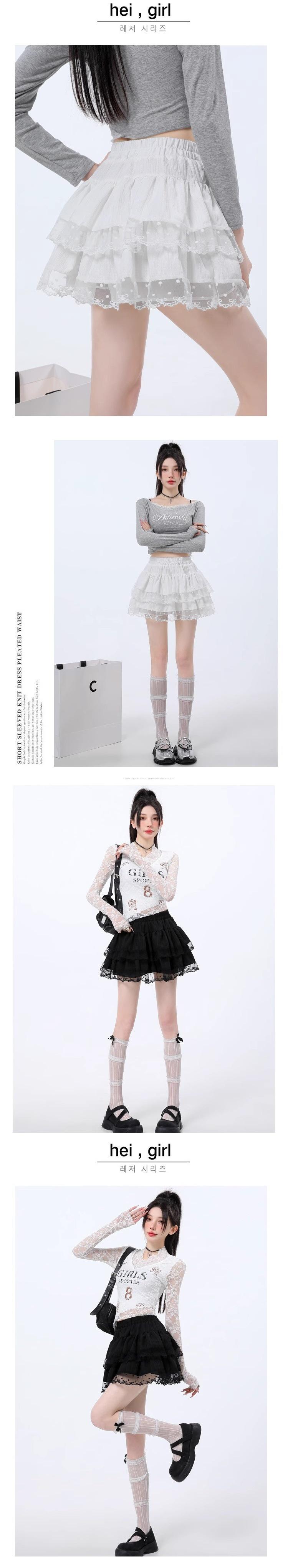 Falda de Encaje Dulce de Hada Blanca Falda Petite de Primavera y Verano para Mujer Look Adelgazante Cintura Alta Falda A-Línea
