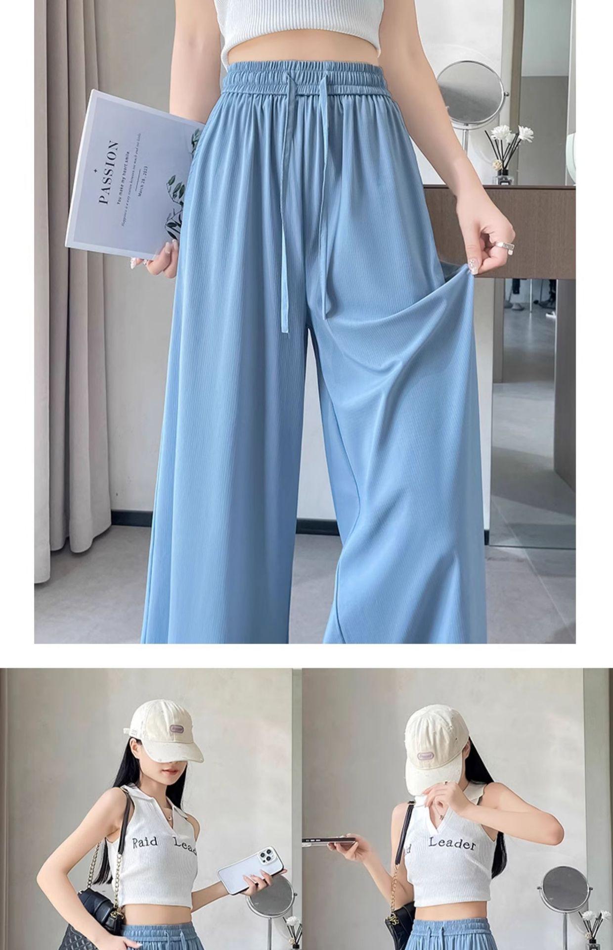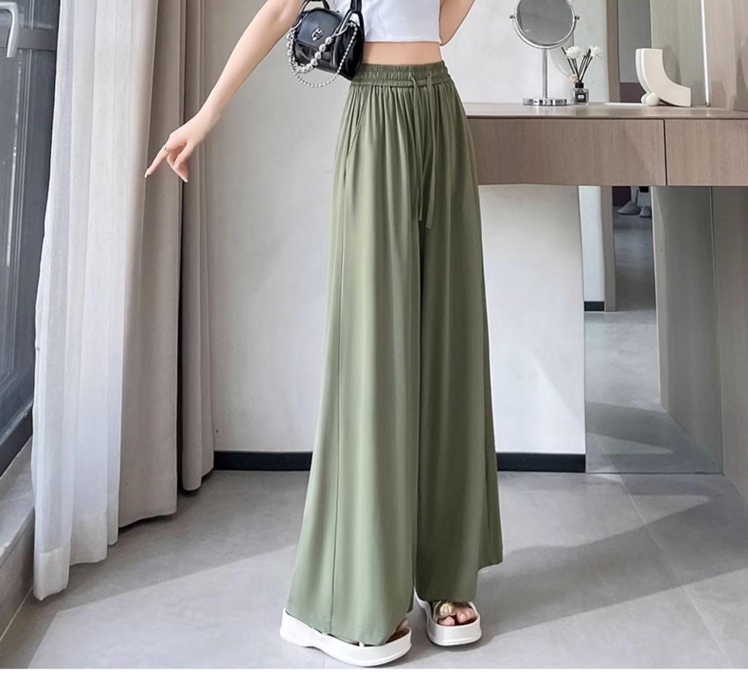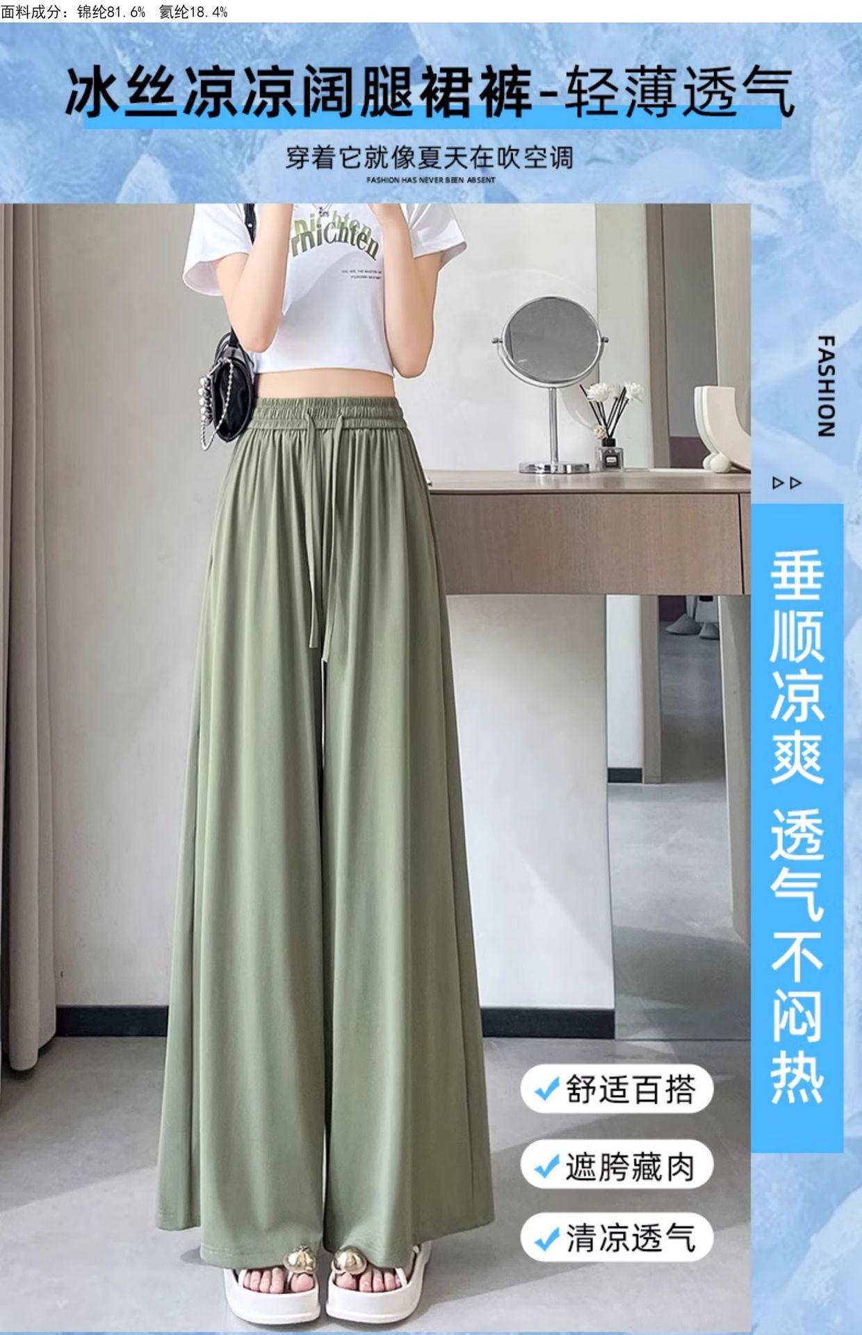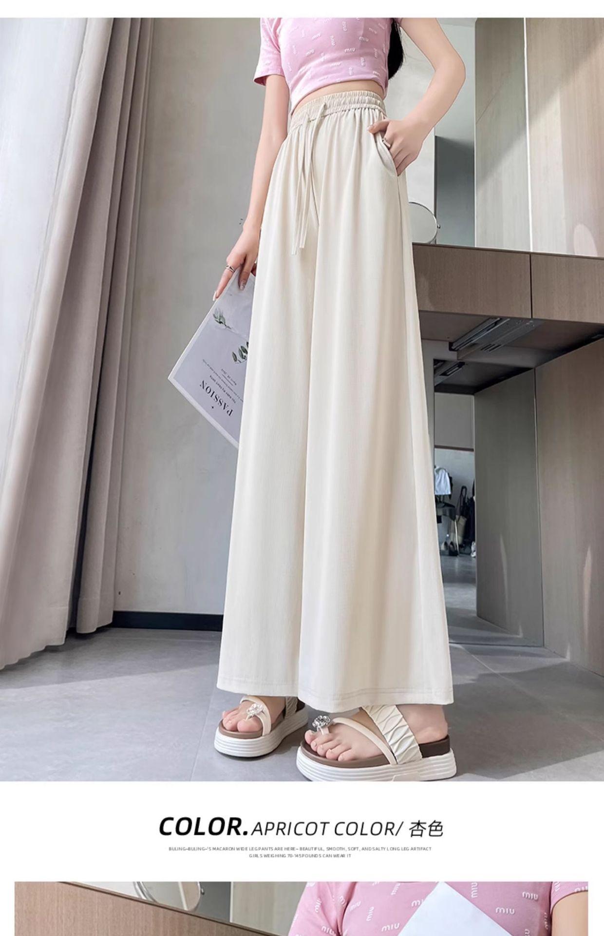Culottes de Seda de Hielo de Cintura Alta para Mujer Pantalones Rectos Drapeados de Verano Delgados de Nueve Puntos Pierna Ancha Frescos Sueltos Adelgazantes Pantalones Casuales