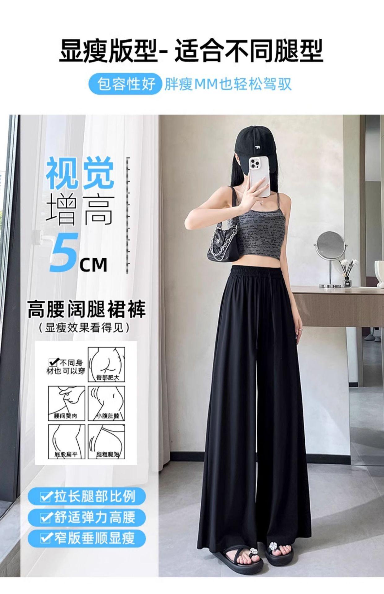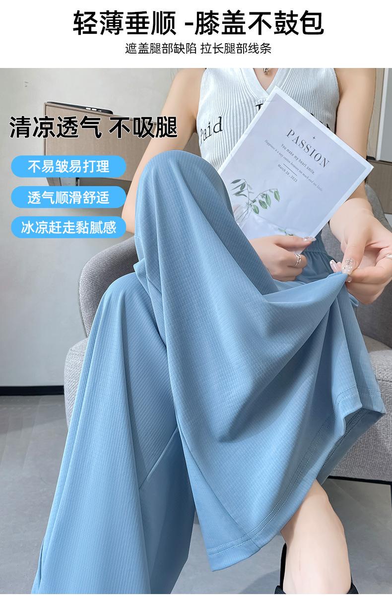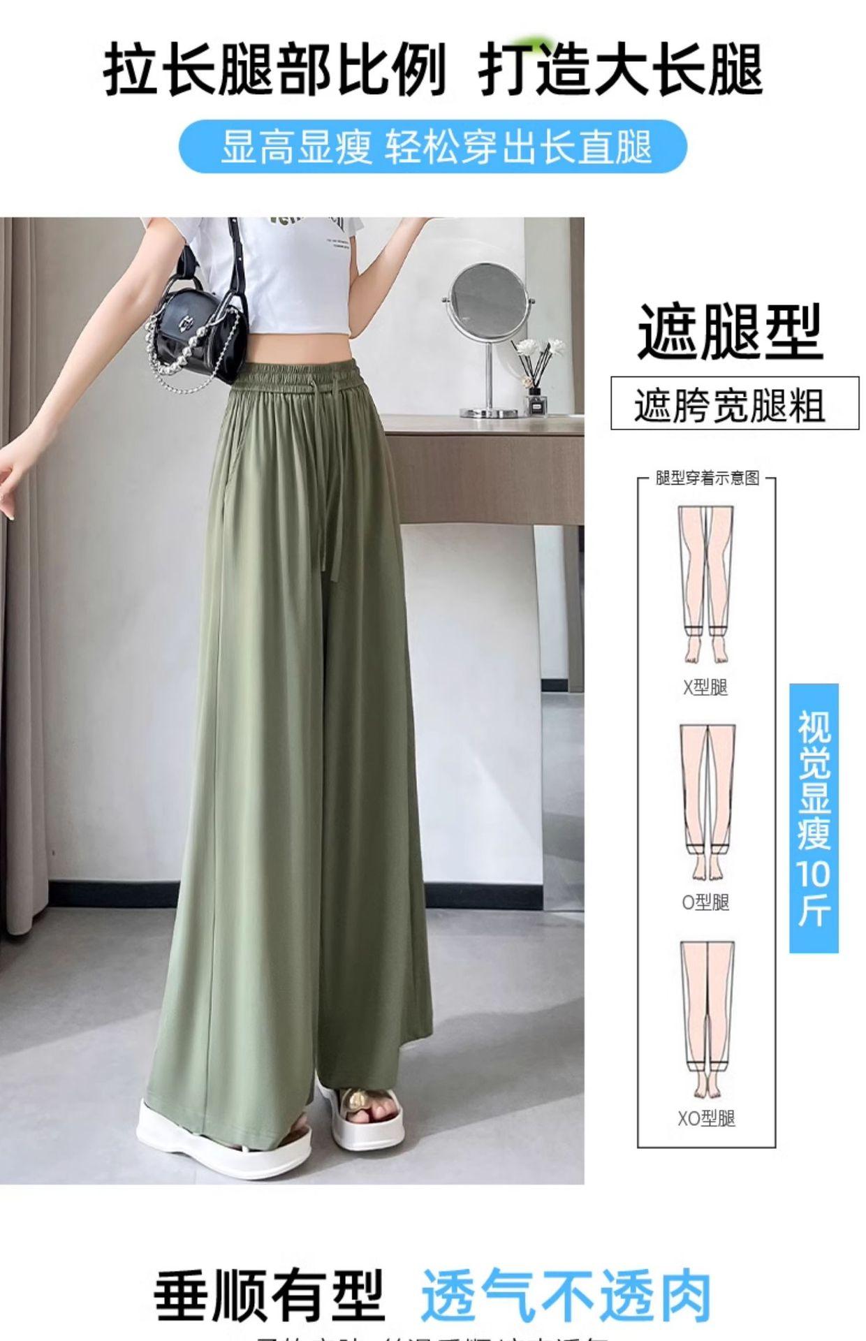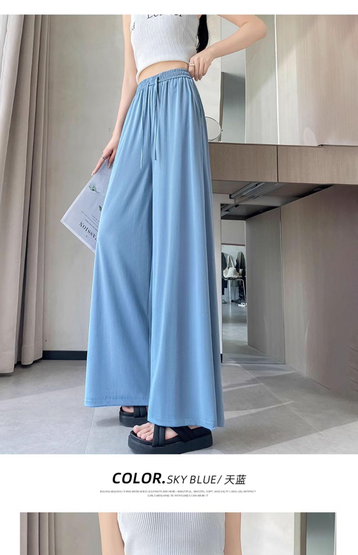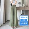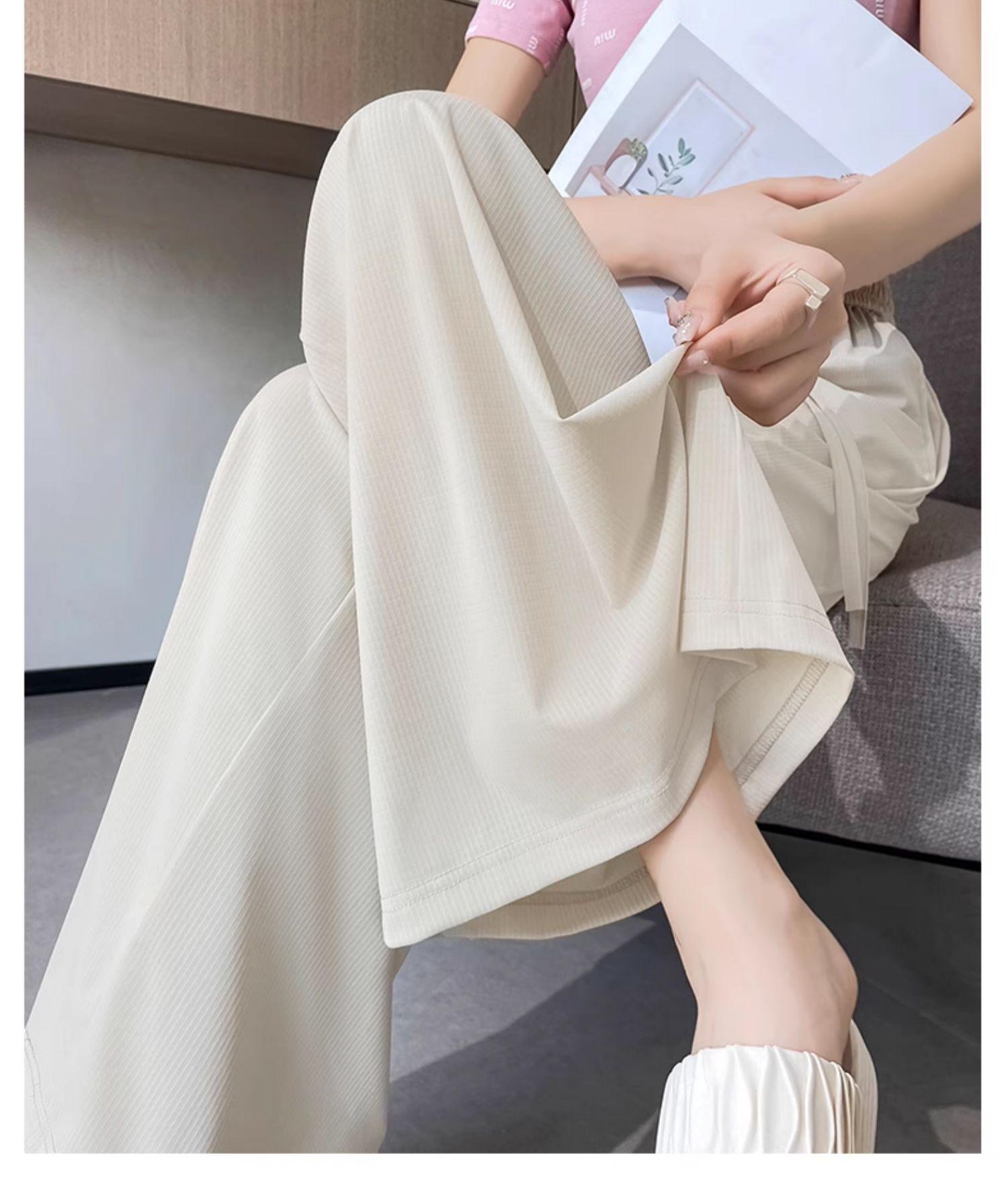 Culottes de Seda de Hielo de Cintura Alta para Mujer Pantalones Rectos Drapeados de Verano Delgados de Nueve Puntos Pierna Ancha Frescos Sueltos Adelgazantes Pantalones Casuales
