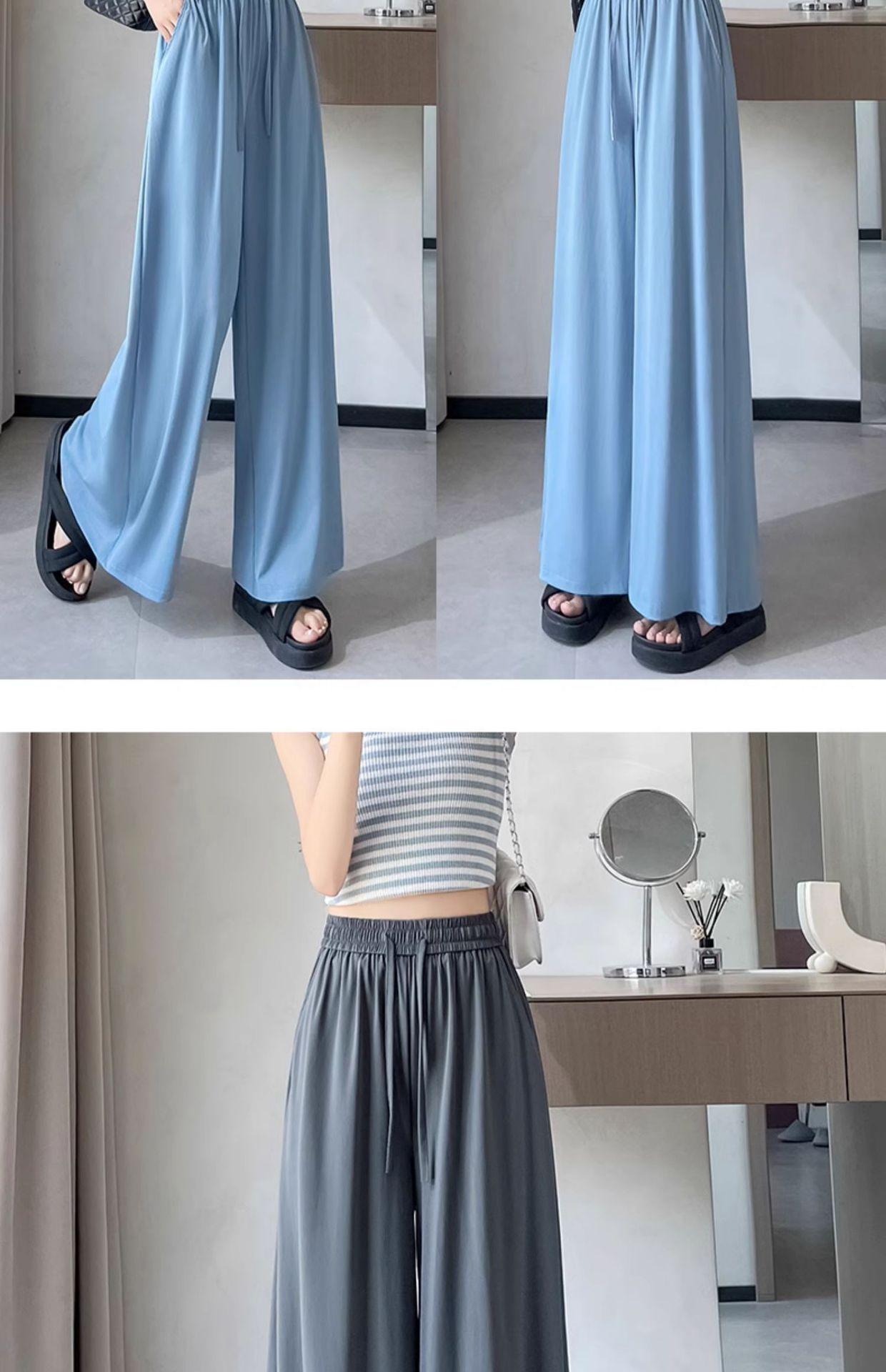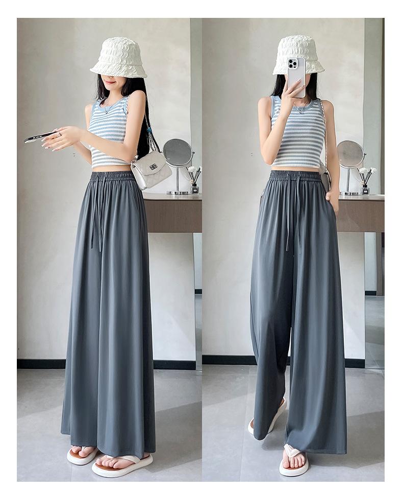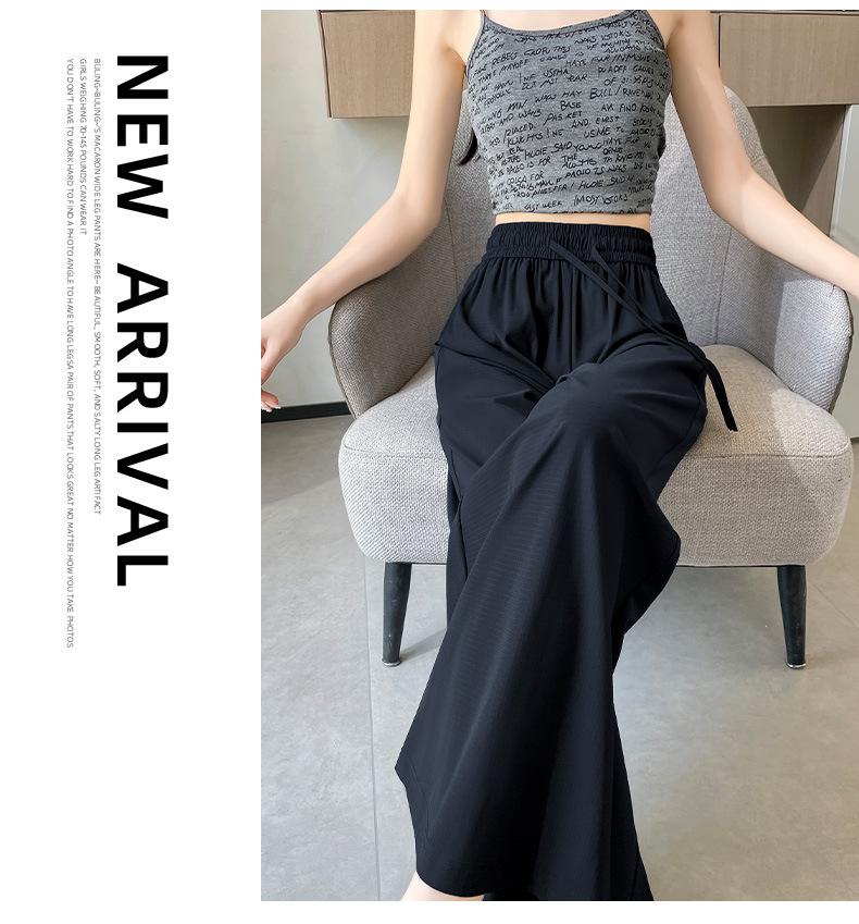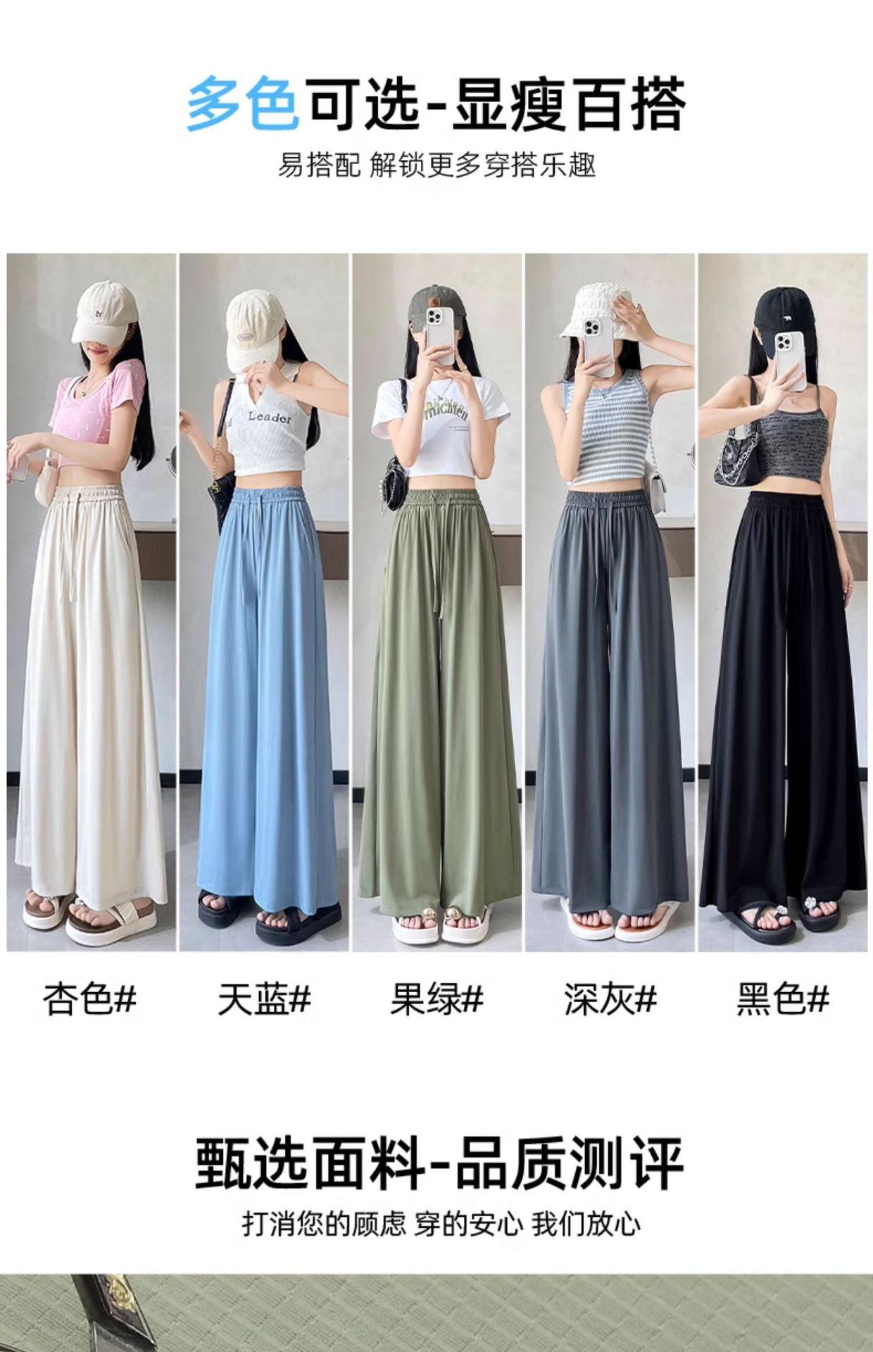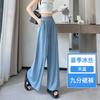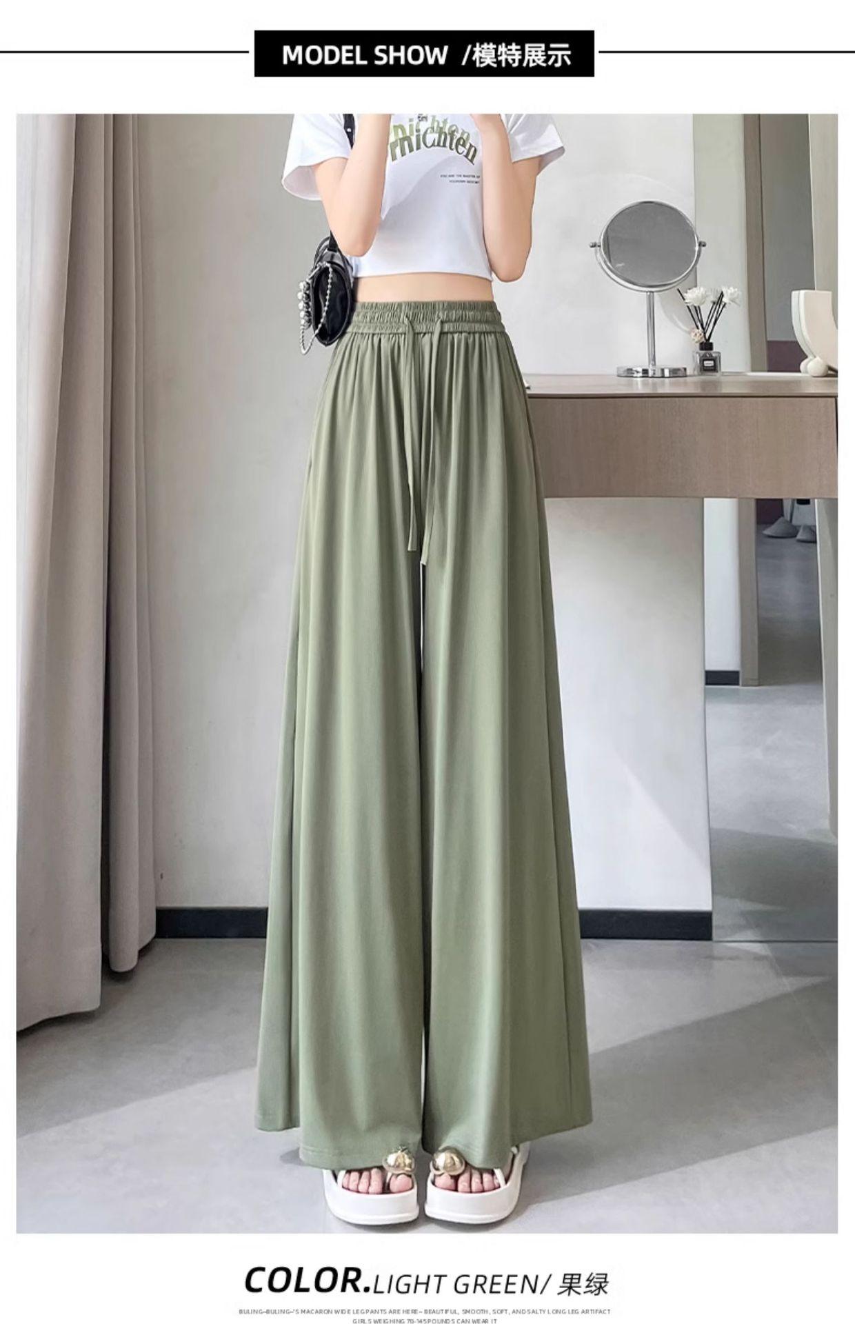 Culottes de Seda de Hielo de Cintura Alta para Mujer Pantalones Rectos Drapeados de Verano Delgados de Nueve Puntos Pierna Ancha Frescos Sueltos Adelgazantes Pantalones Casuales