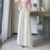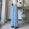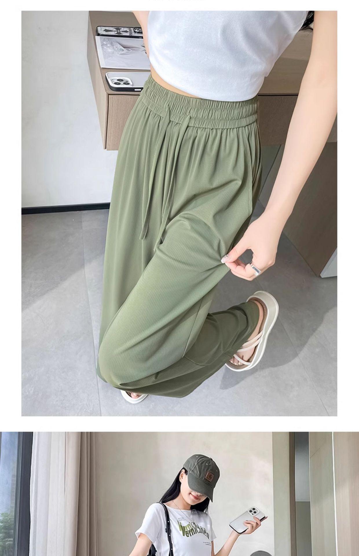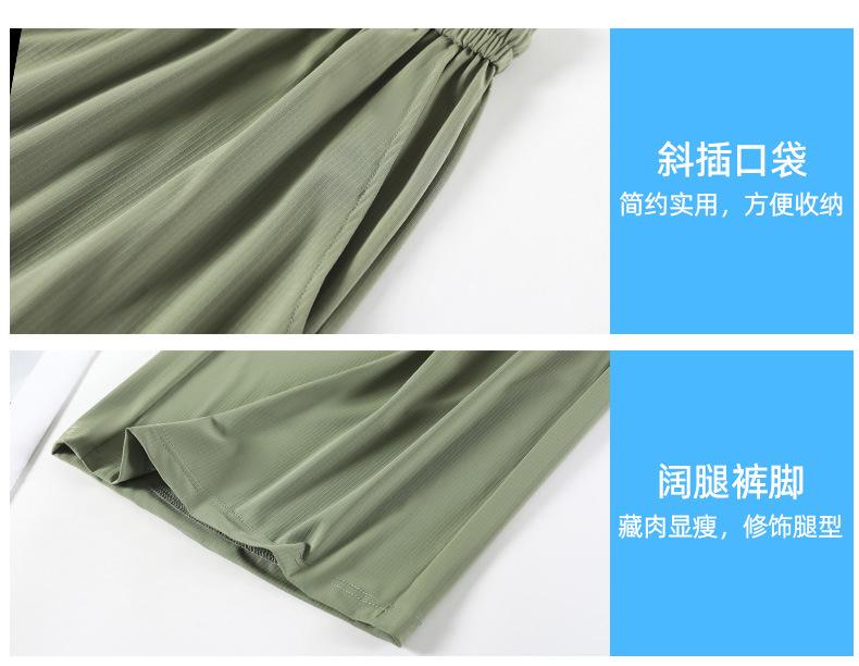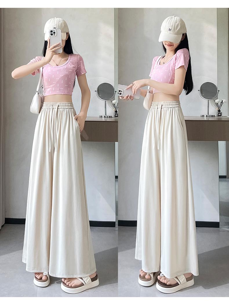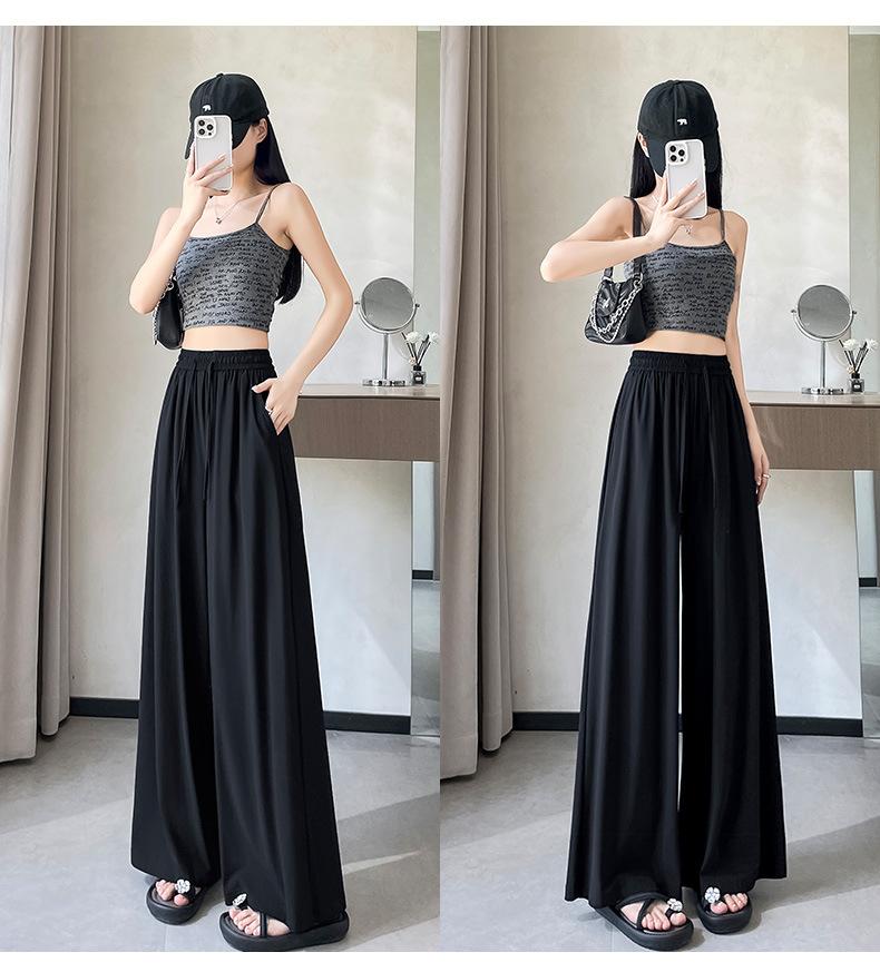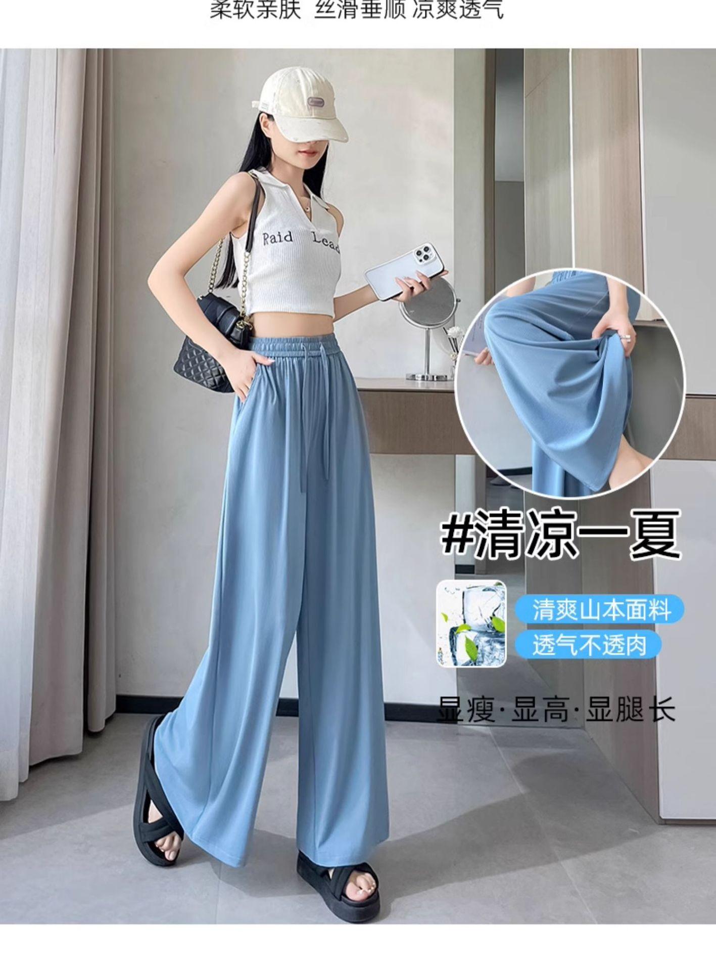Culottes de Seda de Hielo de Cintura Alta para Mujer Pantalones Rectos Drapeados de Verano Delgados de Nueve Puntos Pierna Ancha Frescos Sueltos Adelgazantes Pantalones Casuales