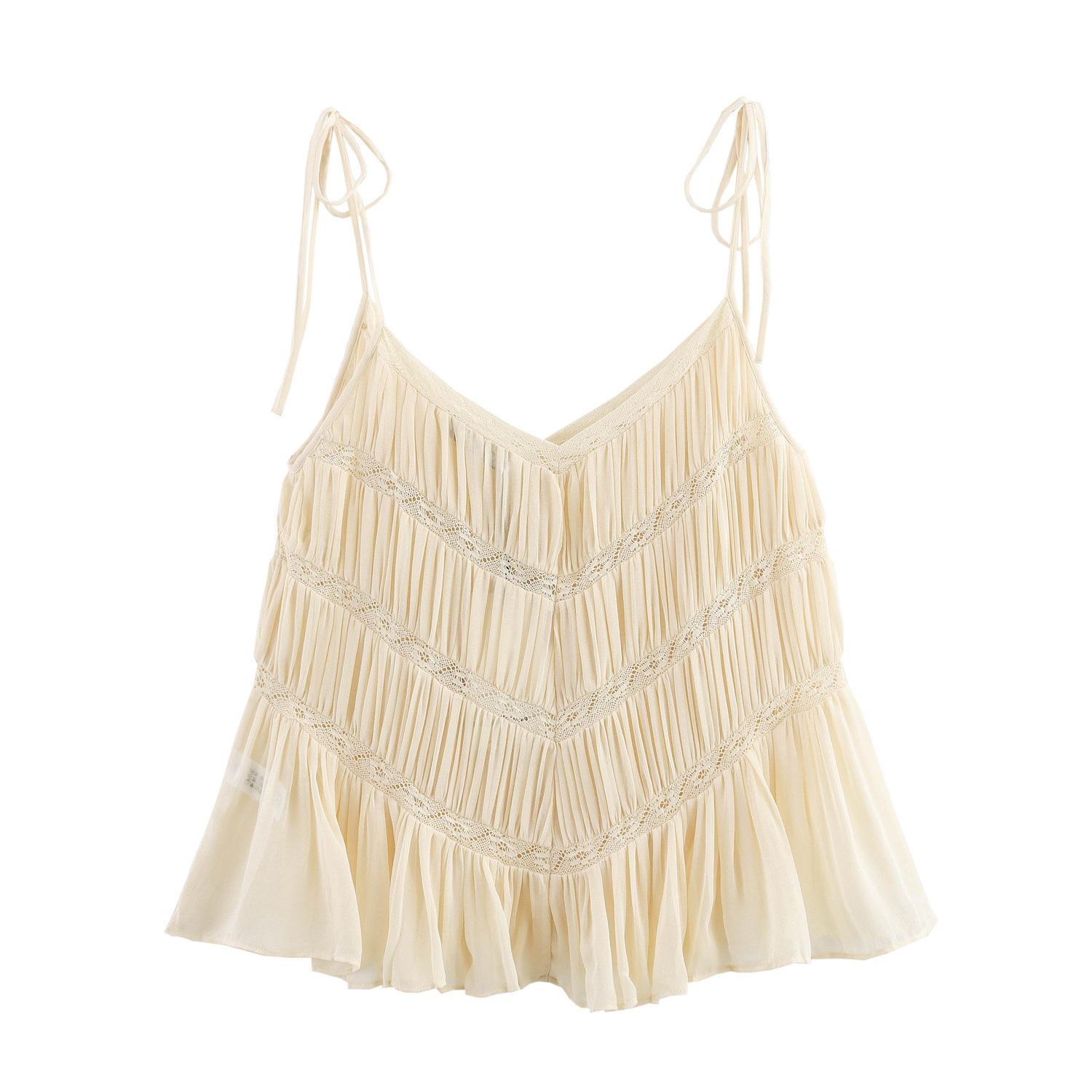 Mujer Europea y Americana Transfronteriza Primavera y Verano 2025 Nueva Moda Casual Recta Encaje Top 6895054