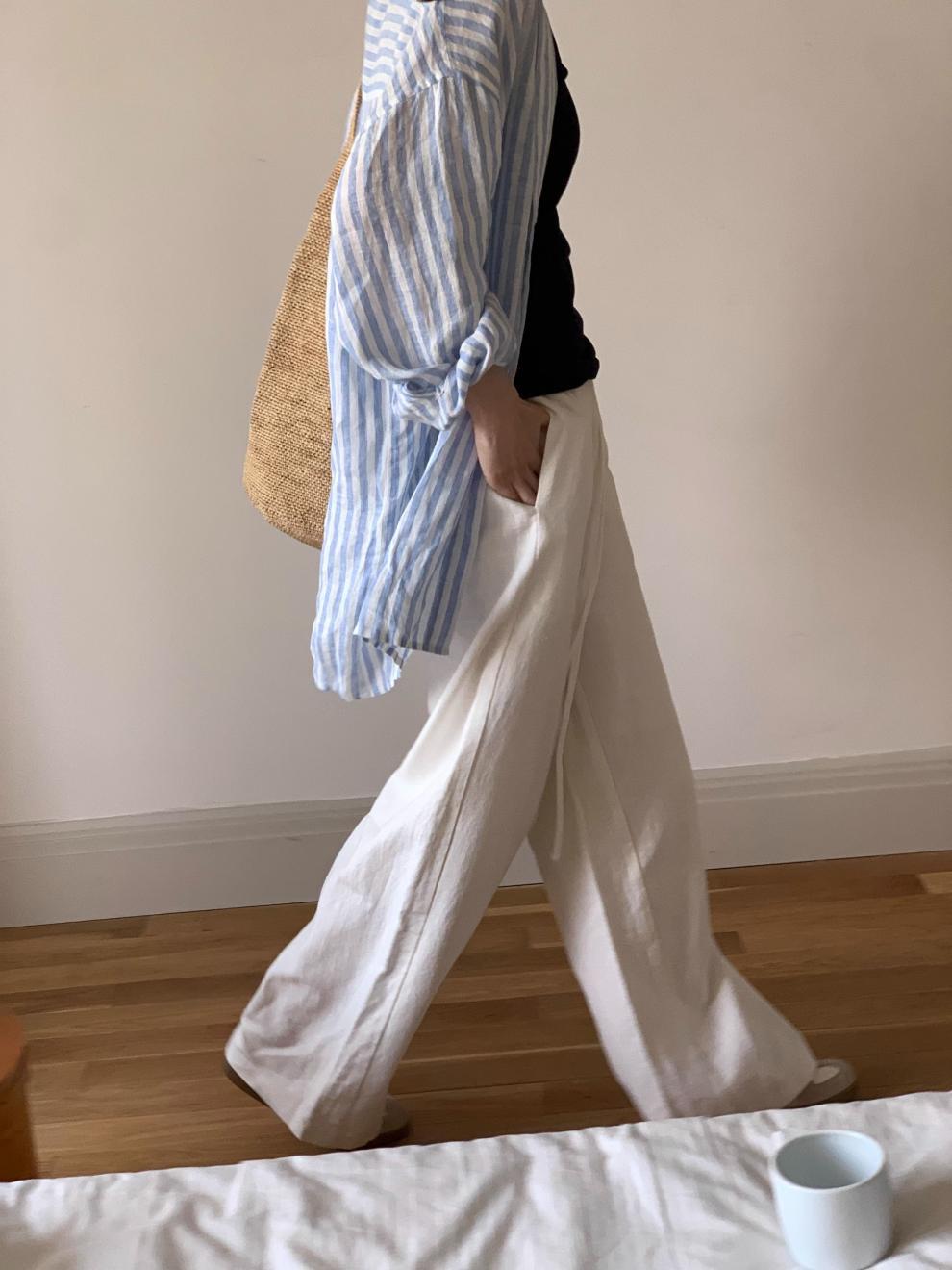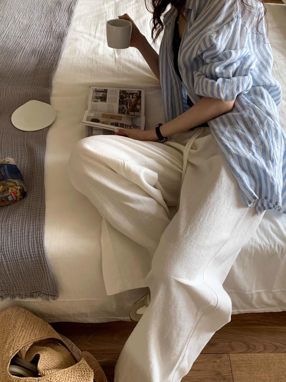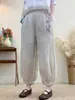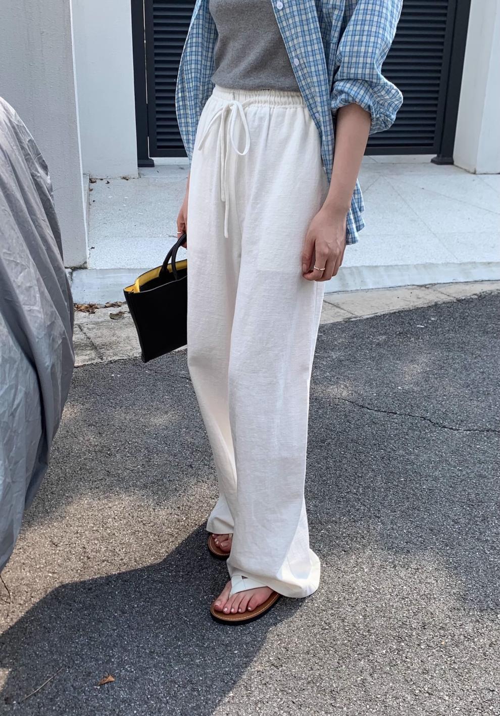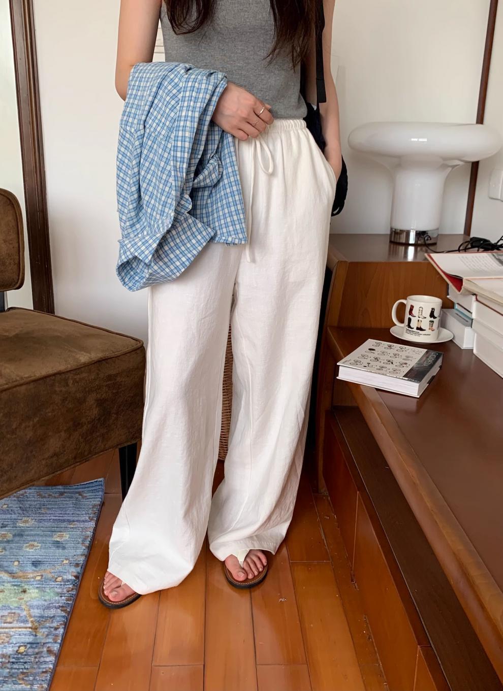 Pantalones fáciles hechos a mano ~ pantalones con cordón pantalones de ramio blancos cintura elástica pantalones casuales pantalones mujer
