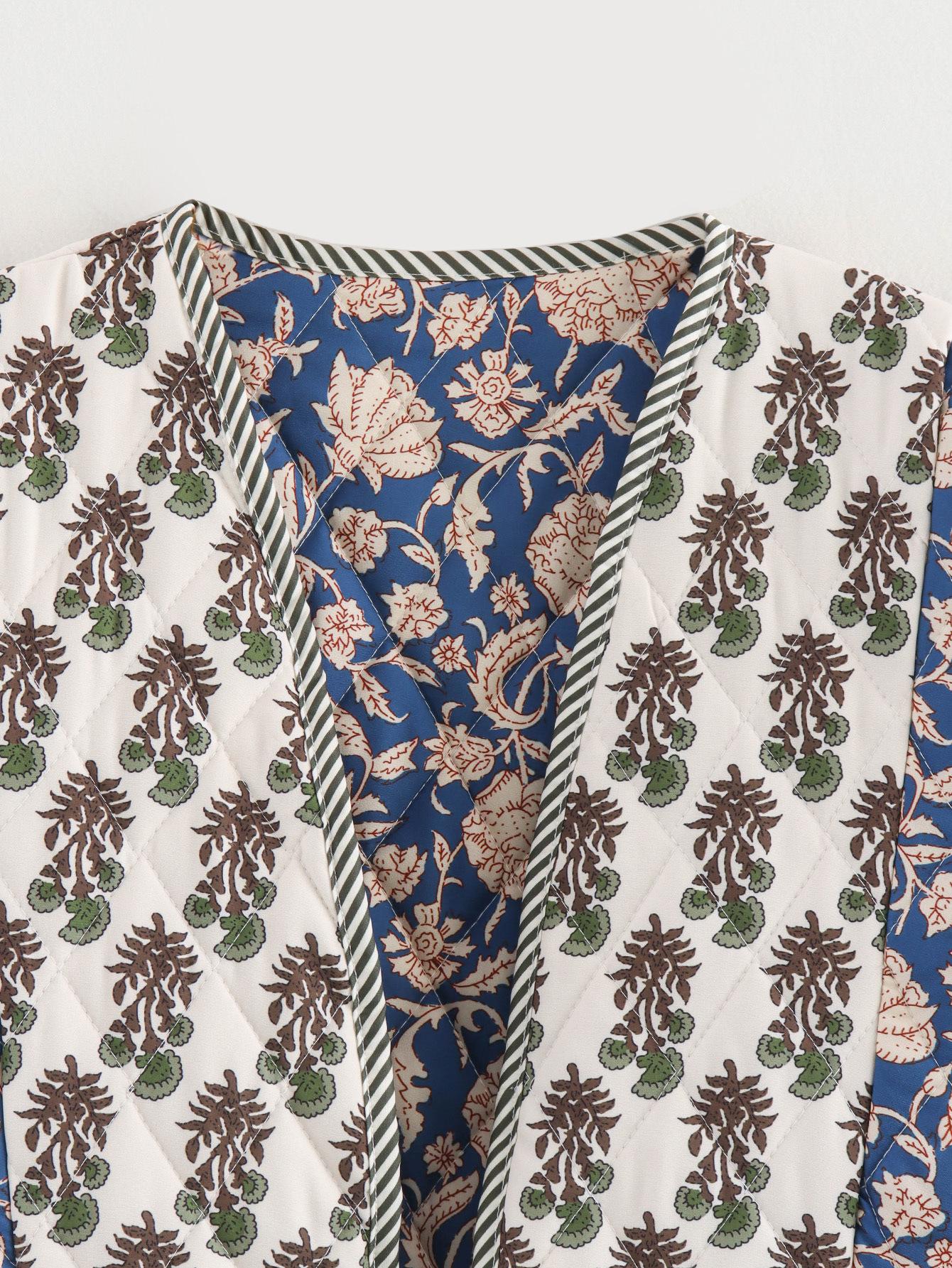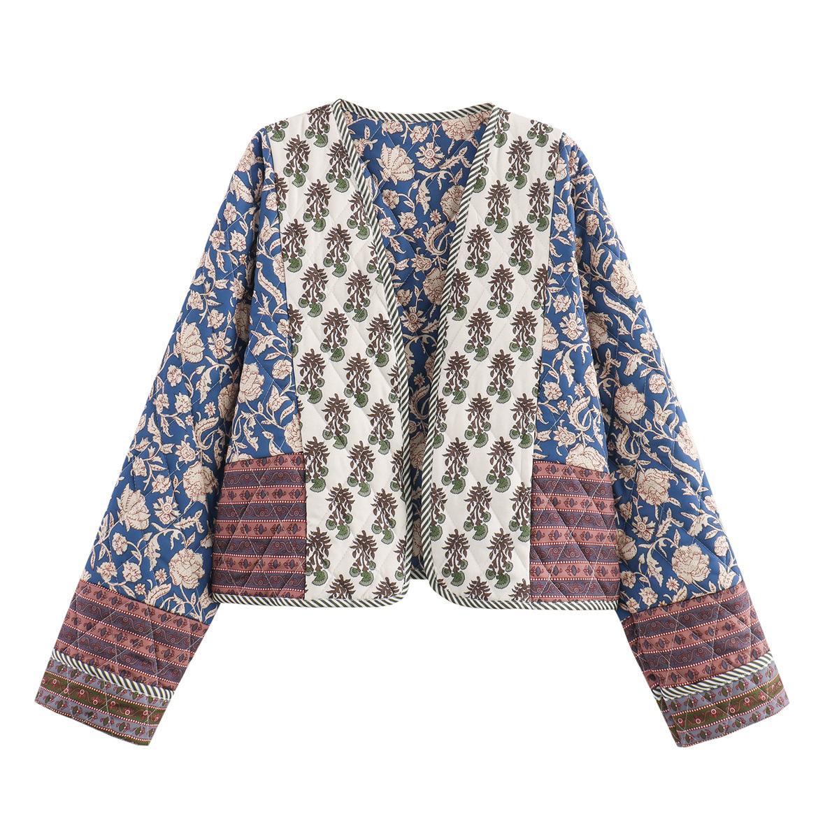 Ropa de Otoño para Mujer Nueva 2024 Estilo Europeo y Americano Moda Casual Simple Chaqueta de Algodón Acolchada con Estampado Doble Cara