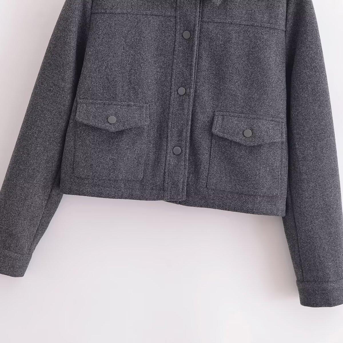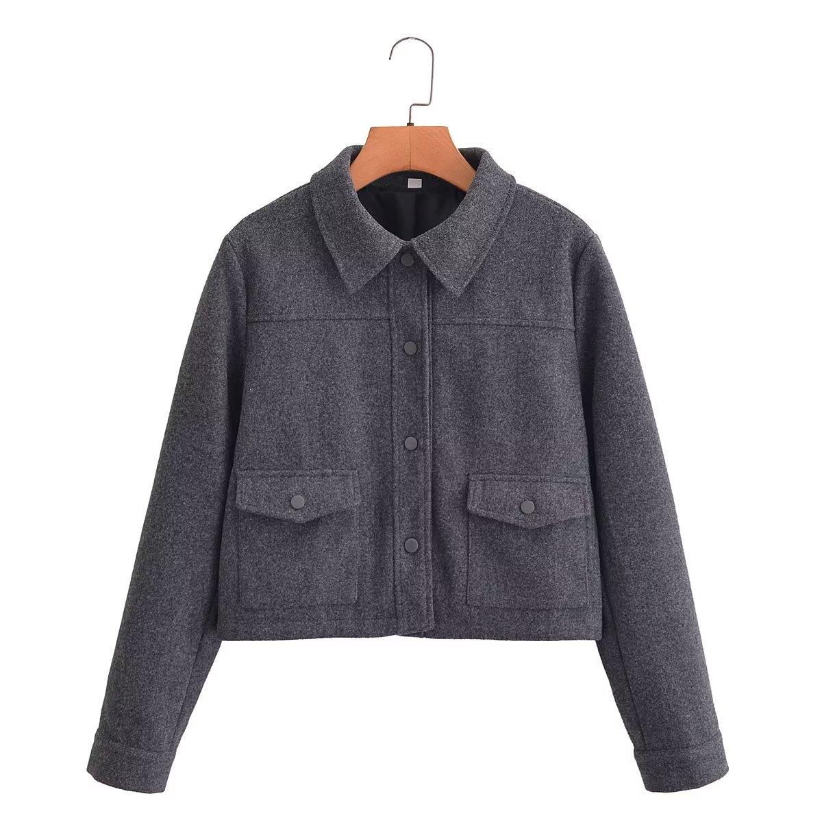 2024 Ropa de Invierno para Mujer Nueva Estilo Europeo y Americano Moda Sencilla Versátil Casual Chaqueta de Lana con Cierre a Presión