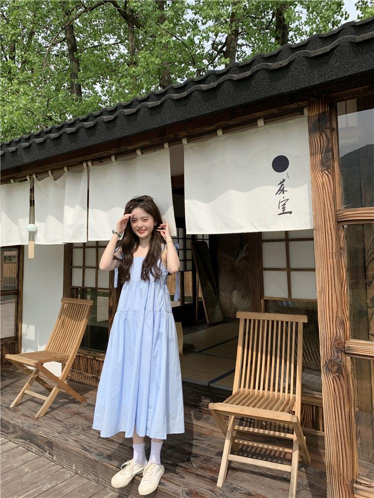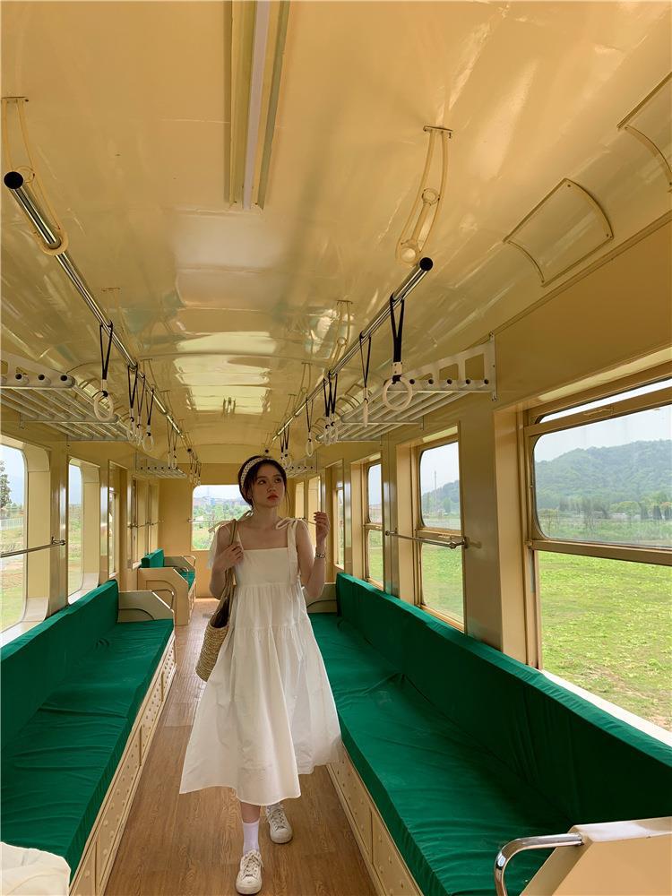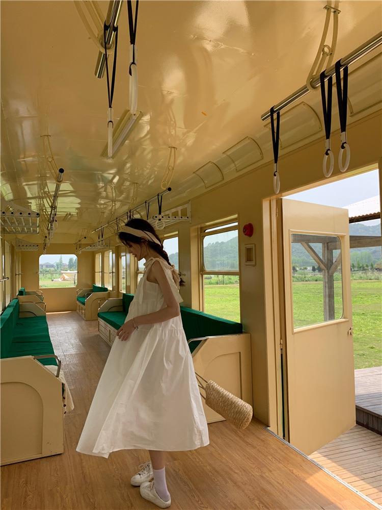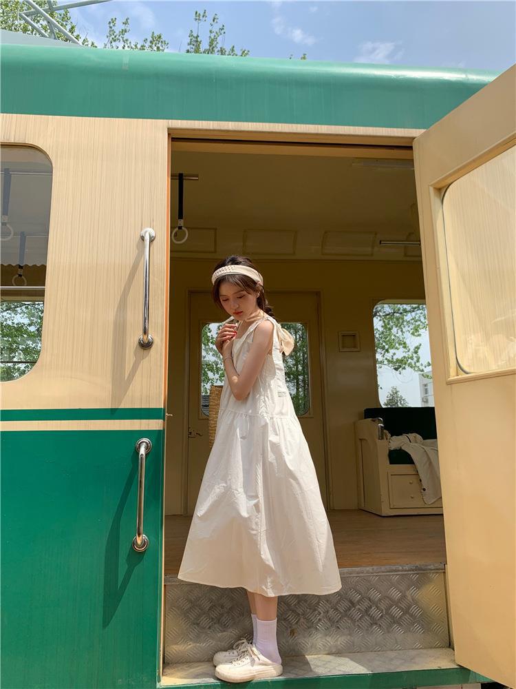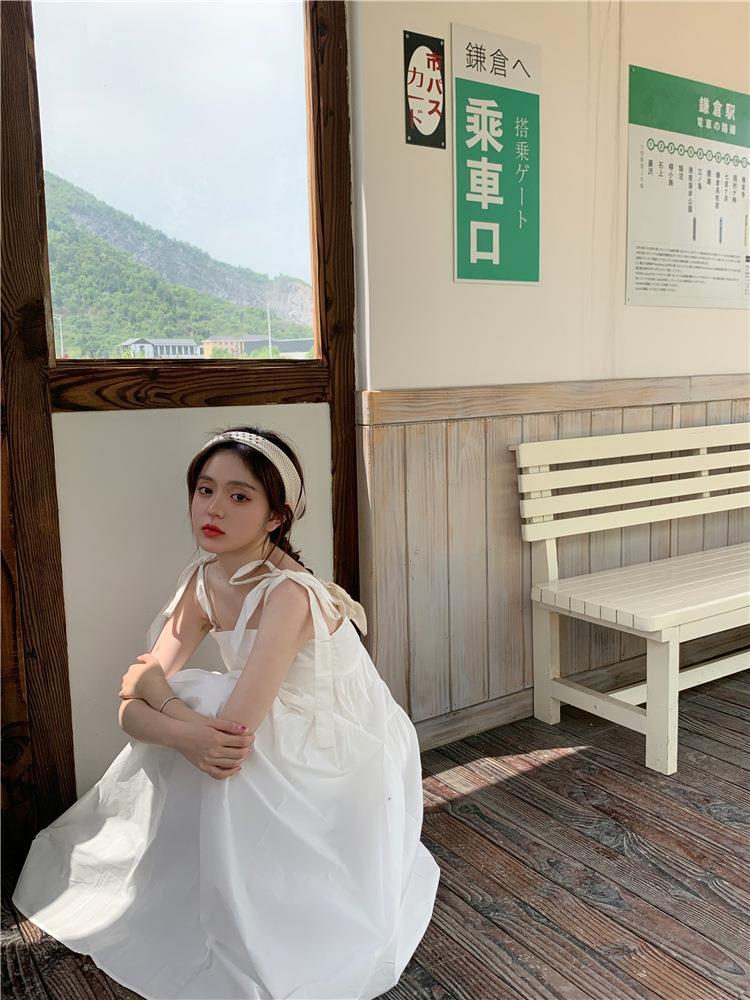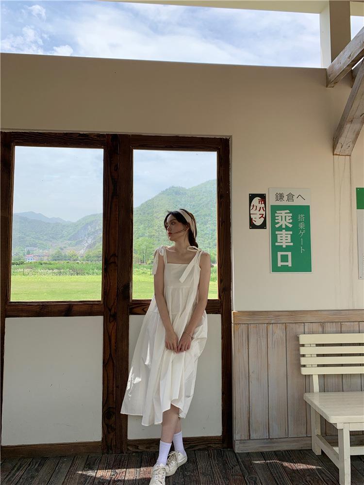 Falda de tirantes blanca transfronteriza Verano Nuevo Estilo Pequeña Fresca Lazo Midi Falda Primer Amor Vestido para Mujer