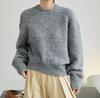 "Estilo Privado" Principios de Otoño Nuevo Suéter Coreano Holgado Perezoso de Mohair Holgado Adelgazante Irregular de Cuello Redondo para Mujer