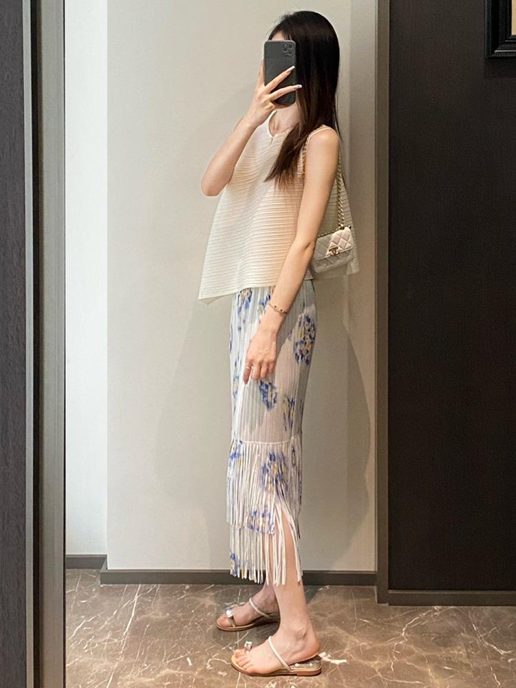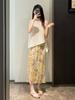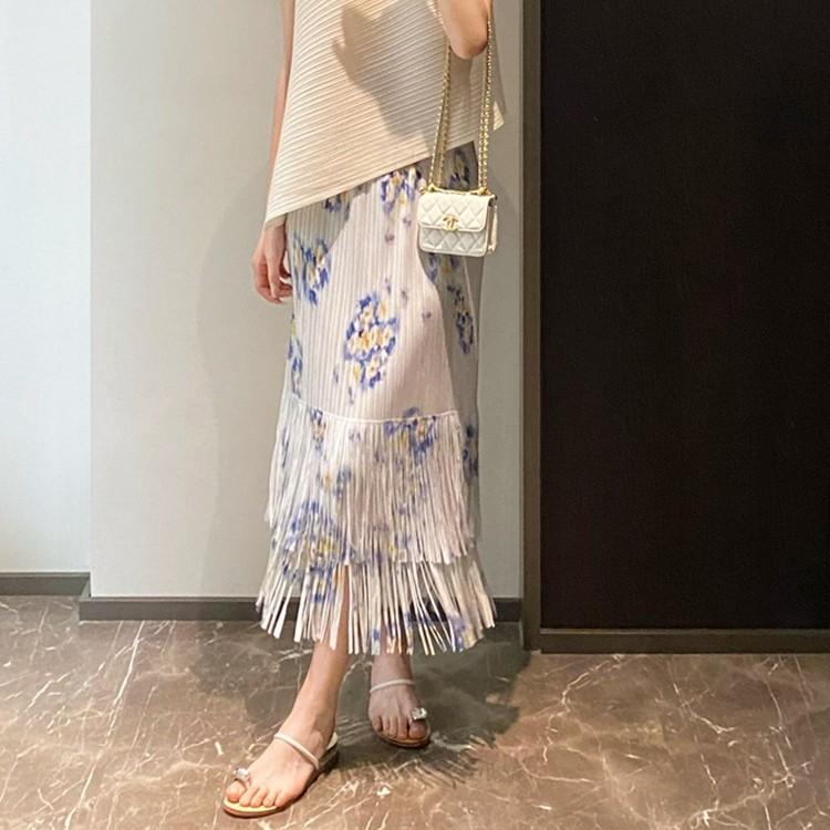 Smudged spring green slit version (skirt), White background blue flower tassel version (skirt), Hawaiian yello...