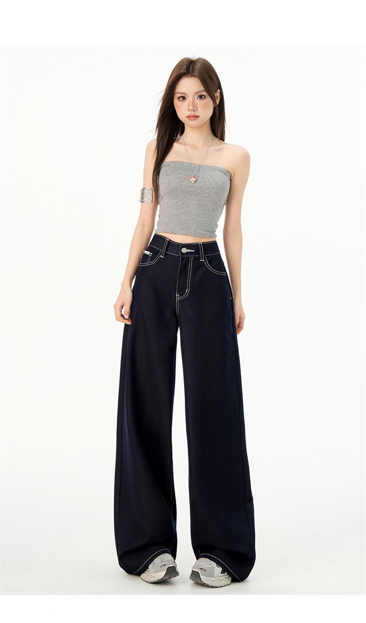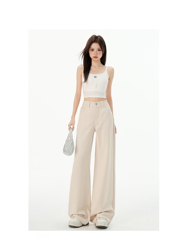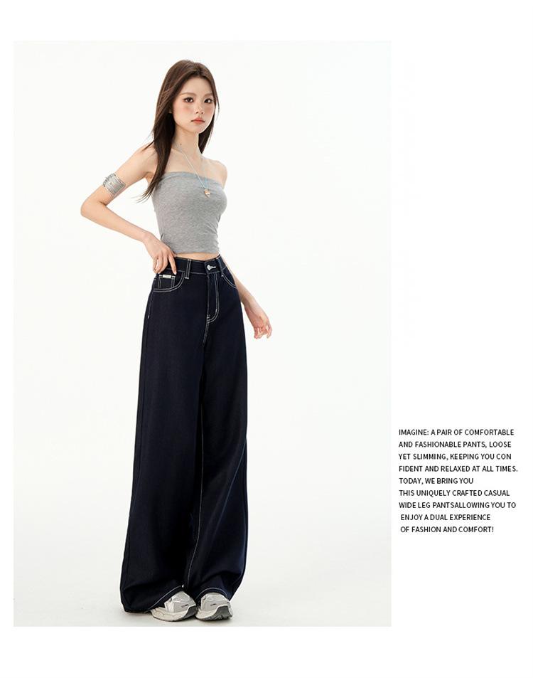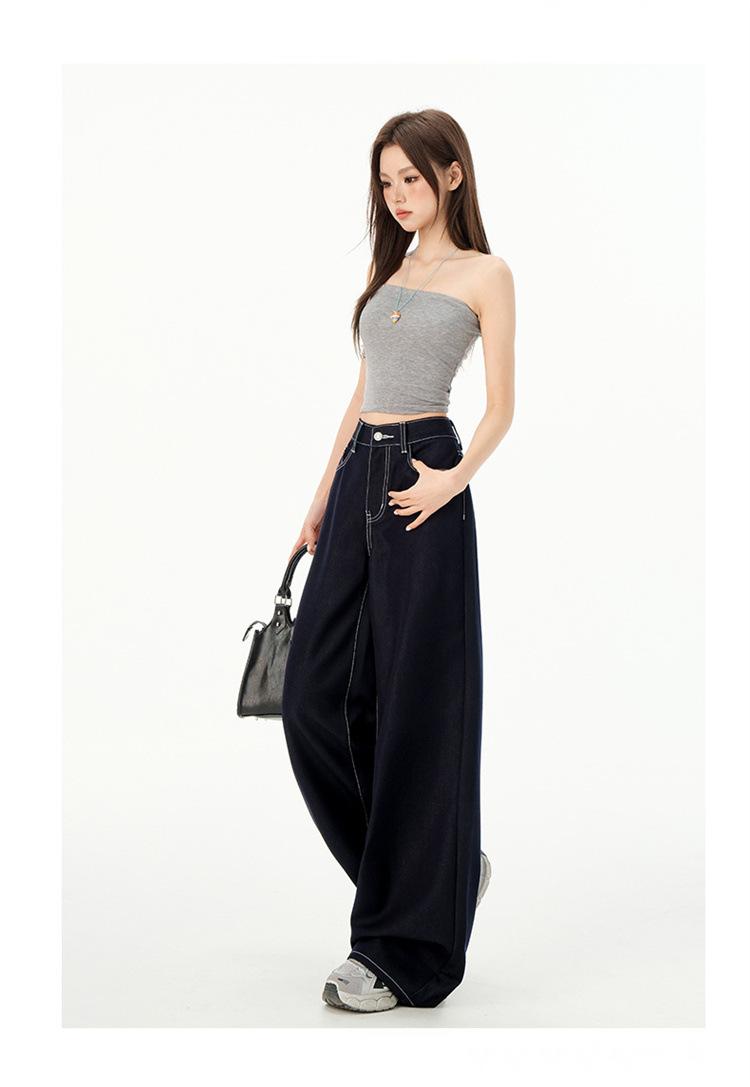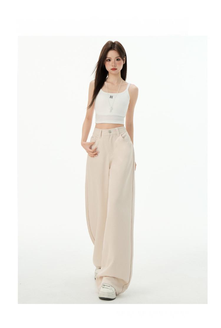 Young Orange# Jeans Retro Americanos Antiarrugas de Pierna Ancha para Mujer Sueltos Delgados Cubre Caderas Modernos Combinan con Todo Pantalones Rectos