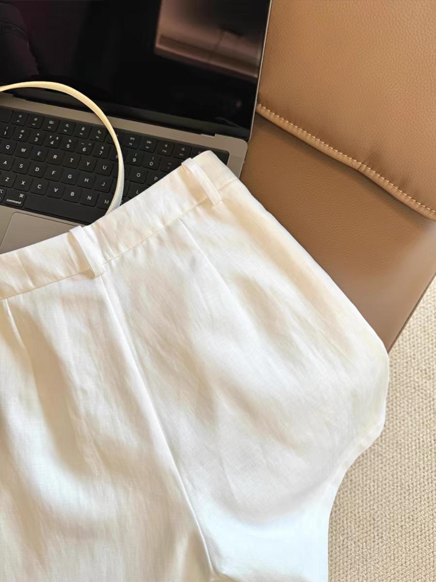 ¡Recomendación nivel CHAO! ¡Sin entumecimiento, sin verano! Pantalones de traje de temperamento simple y moderno para mujer en shorts de lino blanco de cintura alta