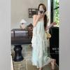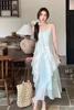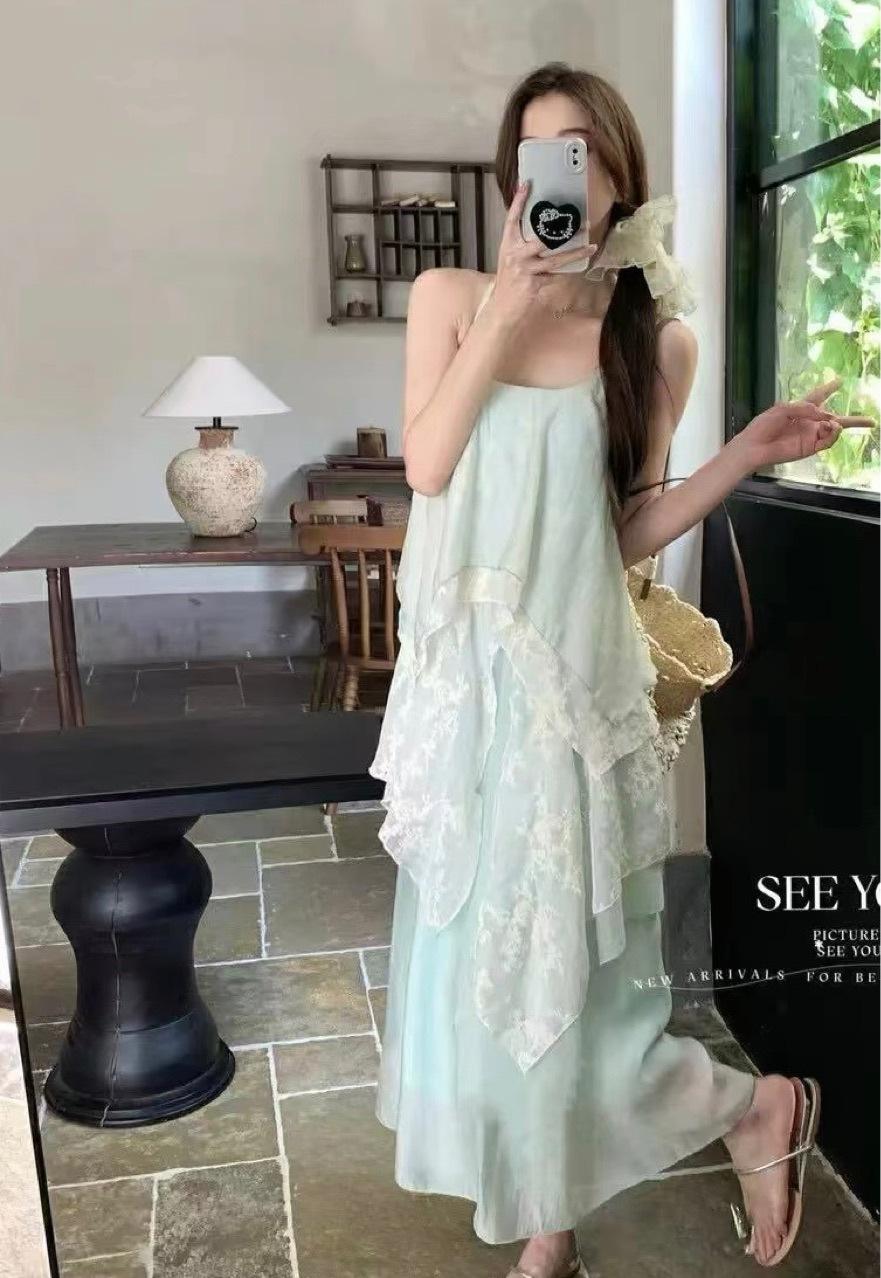 Vestido Largo Irregular Halter Sin Mangas Color Menta Estilo Resort Nuevo 2025 de Tencel