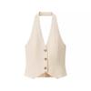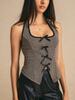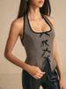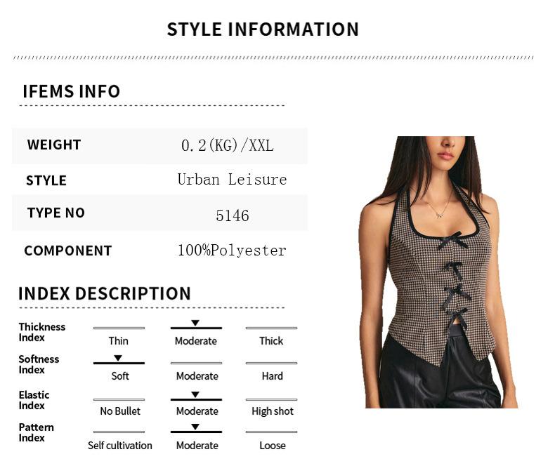 Europeo y Americano comercio exterior transfronterizo para mujer nuevo delgado moda sexy lazo espalda descubierta cuadros sin mangas cuello chaleco