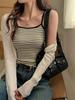 Camisola de Fondo de Punto a Rayas de Color en Contraste para Mujer, Diseño Interior de Verano con Alta Elasticidad y Top Elegante