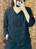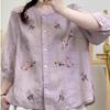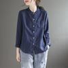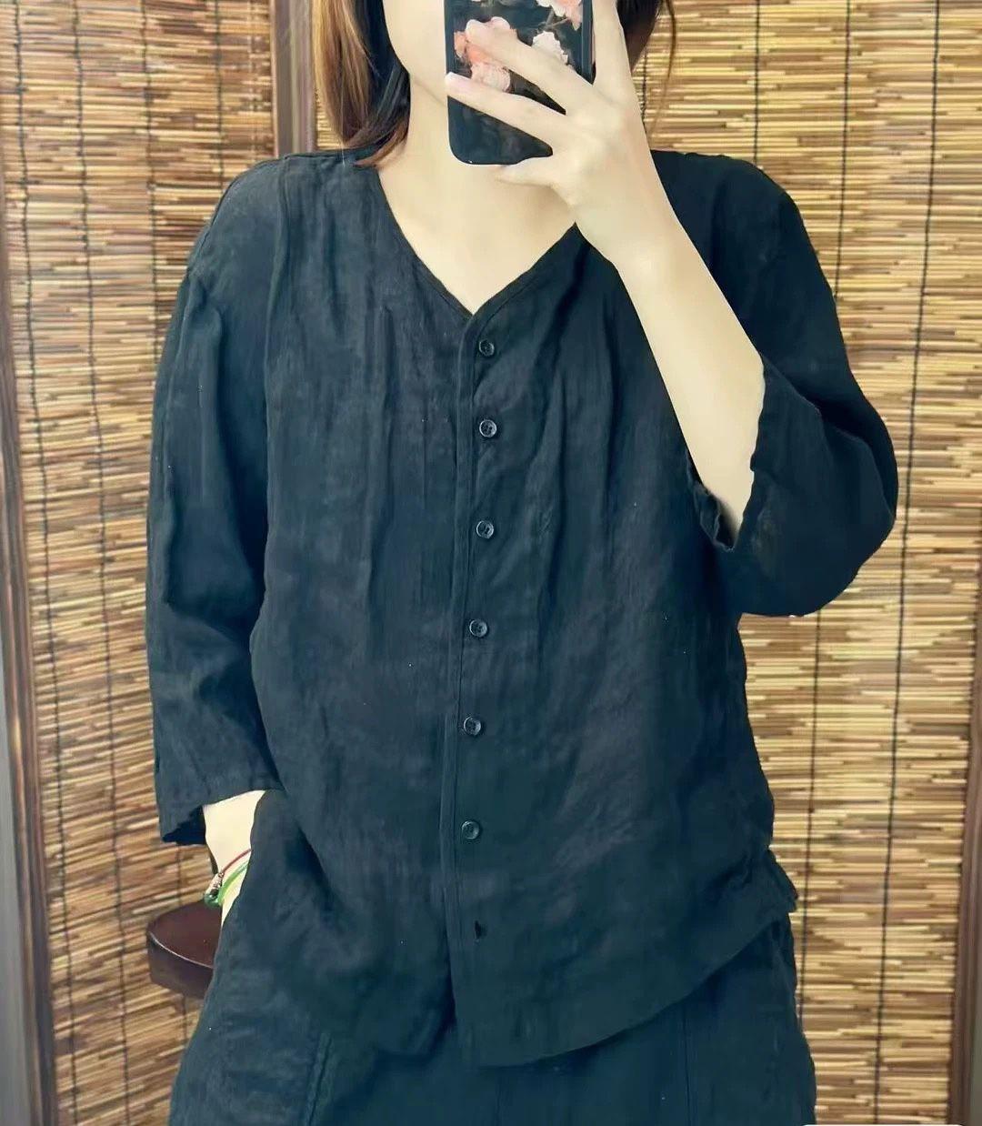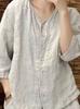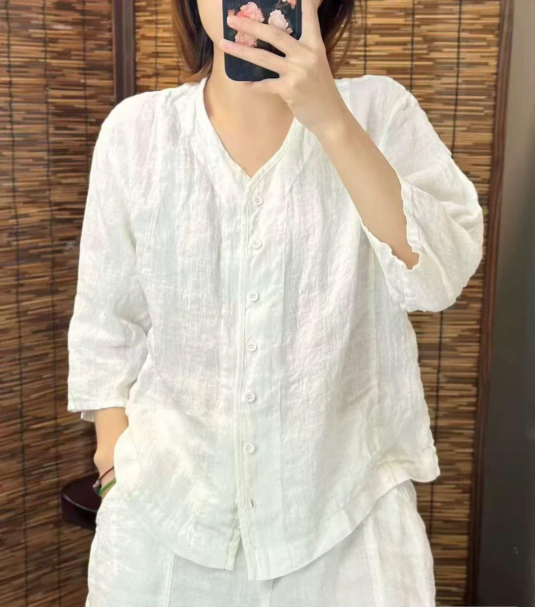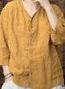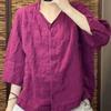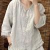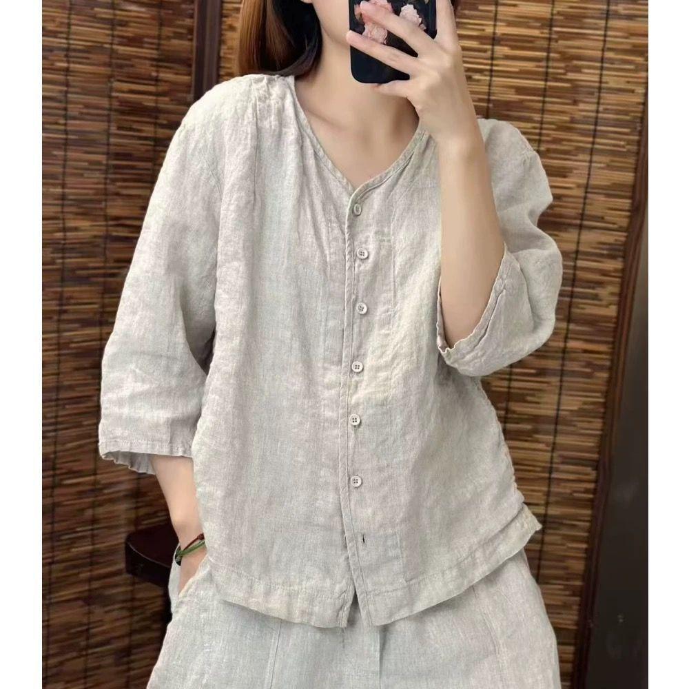 2025 Nuevo Color Sólido Algodón y Lino Tops Sueltos Temperamento Literario Casual Manga Tres Cuartos Cárdigan Camisa Tops Camiseta para Mujer