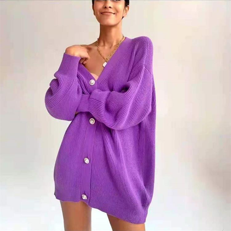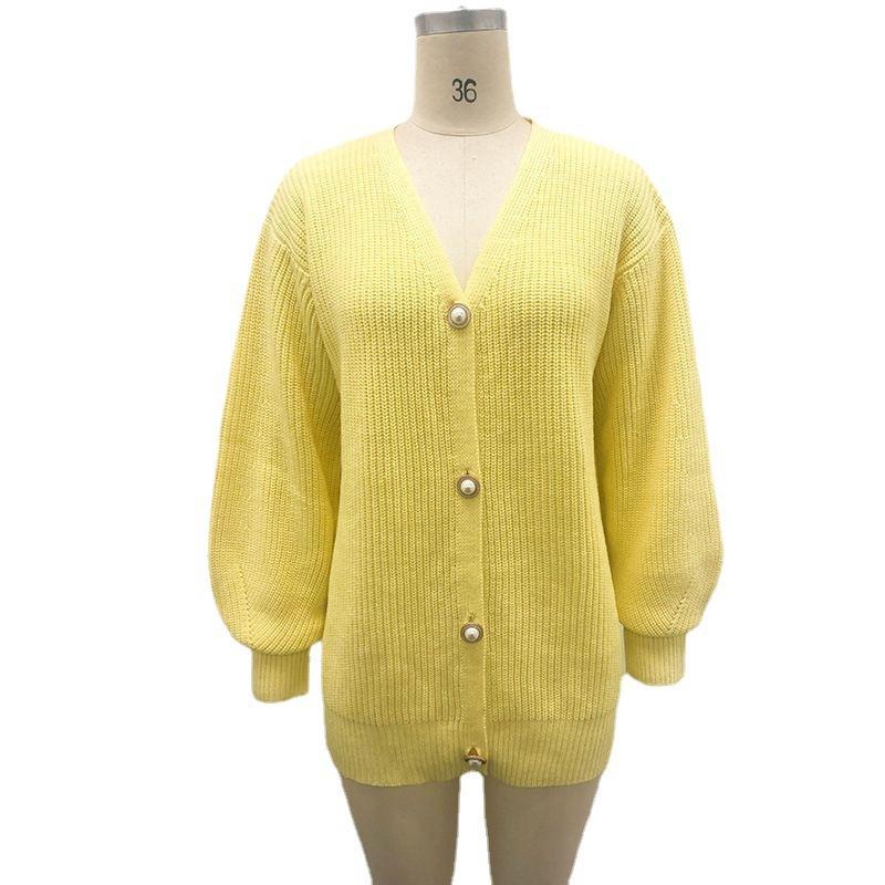 Suéter de Punto de Largo Medio de Color Puro de Amazon Chaqueta para Mujer 2025 Otoño e Invierno Nuevo Cárdigan Holgado de Talla Grande con Botones de Perla