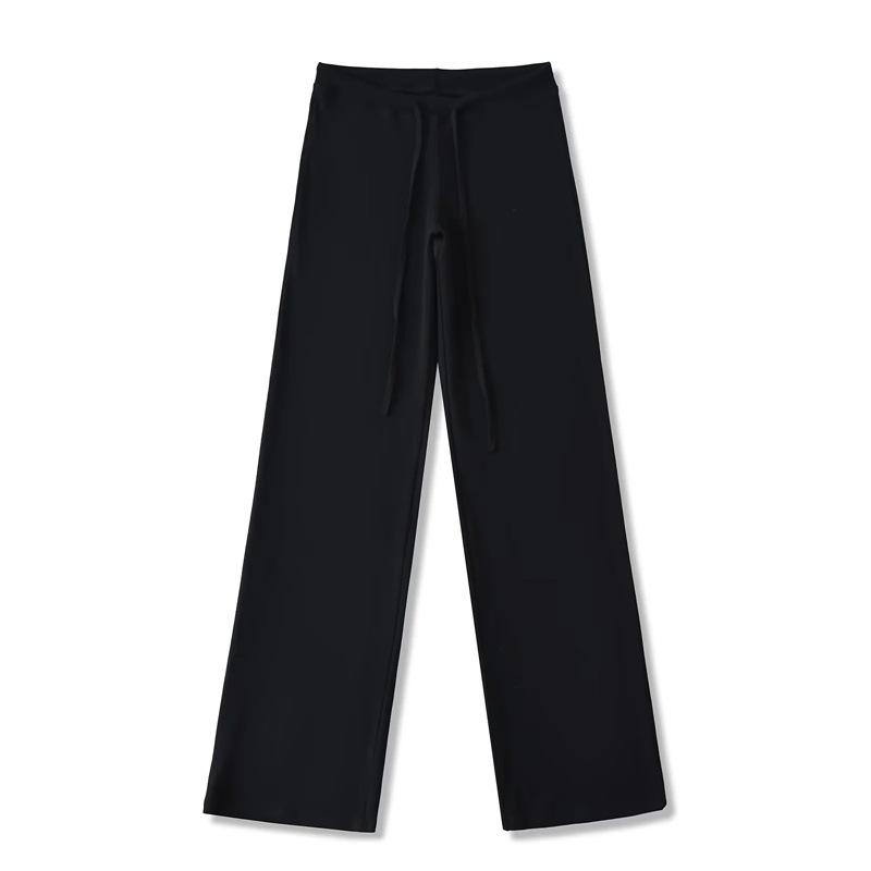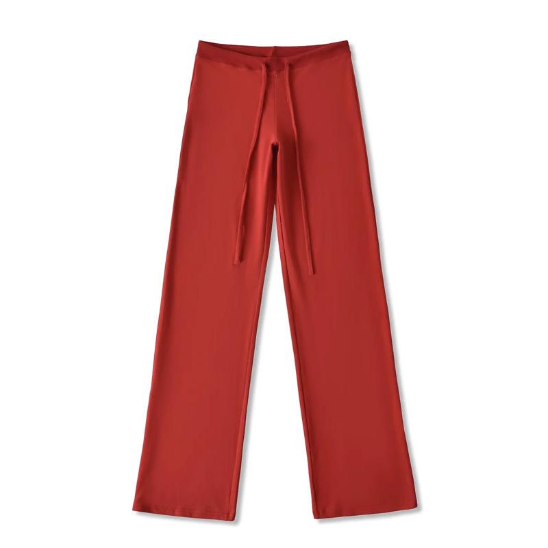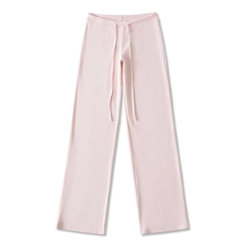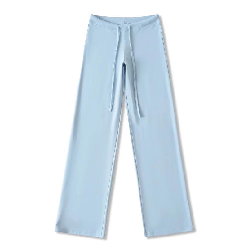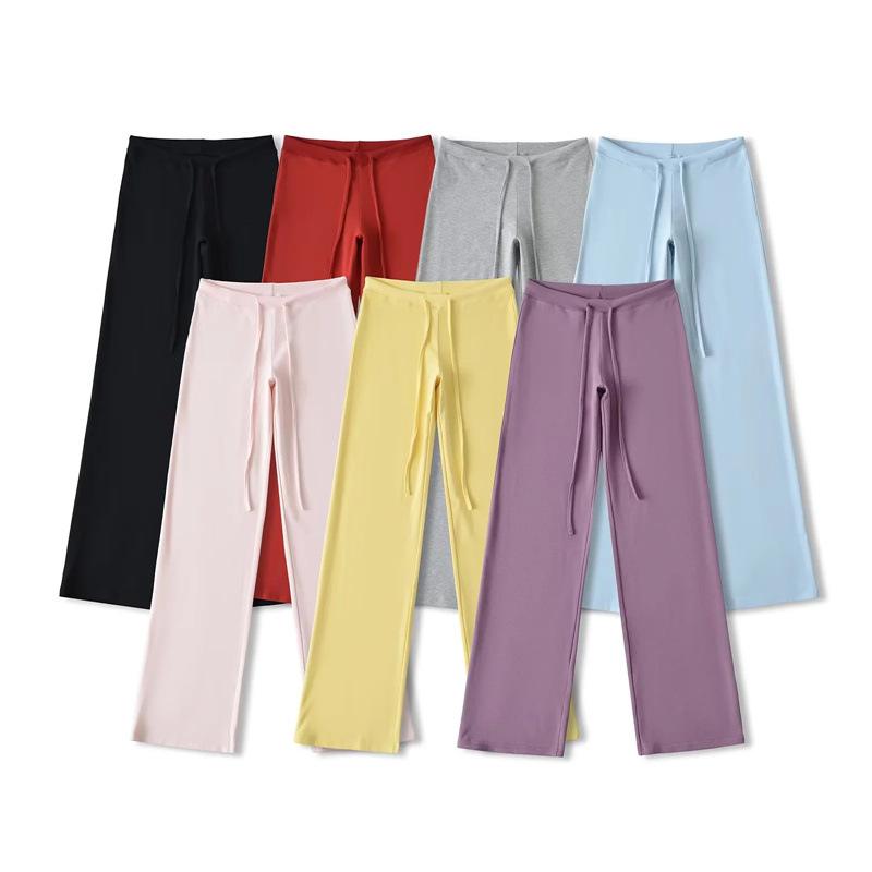 Pantalones Casuales Rectos con Cordón de Cintura Baja a la Moda Verano 2025 Nuevo Versátil Ajustado Color Sólido Drapeados Pantalones Largos para Mujer