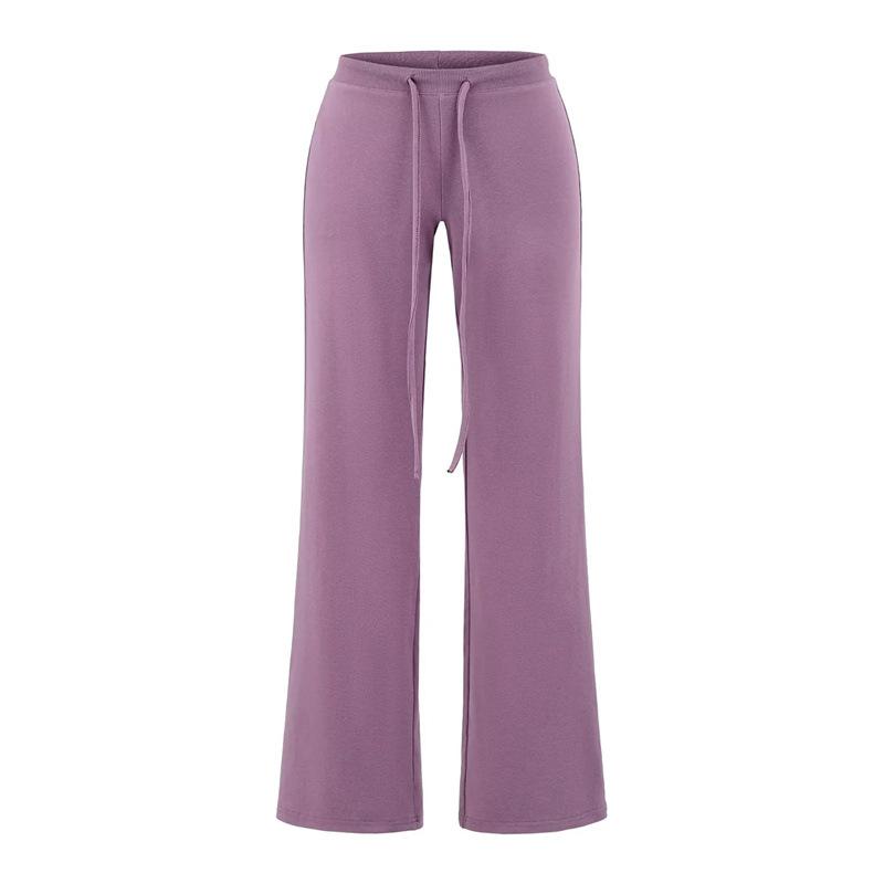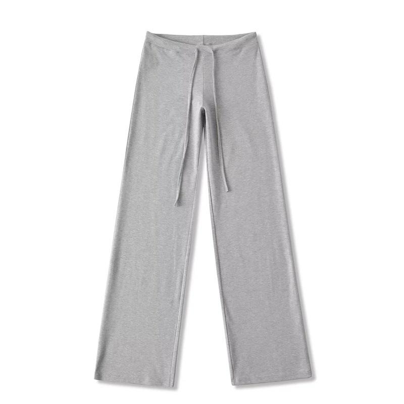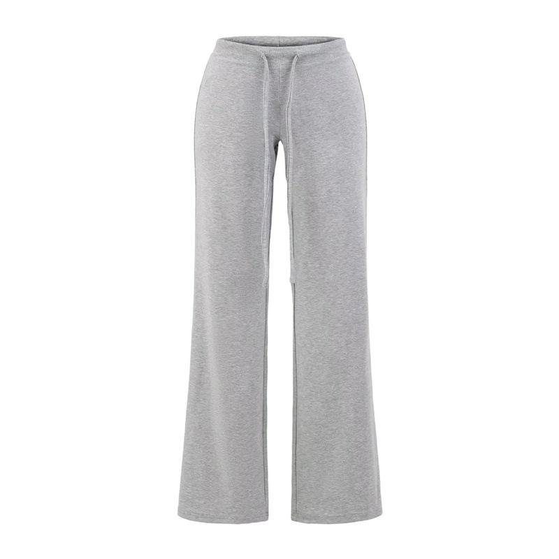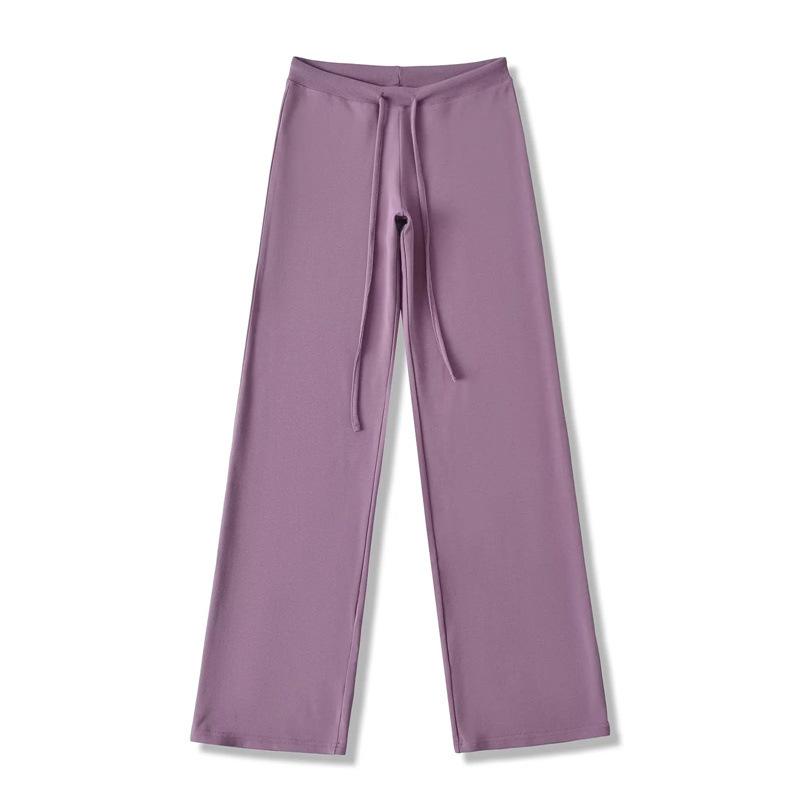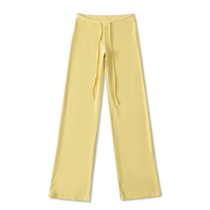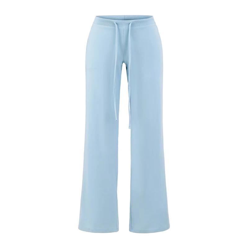 Pantalones Casuales Rectos con Cordón de Cintura Baja a la Moda Verano 2025 Nuevo Versátil Ajustado Color Sólido Drapeados Pantalones Largos para Mujer