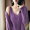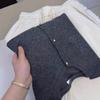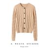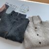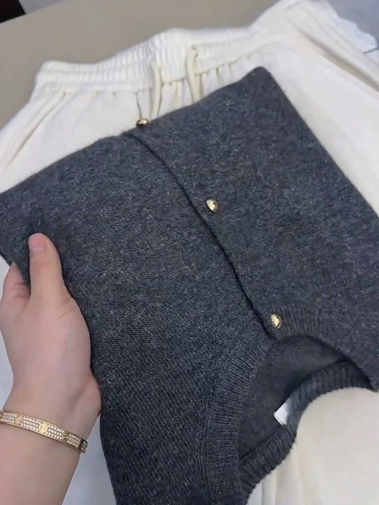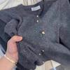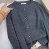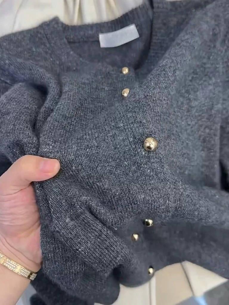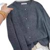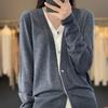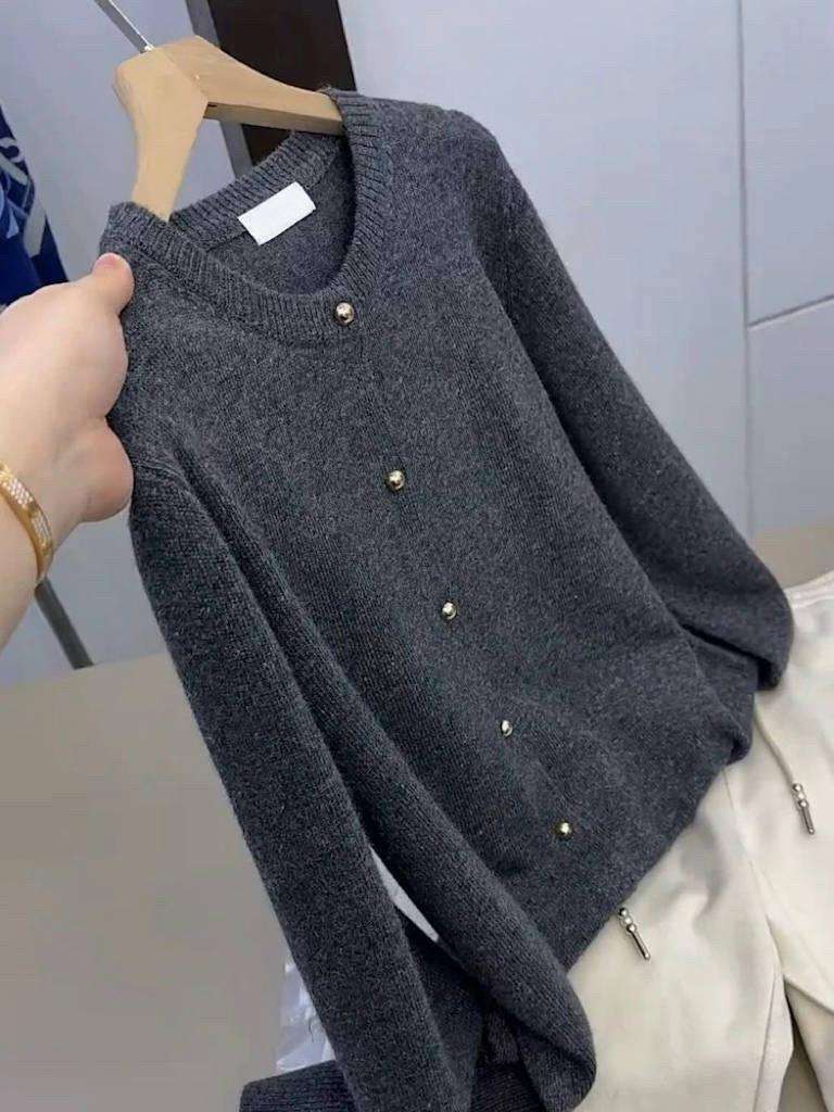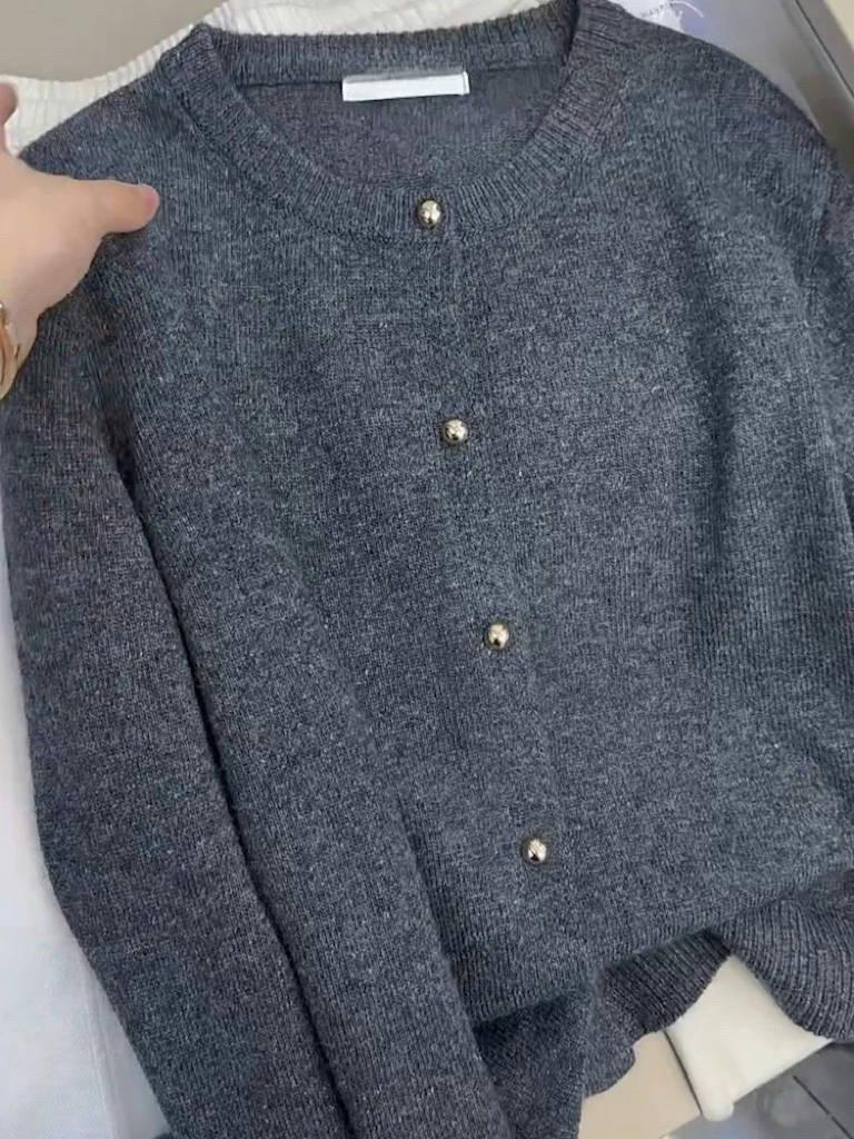 Cárdigan de Lana 100% para Mujer de Primavera y Otoño, Estilo Holgado y Relajado, Cuello Redondo, Chaqueta Gris con Hebilla Metálica de Alta Calidad