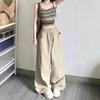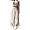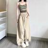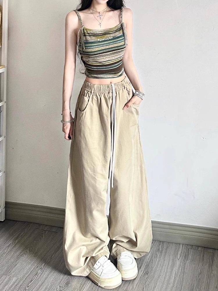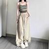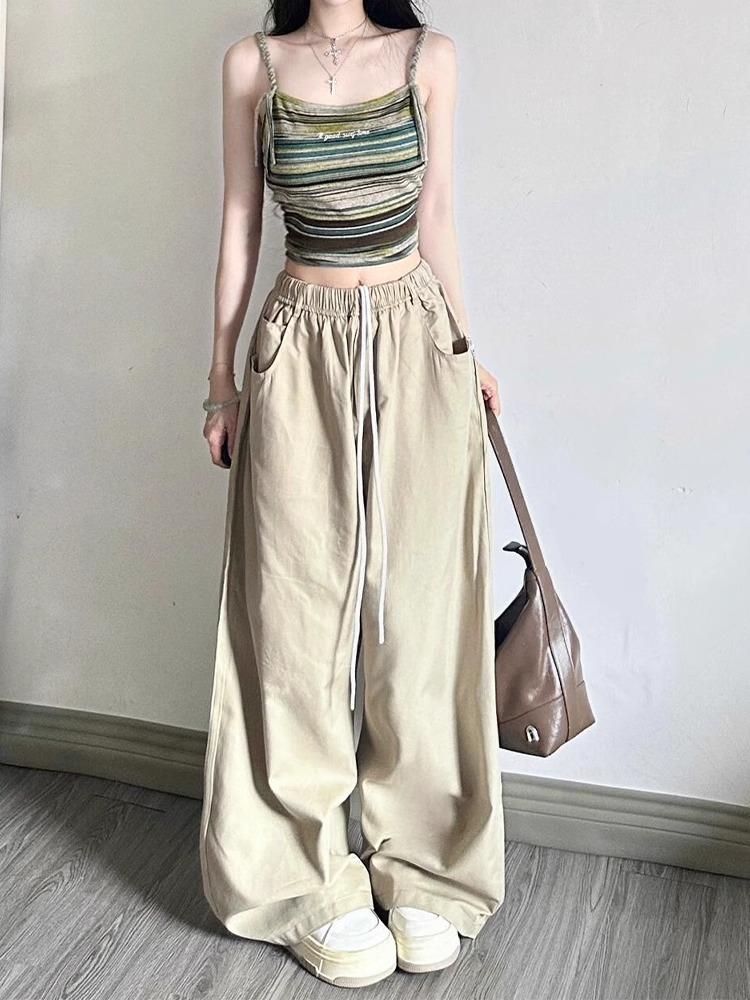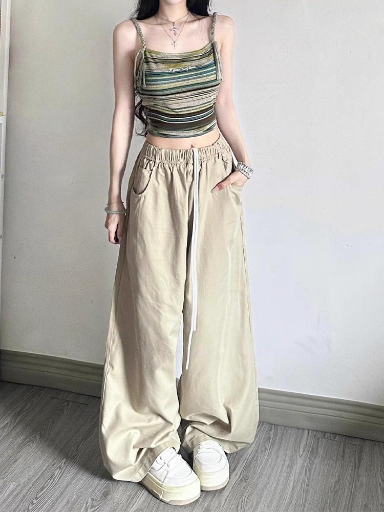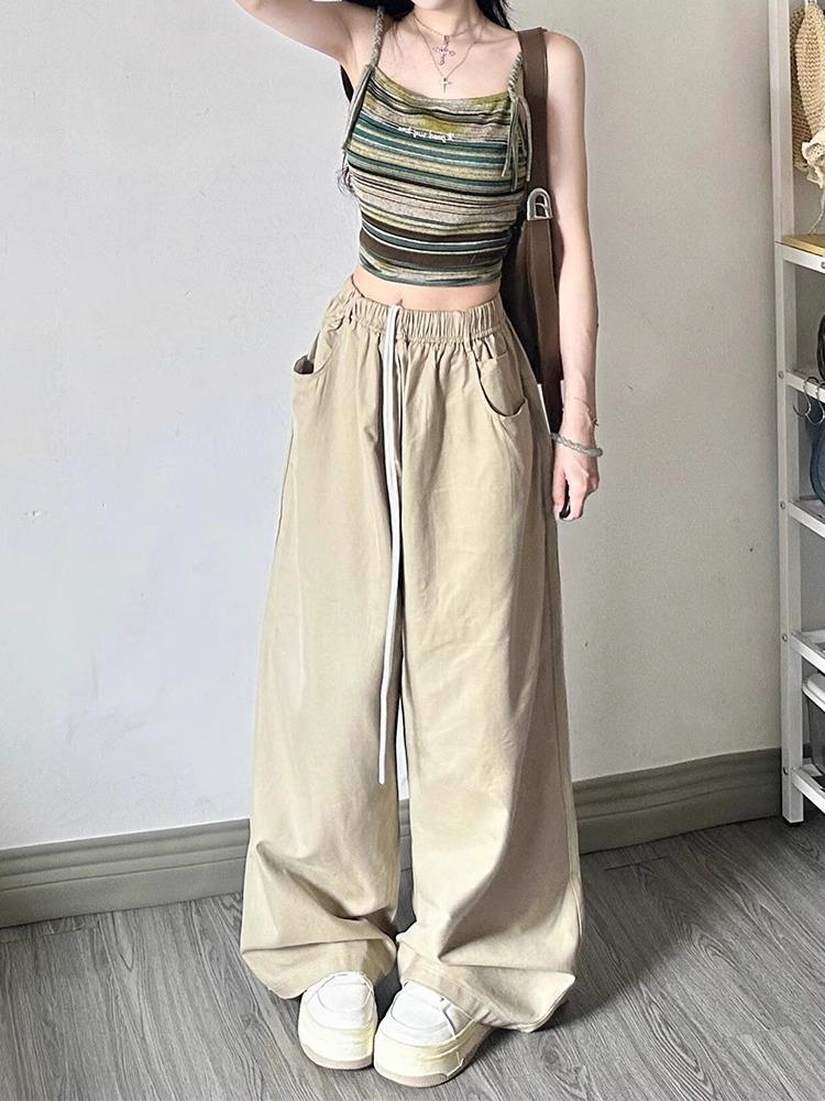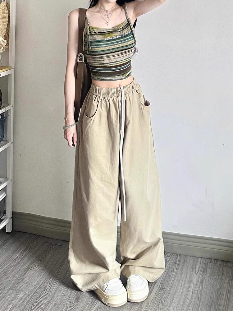 Caqui Color Sólido Combinable Pantalones Casuales de Verano para Mujer Holgados Estilo Perezoso con Cordón Rectos de Pierna Ancha Pantalones Deportivos