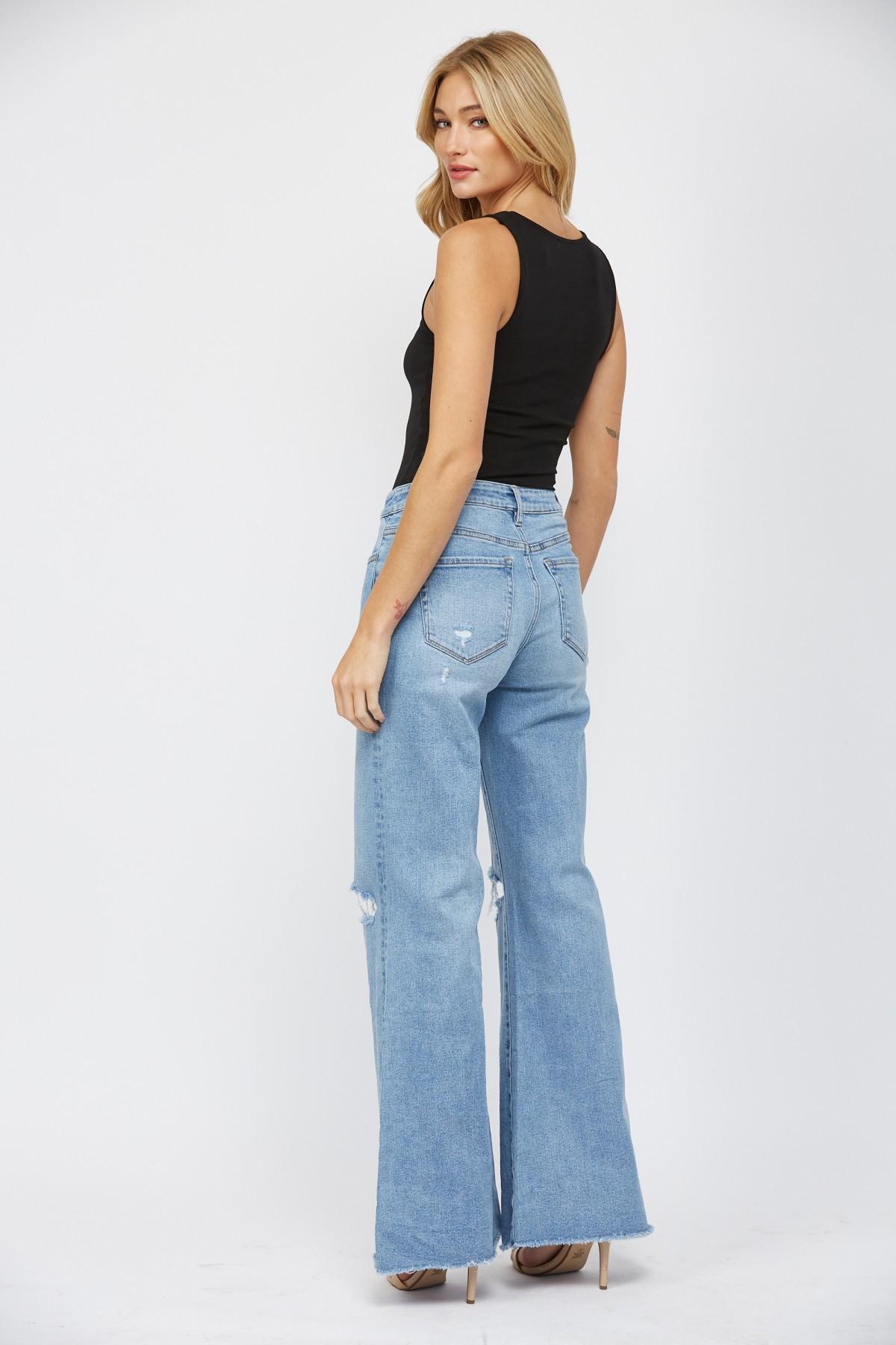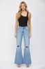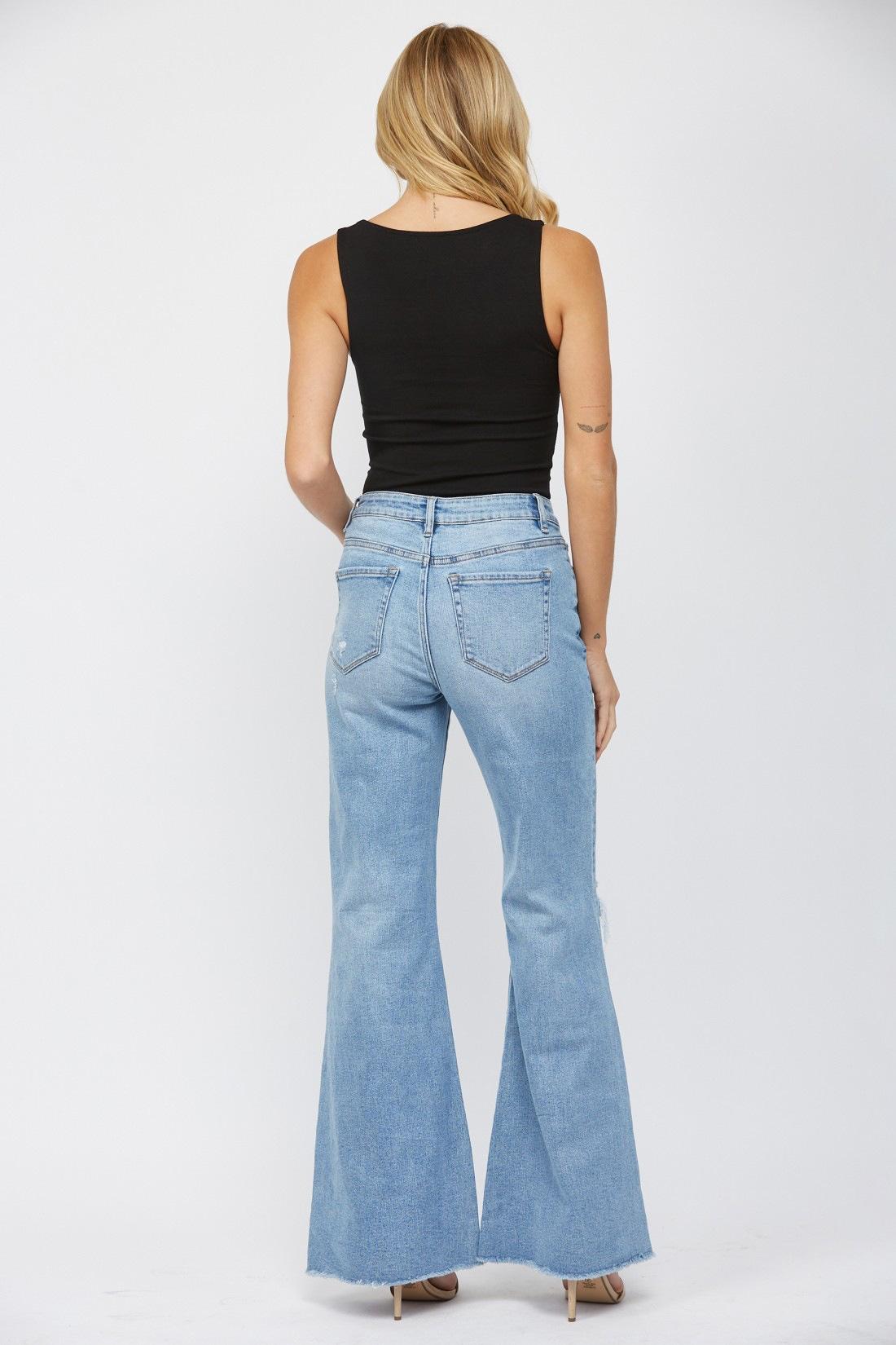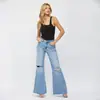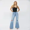 Ropa Nueva para Mujer Europea y Americana Transfronteriza con Cortes, Elástica, Micro-Acampanada, Lavada, Moda, Pantalones de Mezclilla Ajustados para Mujer