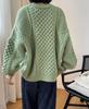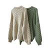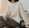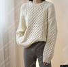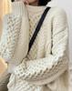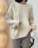 Suéter de Invierno Nuevo Francés Privado de Lana Merino Gruesa con Trenzas Suéter Holgado de Cuello Redondo para Mujer Grueso