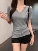 Camiseta de Modal con Cuello en V y Manga Corta para Mujer Verano Nuevo Sexy Look Holgado Adelgazante Bottoming Top Básico