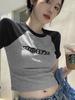 Camiseta de Manga Corta de Algodón Puro para Mujer Verano 2025 Nueva Camiseta de Verano Nueva con Manga Raglán de Contraste Top Americano Sexy