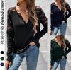 Amazon Transfronterizo Exportación Europea y Americana 2025 Primavera y Verano Nuevo Moda Independiente para Mujer Tops con Solapa Slim Manga Larga para Mujer