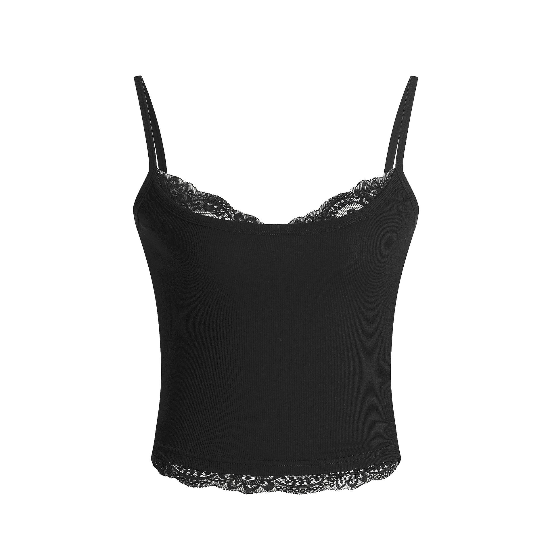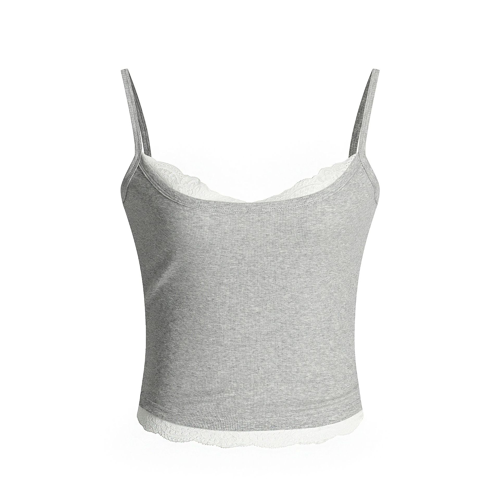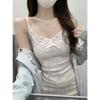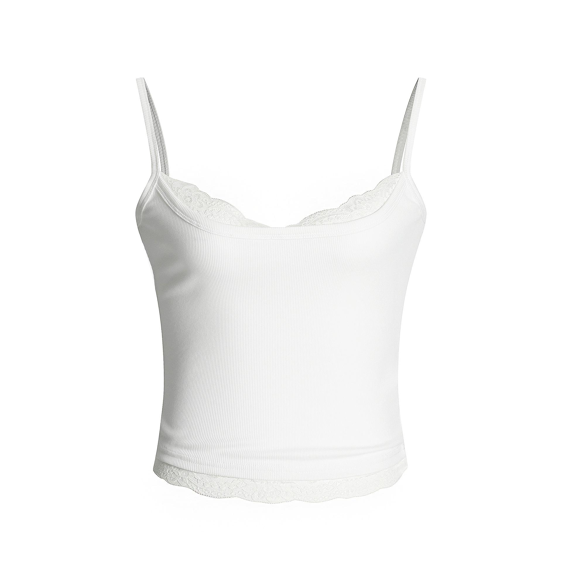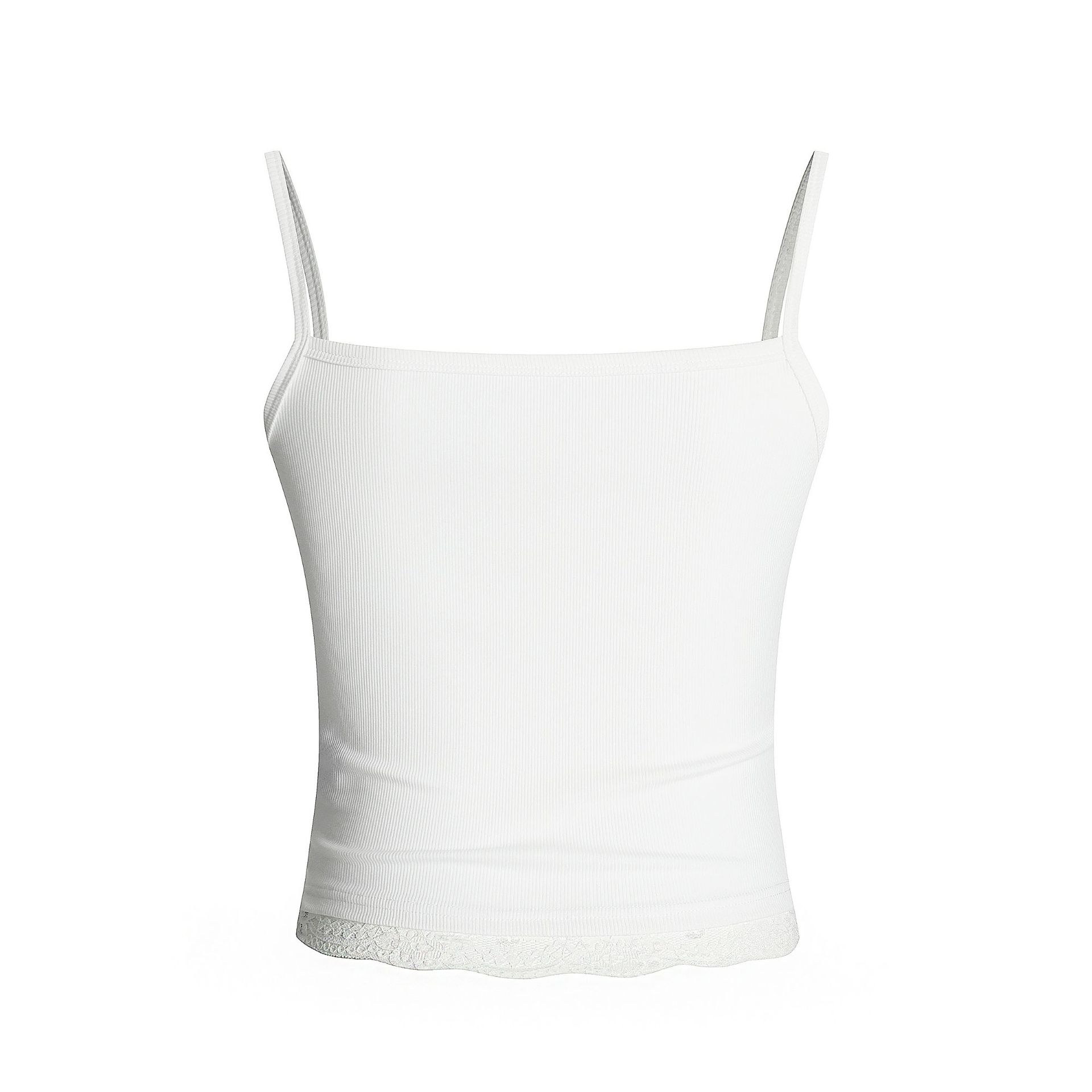 Yongfang 2025 Verano Estilo Coreano Elegante Blanco Contraste Encaje Borde Ajustado Camisola Interior Camiseta Top